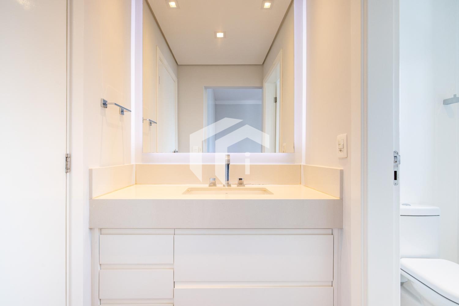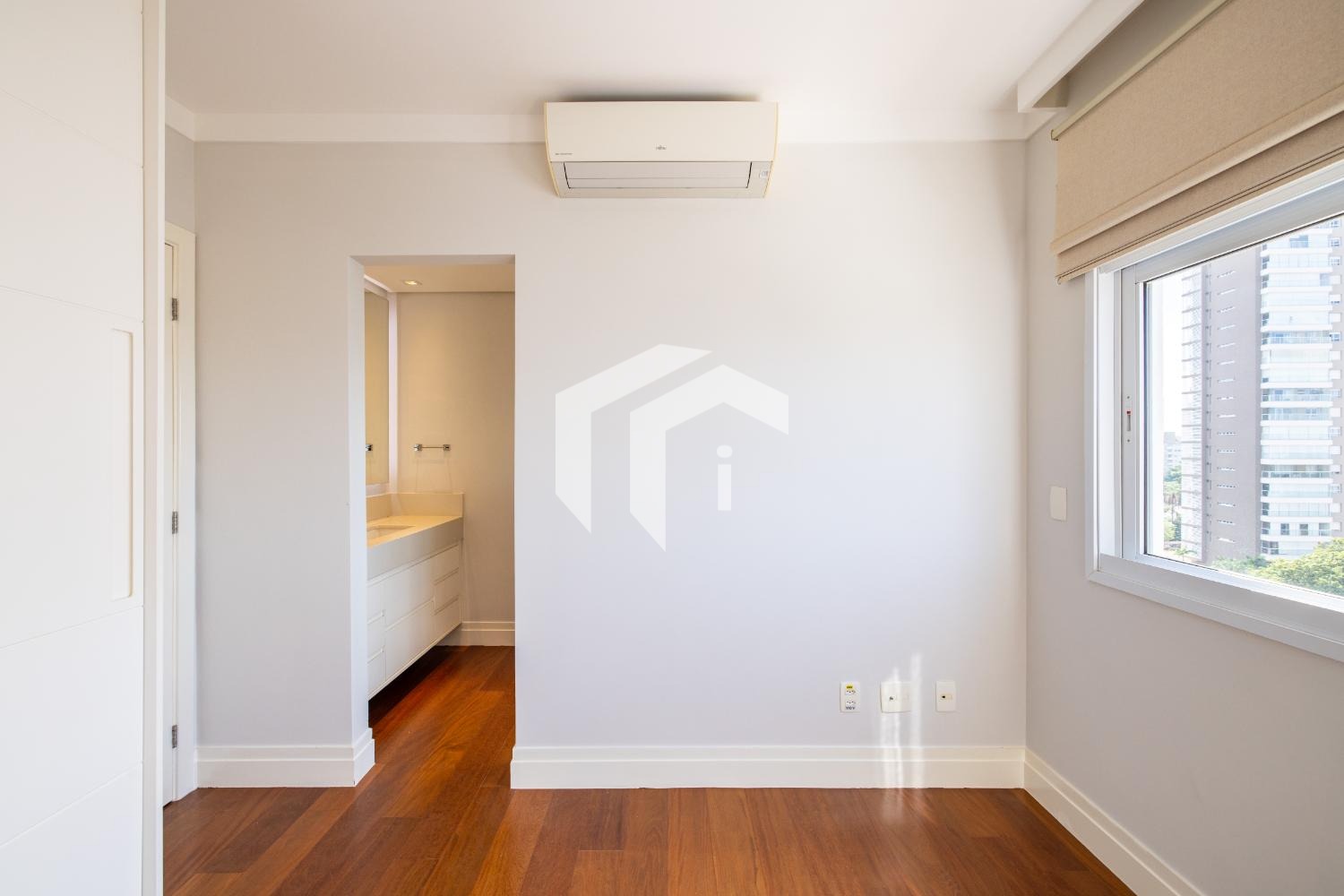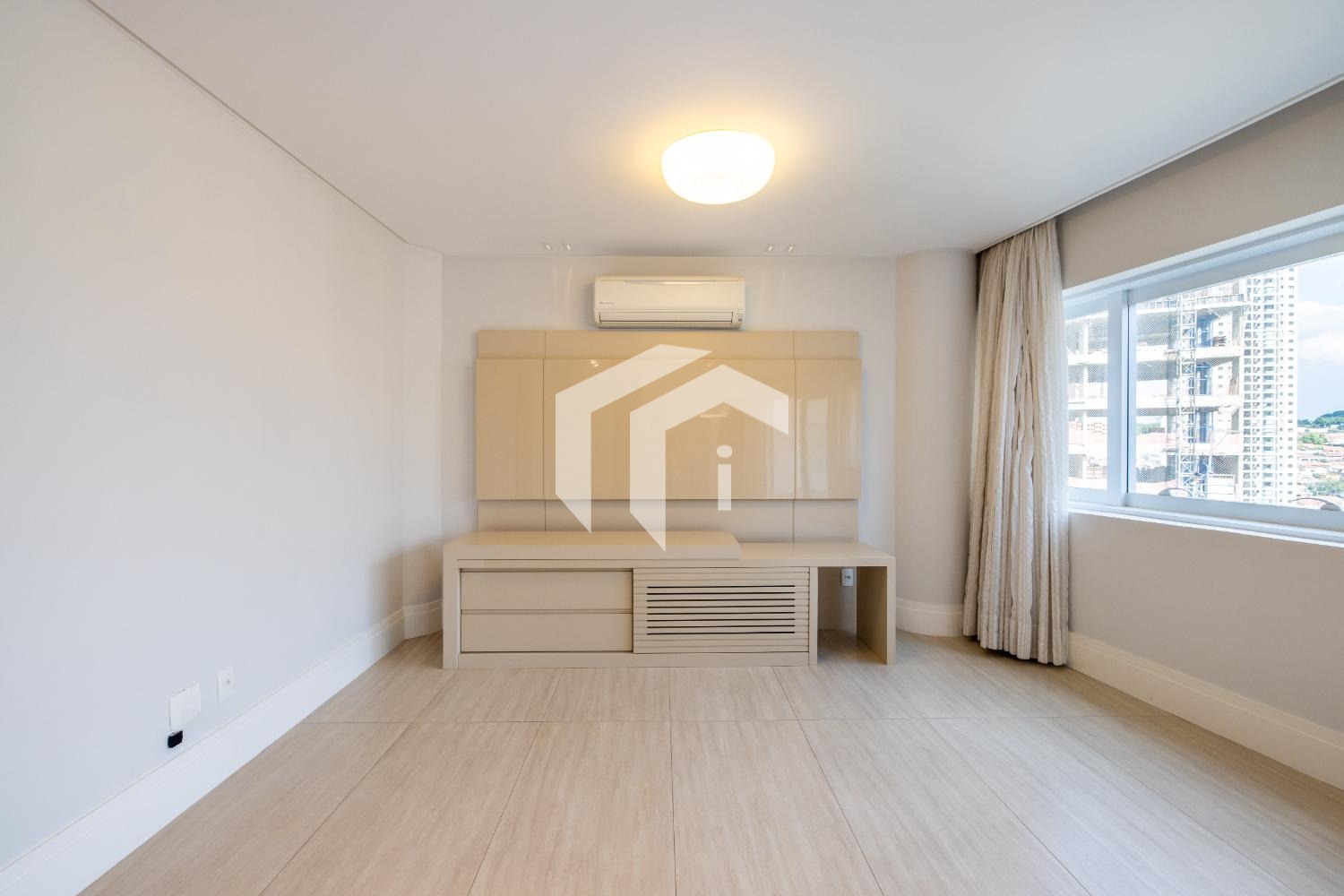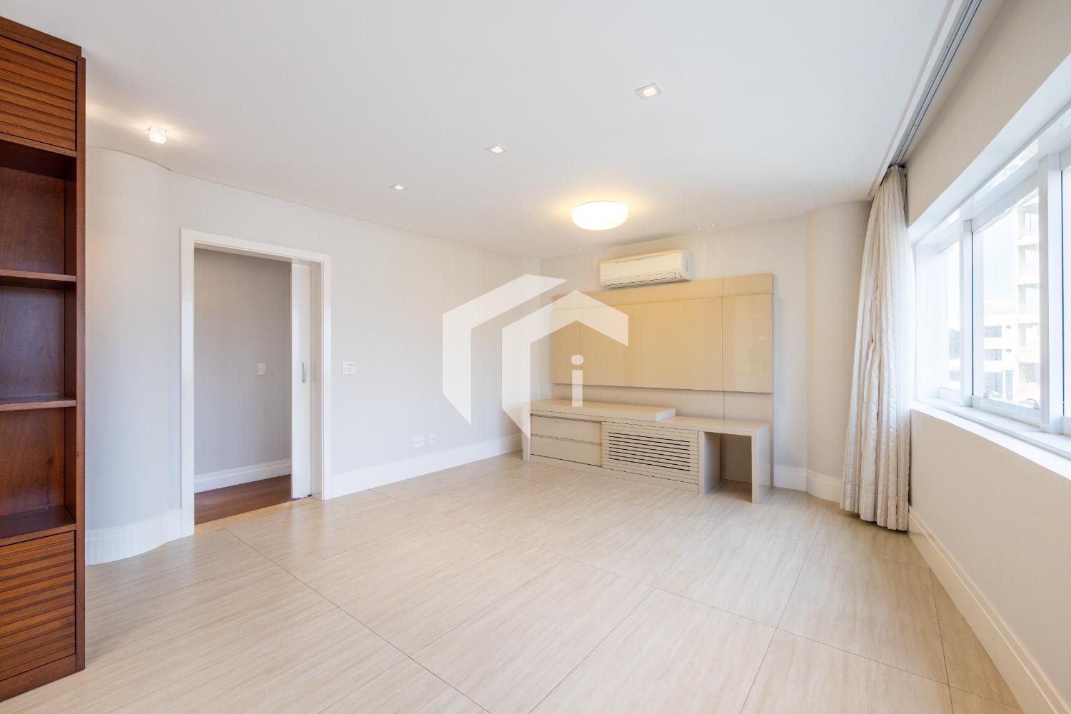 São 3 dormitórios, todos suítes, com armários planejados, ar-condicionado e persianas automatizadas.