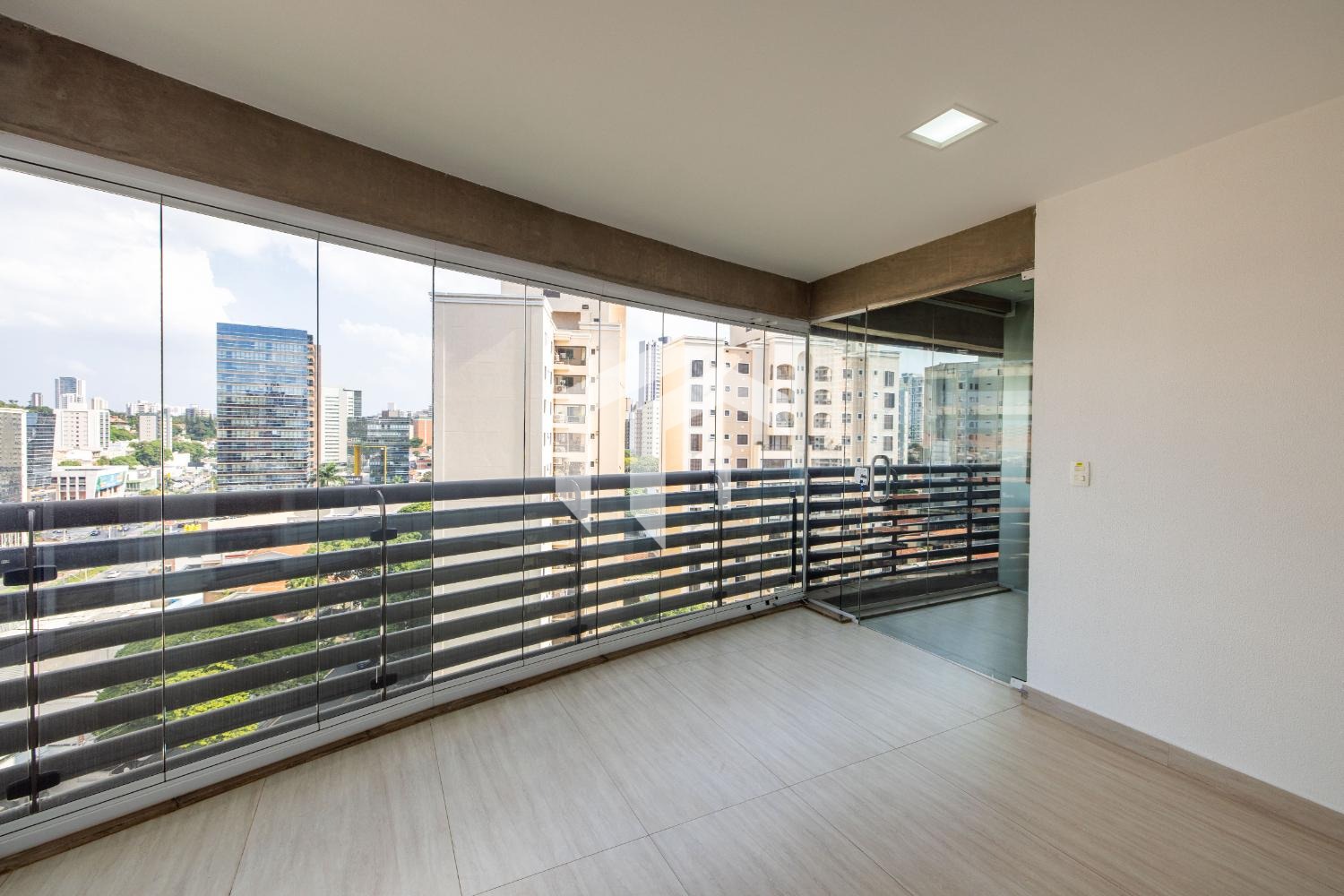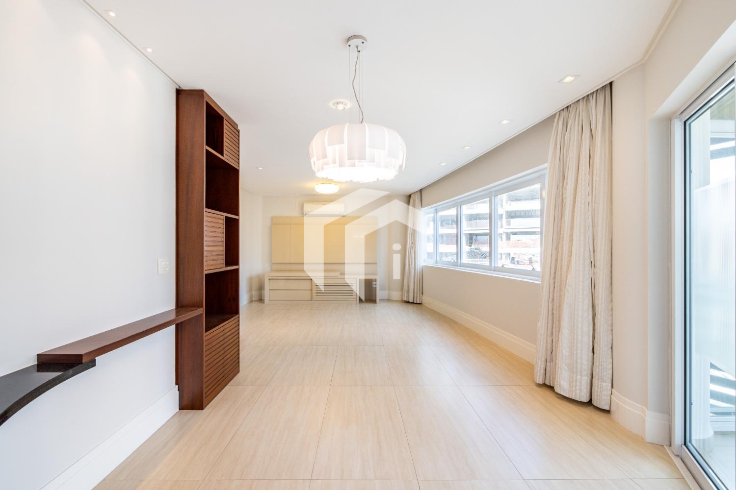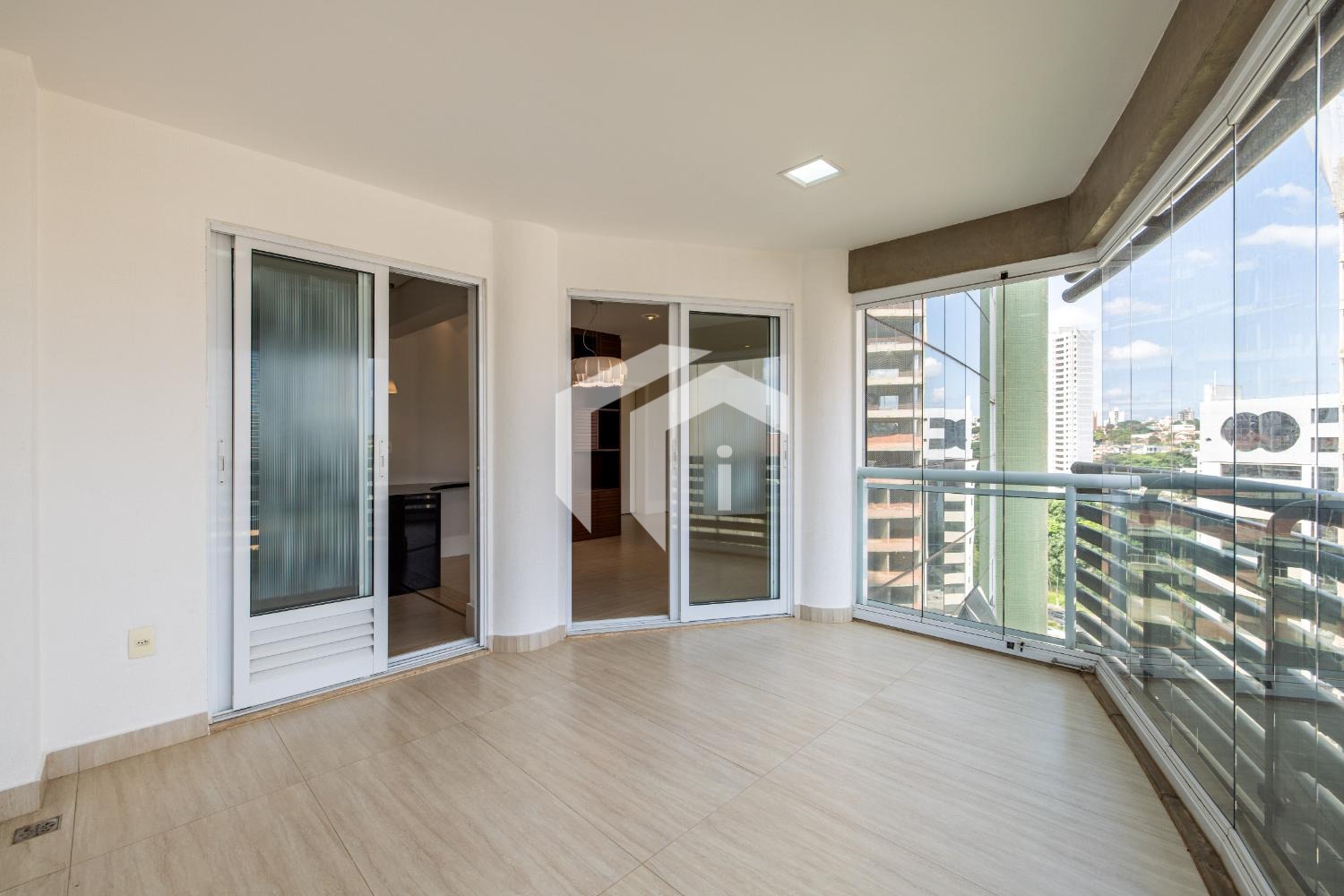Sala ampla para 3 ambientes, com ar-condicionado, lavabo e integrada à varanda gourmet, que oferece uma vista agradável e muito conforto, mais, home office.