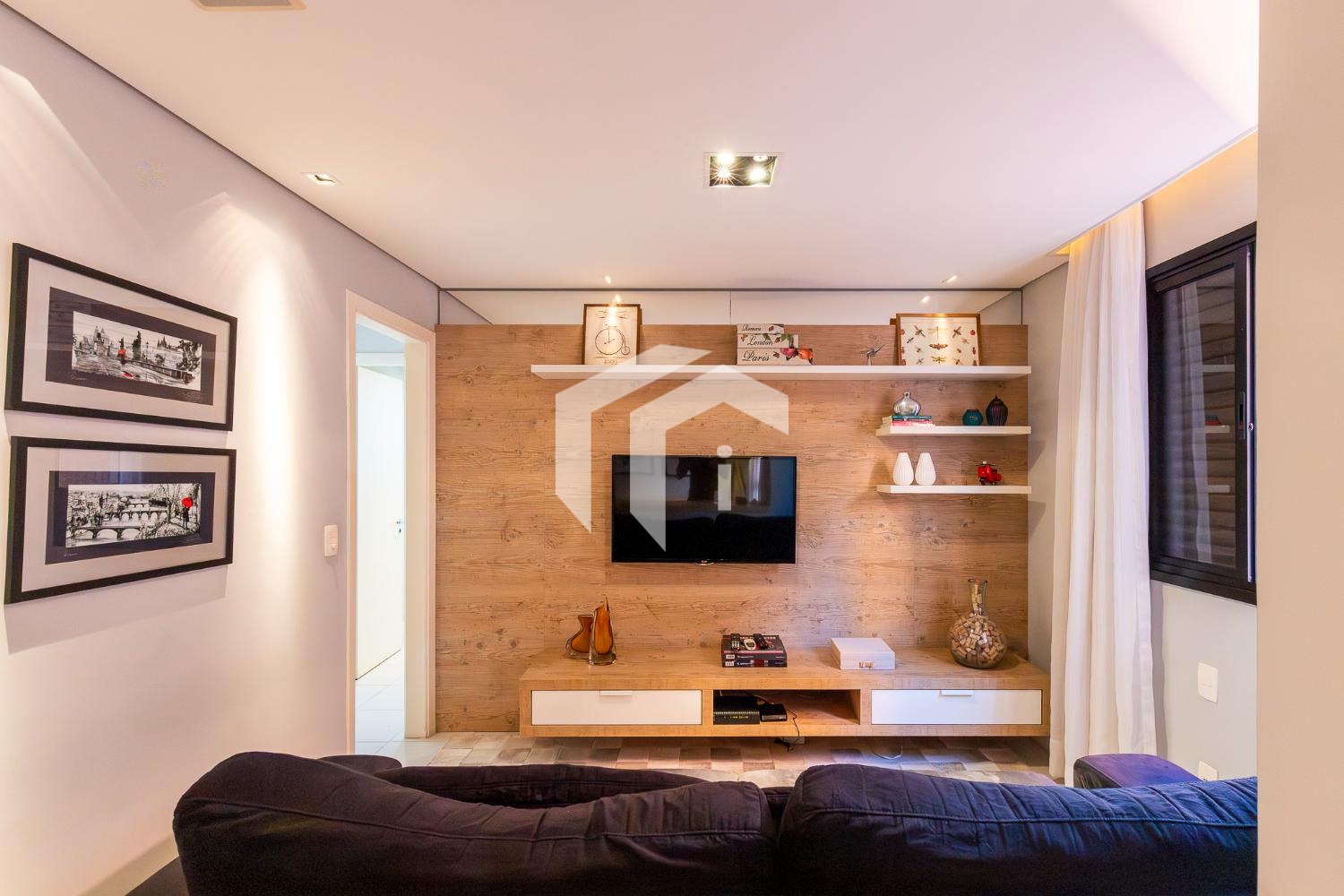 Confortável sala climatizada para 2 ambientes com varanda e home theater.