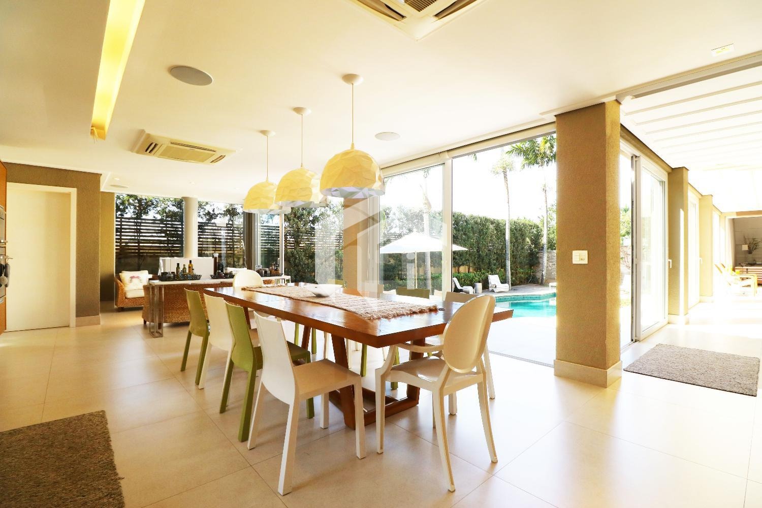 Living para 4 ambientes como home theater, tudo integrado ao espaço gourmet e piscina, proposta incrível para bons momentos em família e com amigos.