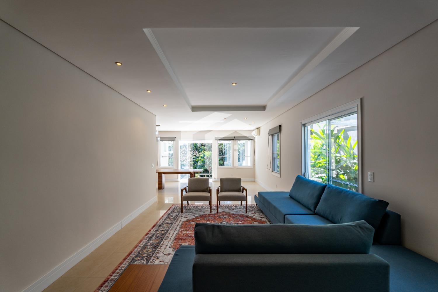 Amplo living, composto por 3 ambientes, conta com um lavabo, enquanto a sala de TV e o escritório proporcionam espaços adicionais para relaxar e trabalhar.