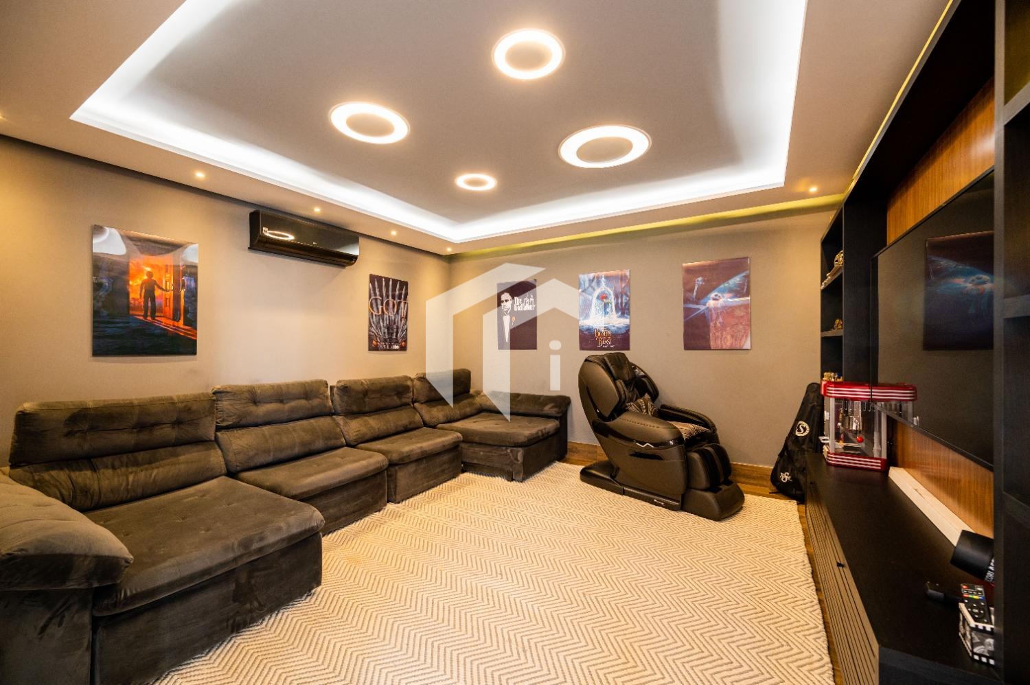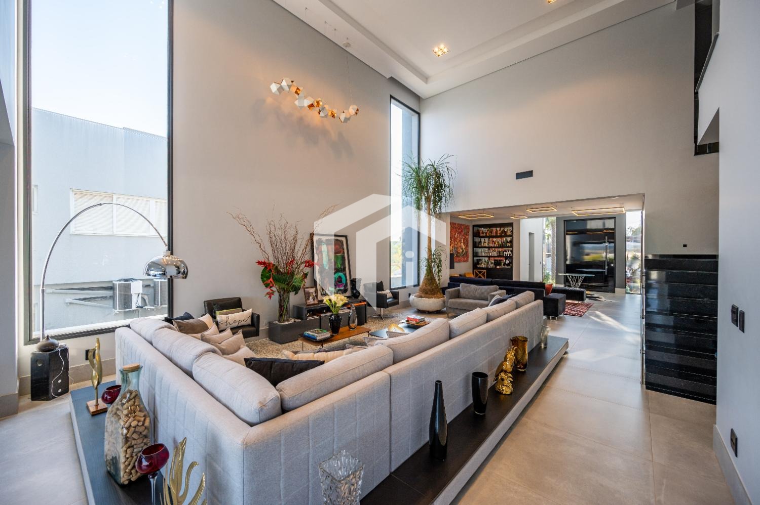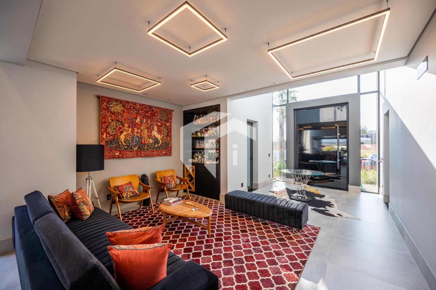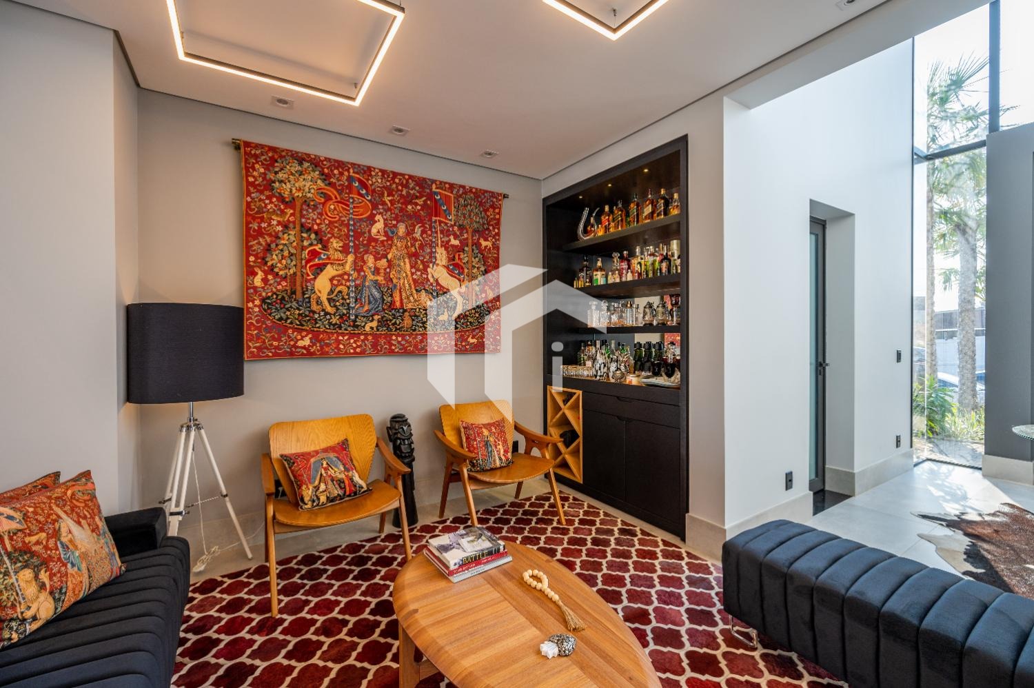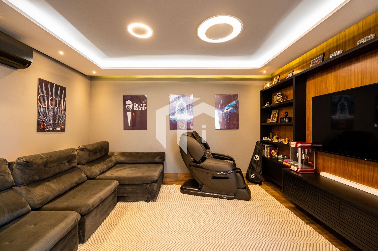 Living para 4 ambientes com pé direito duplo, tudo integrado ao espaço gourmet e a piscina com spa, sala íntima de tv, lavabo e home office com wc.