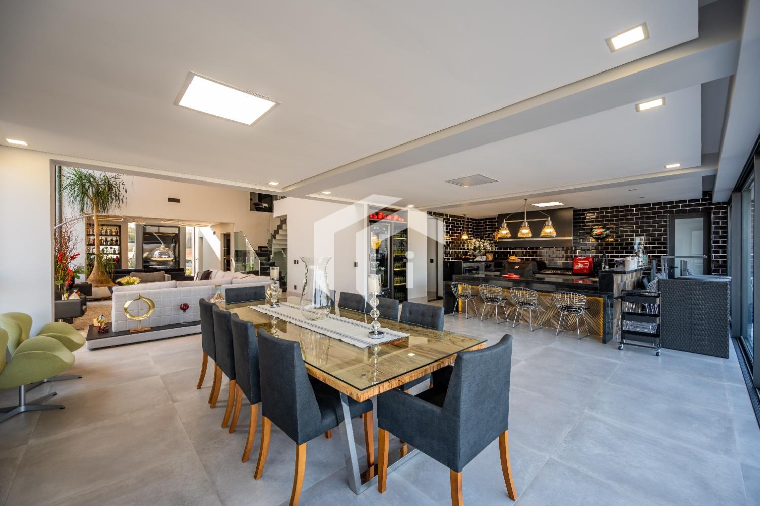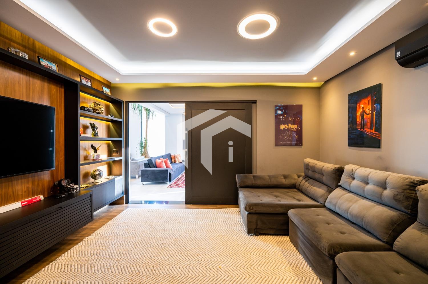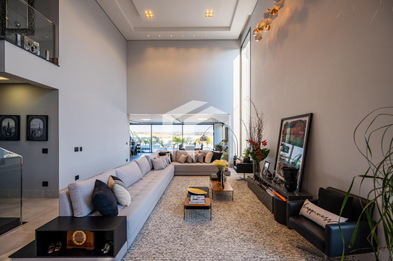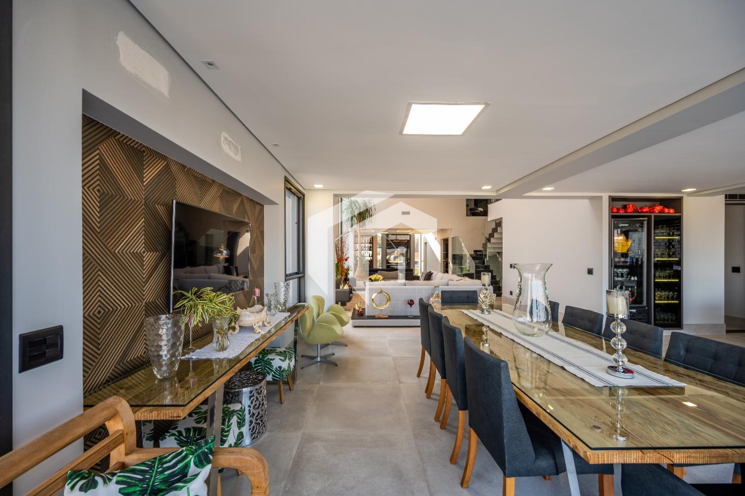 Living para 4 ambientes com pé direito duplo, tudo integrado ao espaço gourmet e a piscina com spa, sala íntima de tv, lavabo e home office com wc.