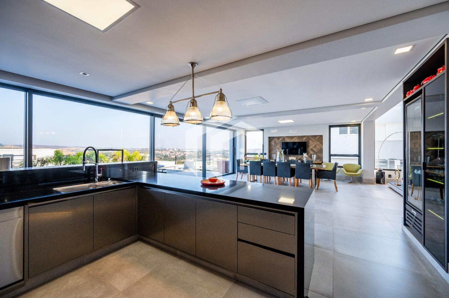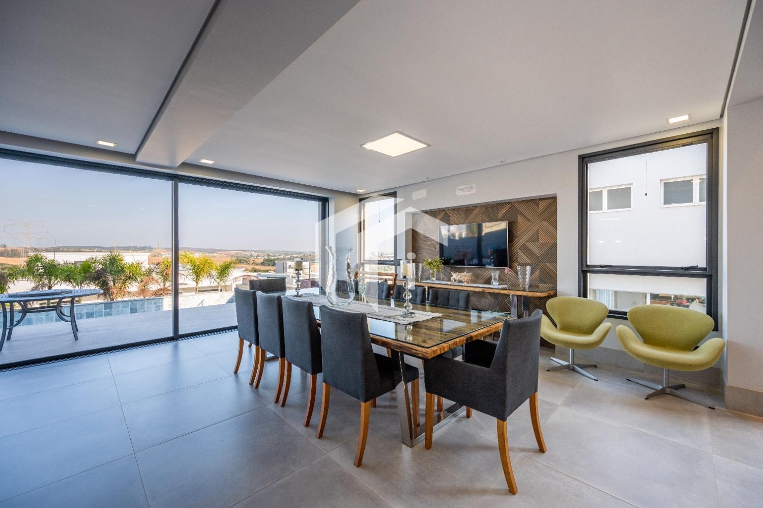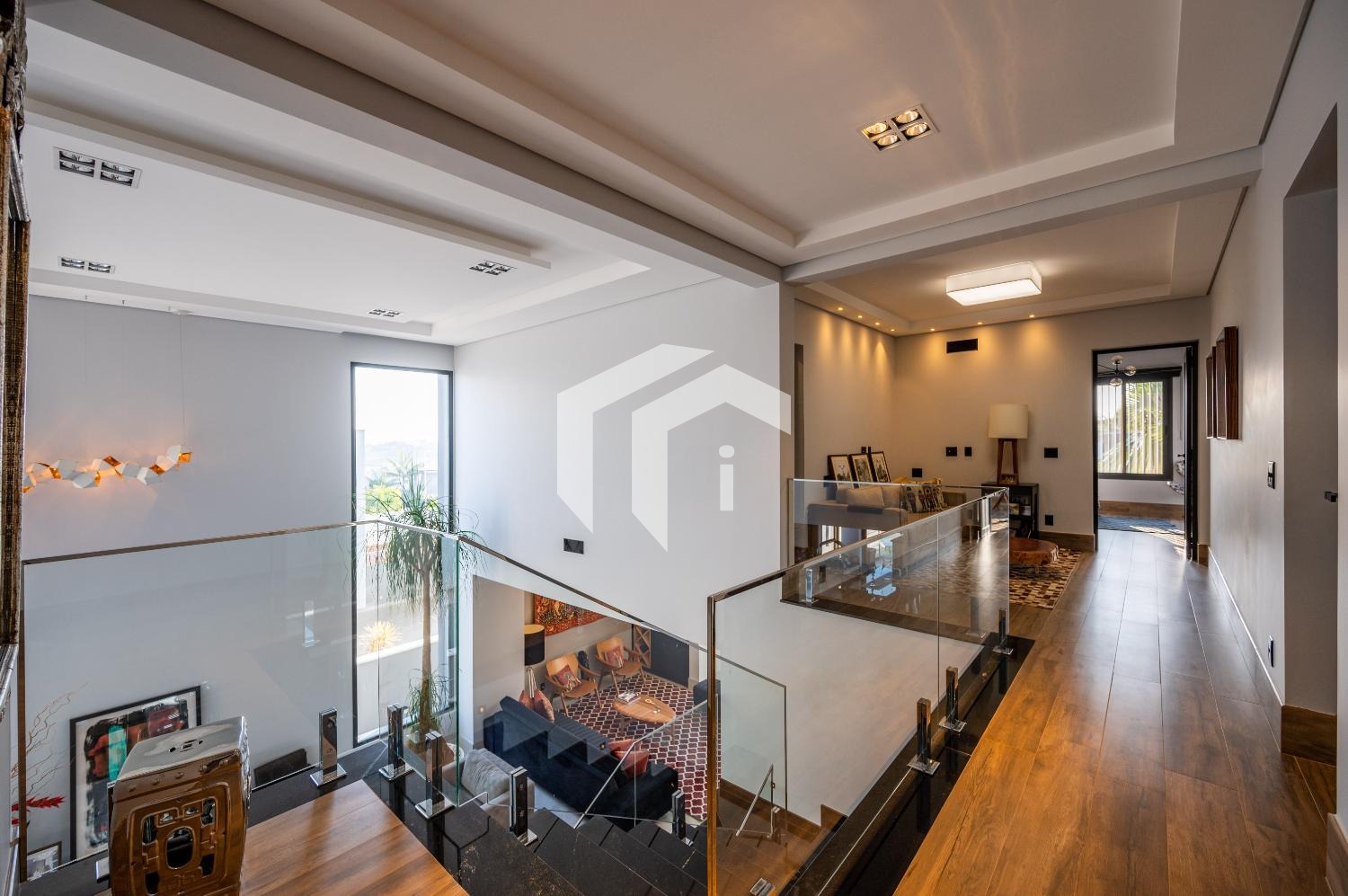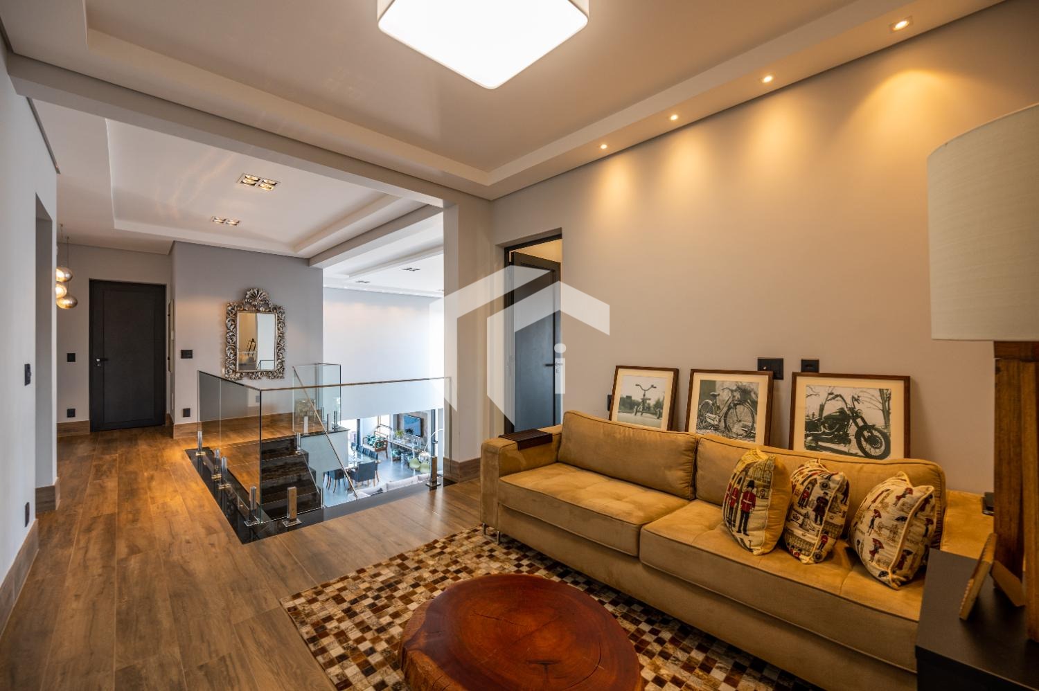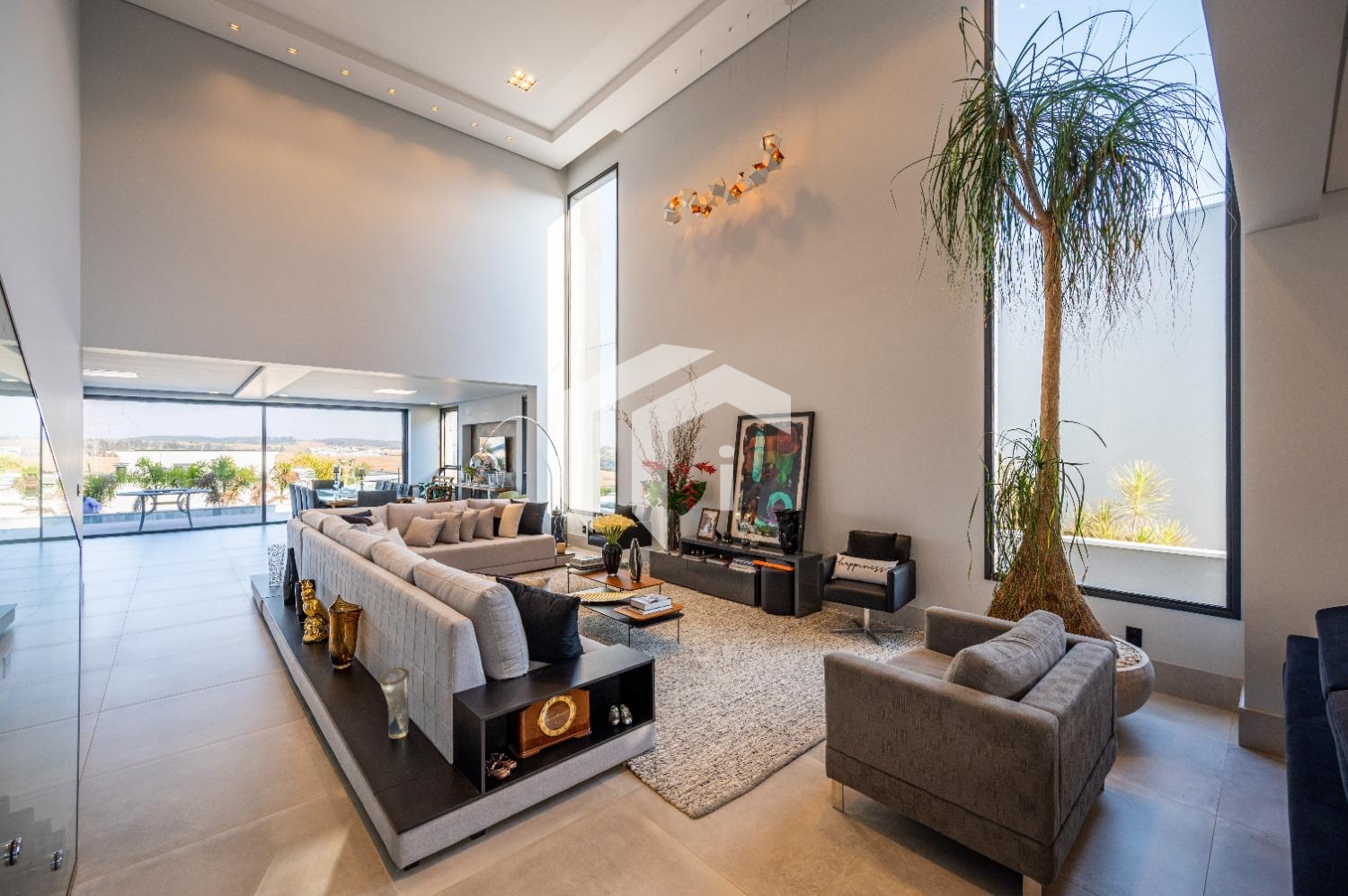 Living para 4 ambientes com pé direito duplo, tudo integrado ao espaço gourmet e a piscina com spa, sala íntima de tv, lavabo e home office com wc.