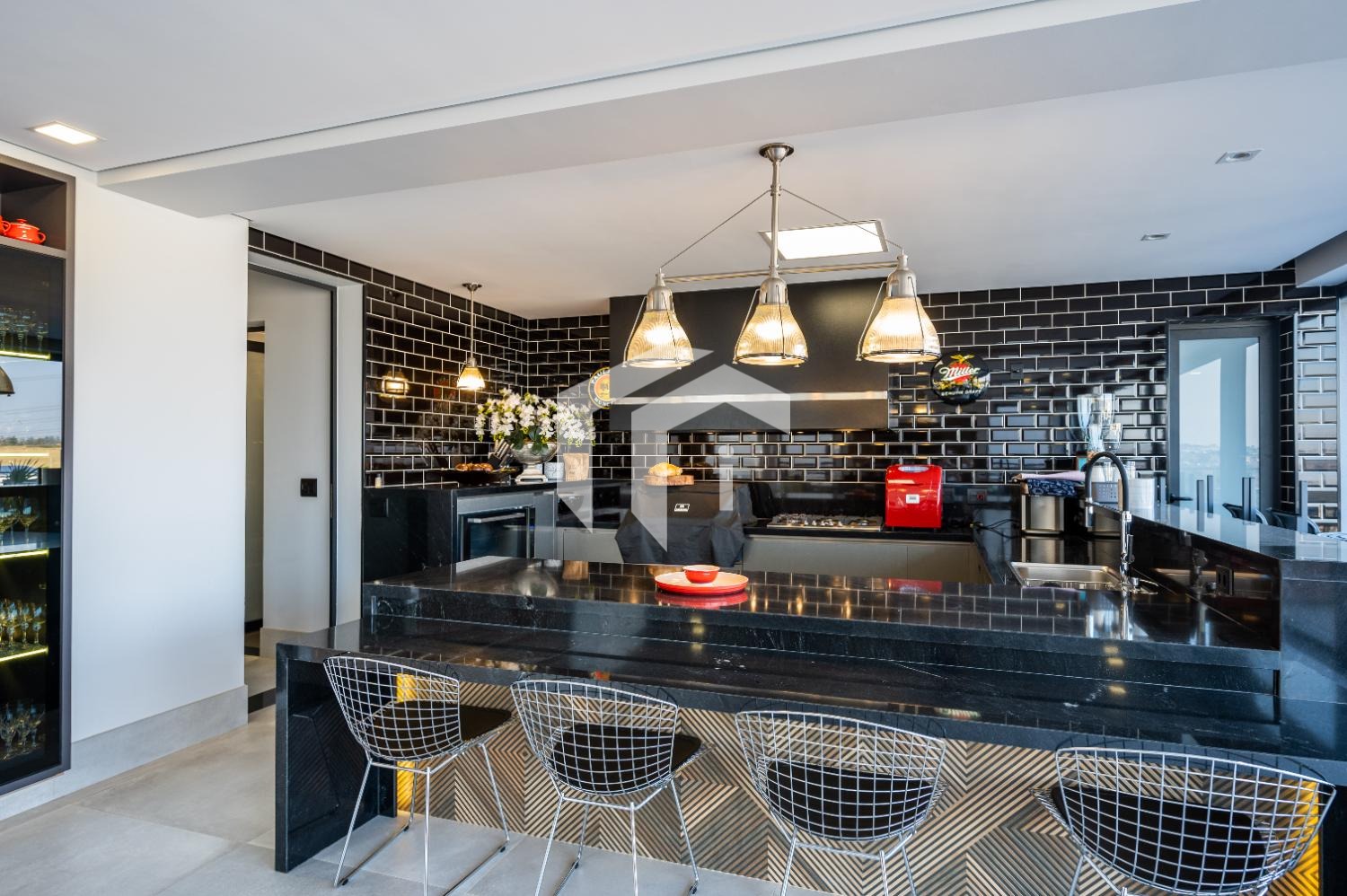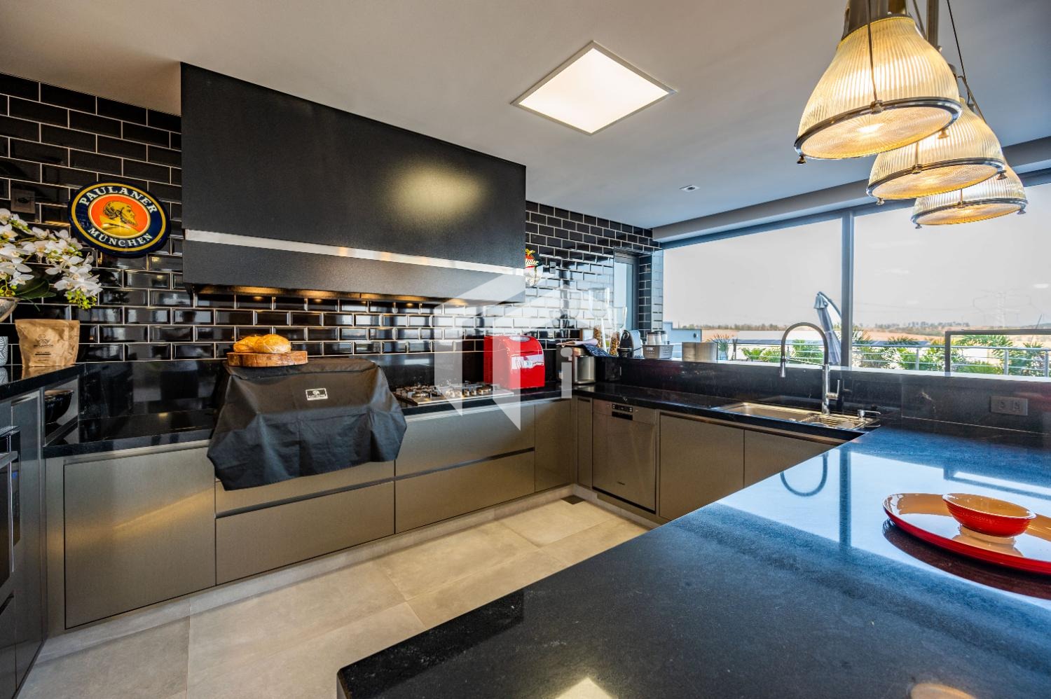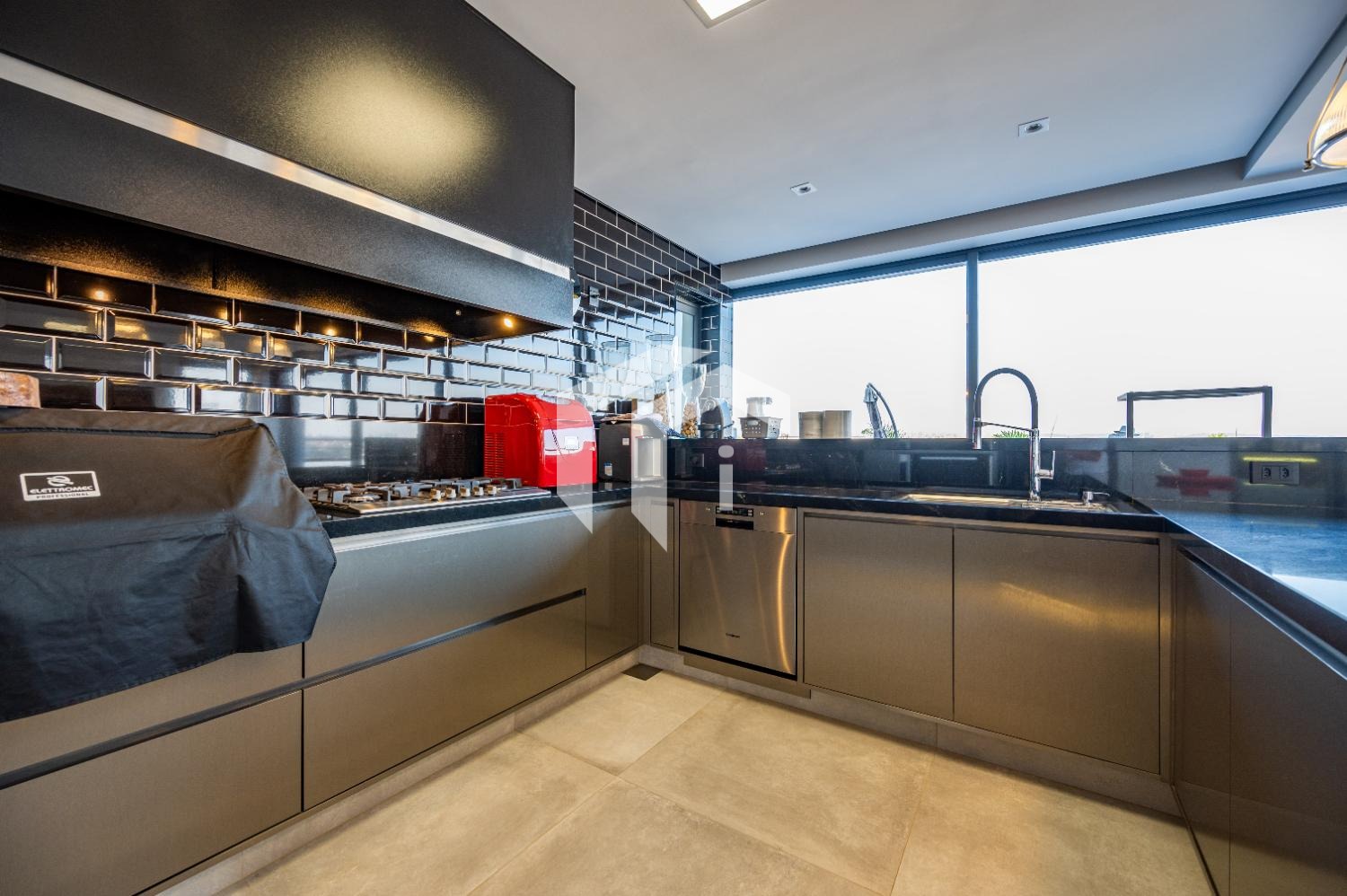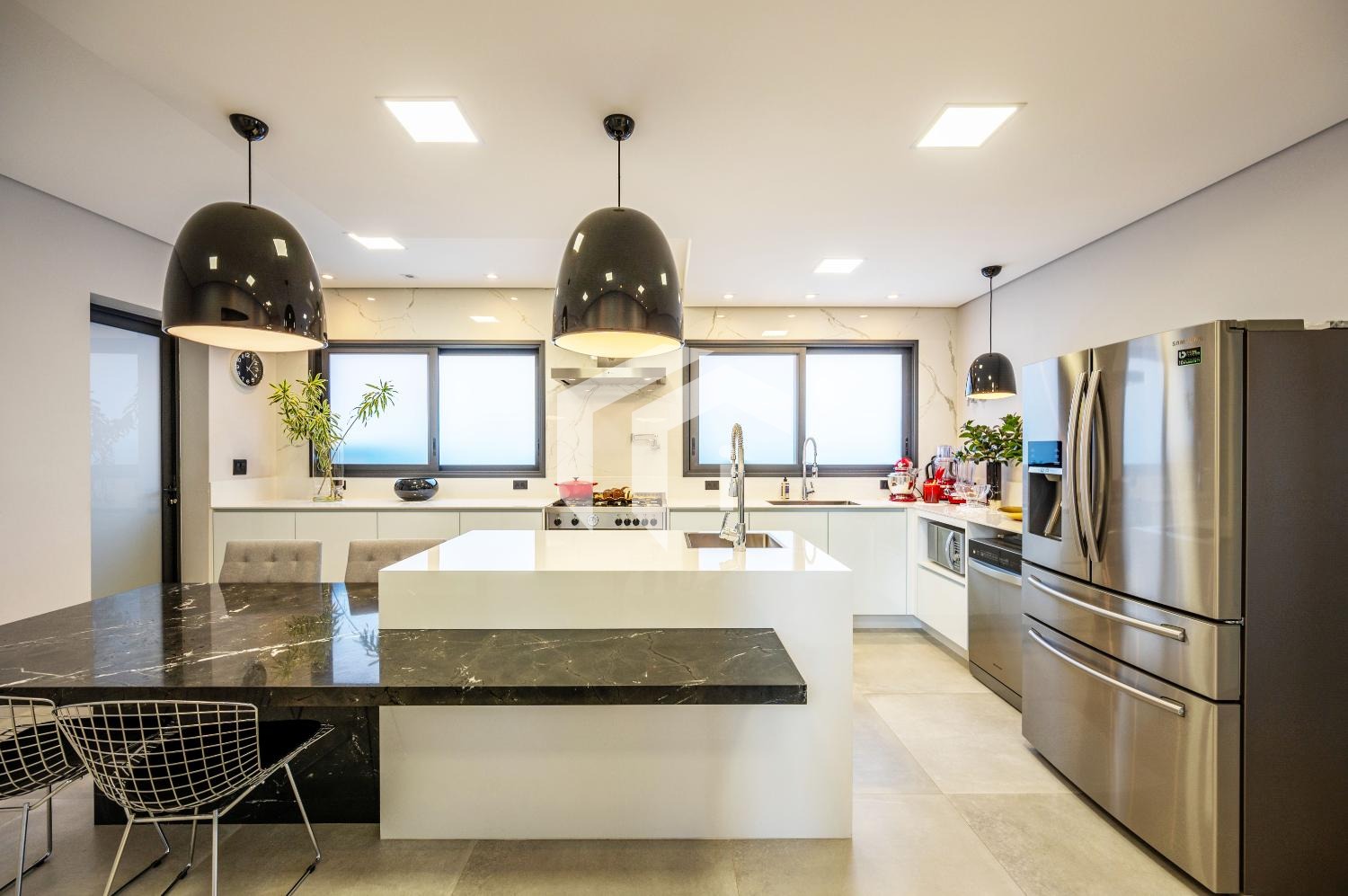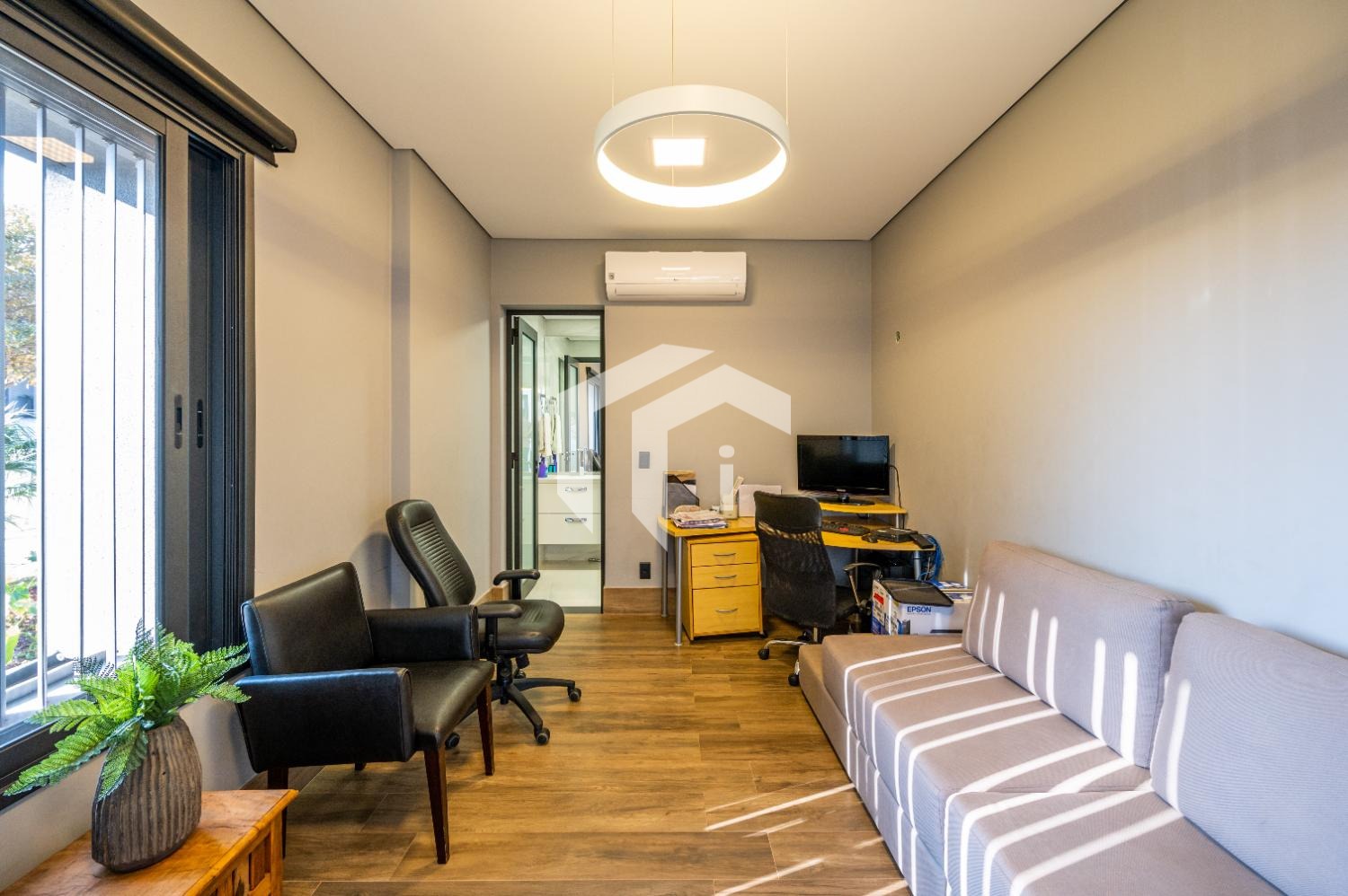 Living para 4 ambientes com pé direito duplo, tudo integrado ao espaço gourmet e a piscina com spa, sala íntima de tv, lavabo e home office com wc.