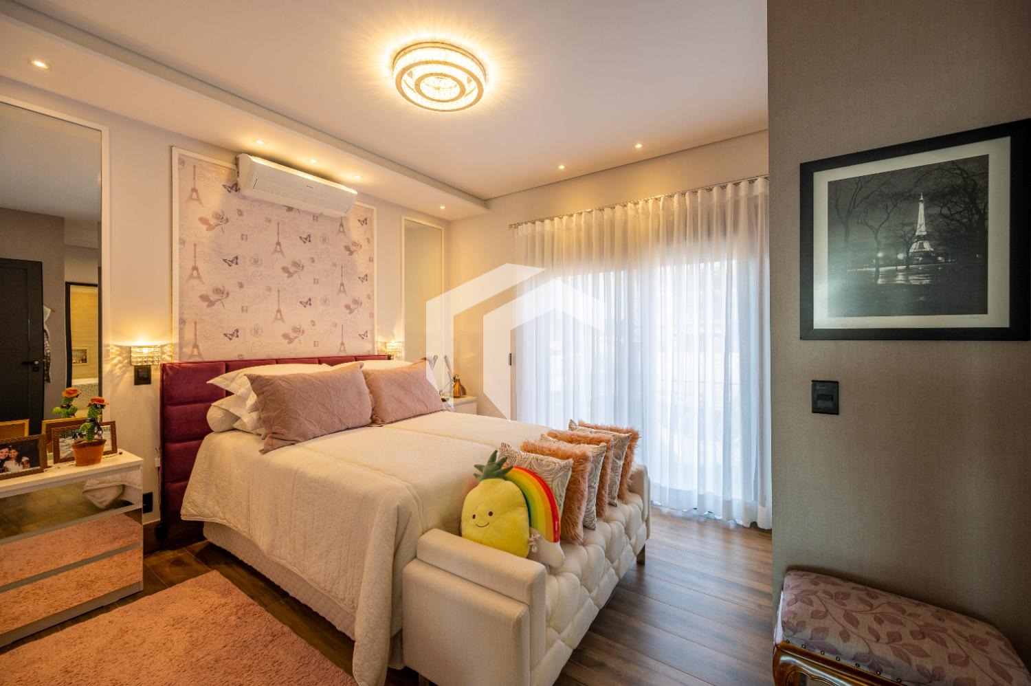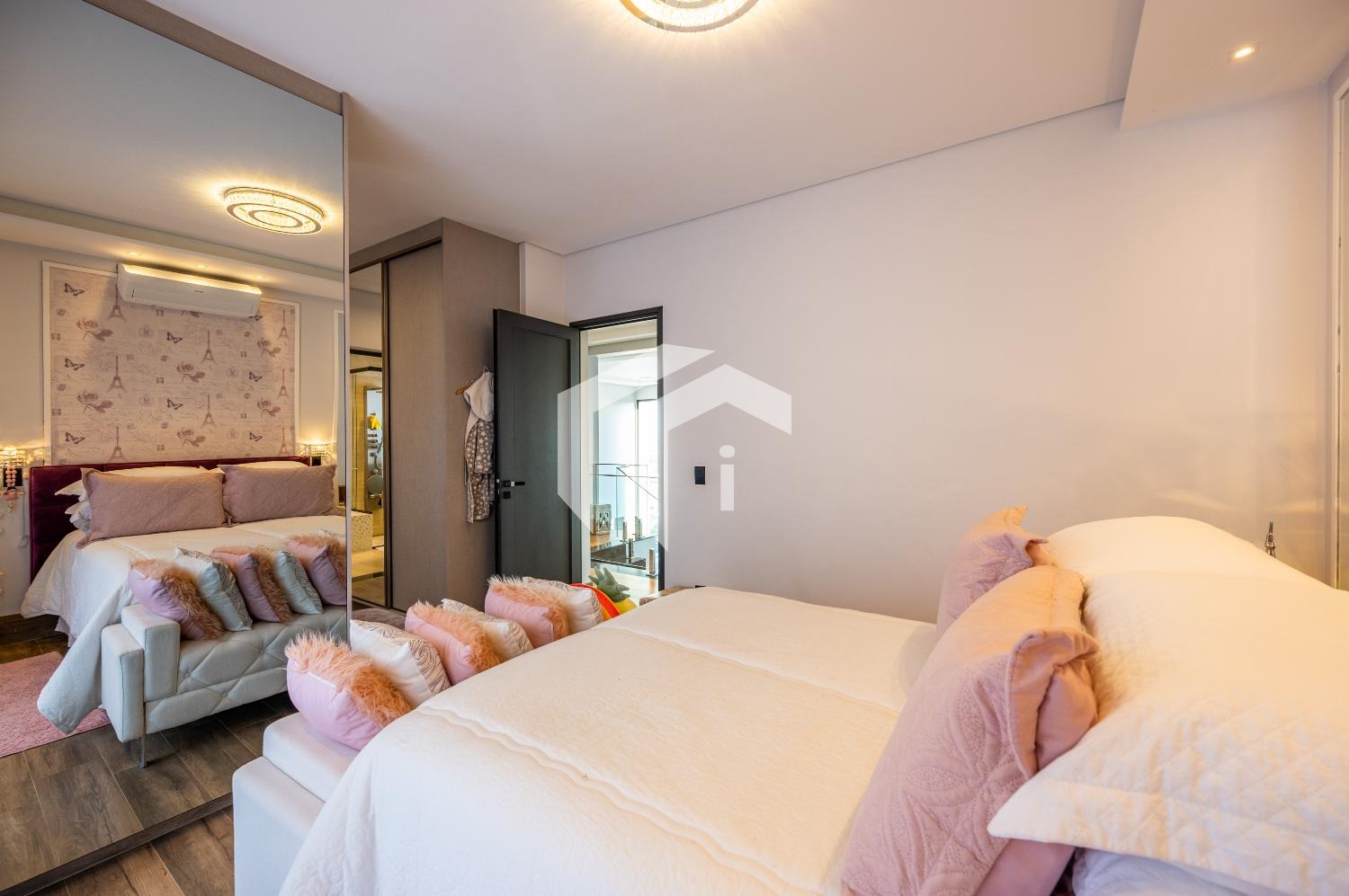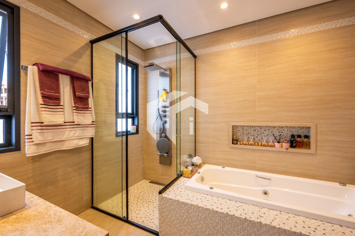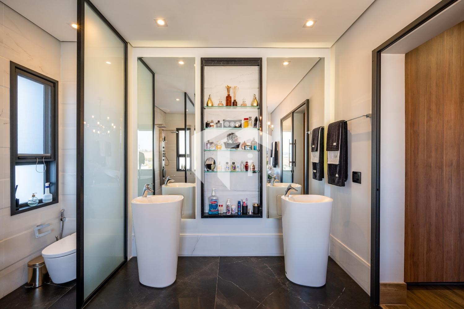 Sâo 4 amplas suítes (1 master) com sala de banho, todas climatizadas e com persianas automatizadas.
