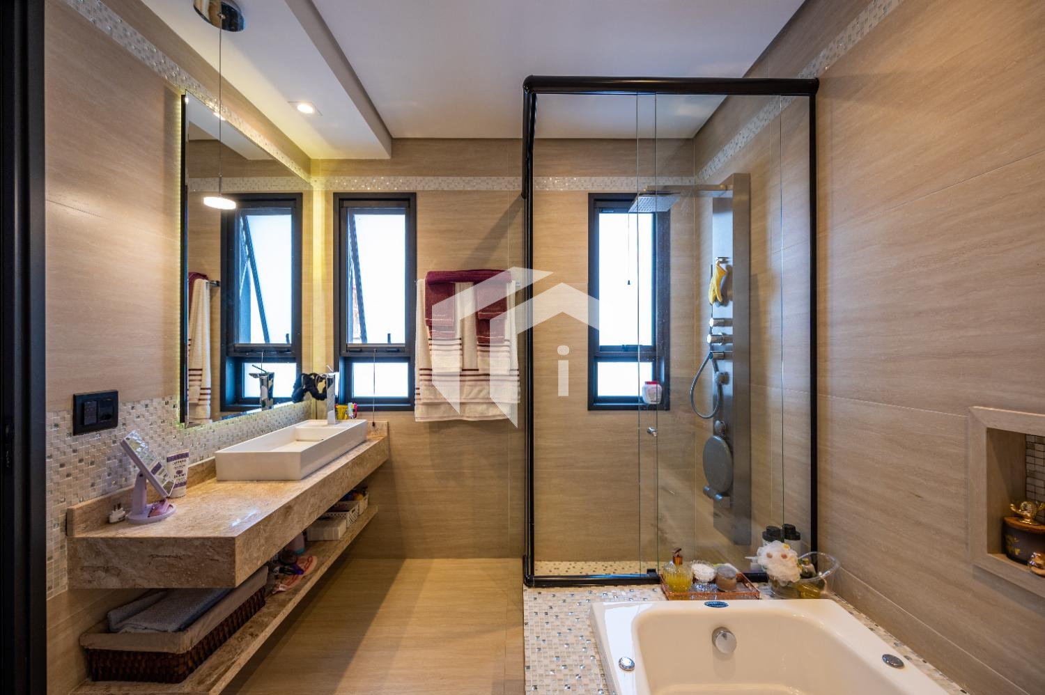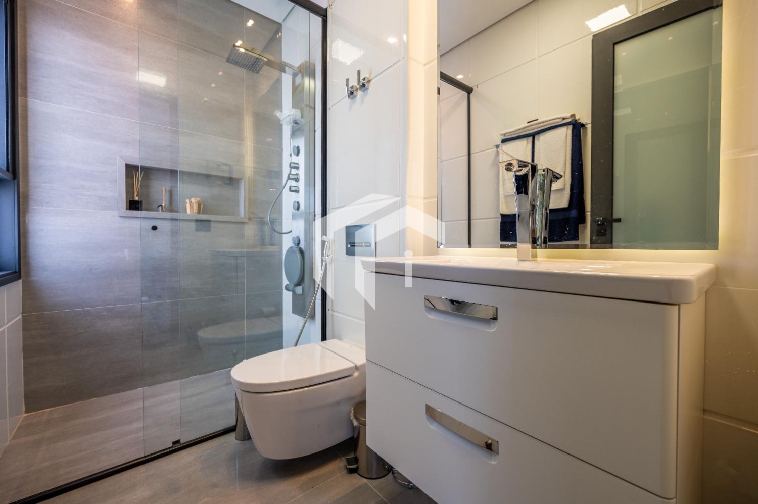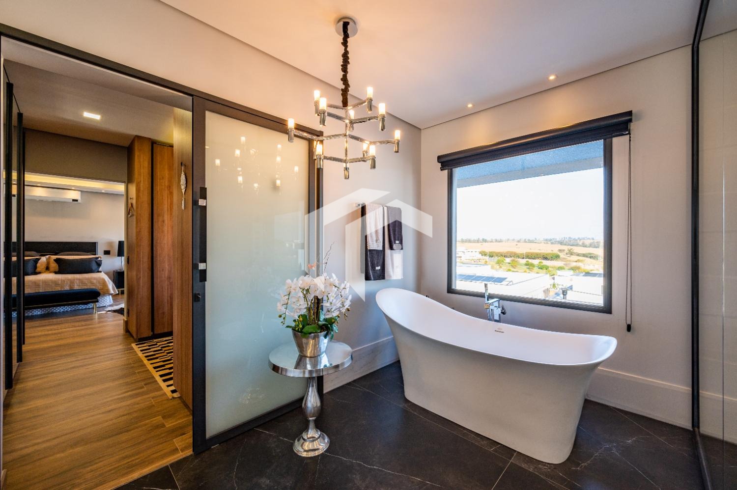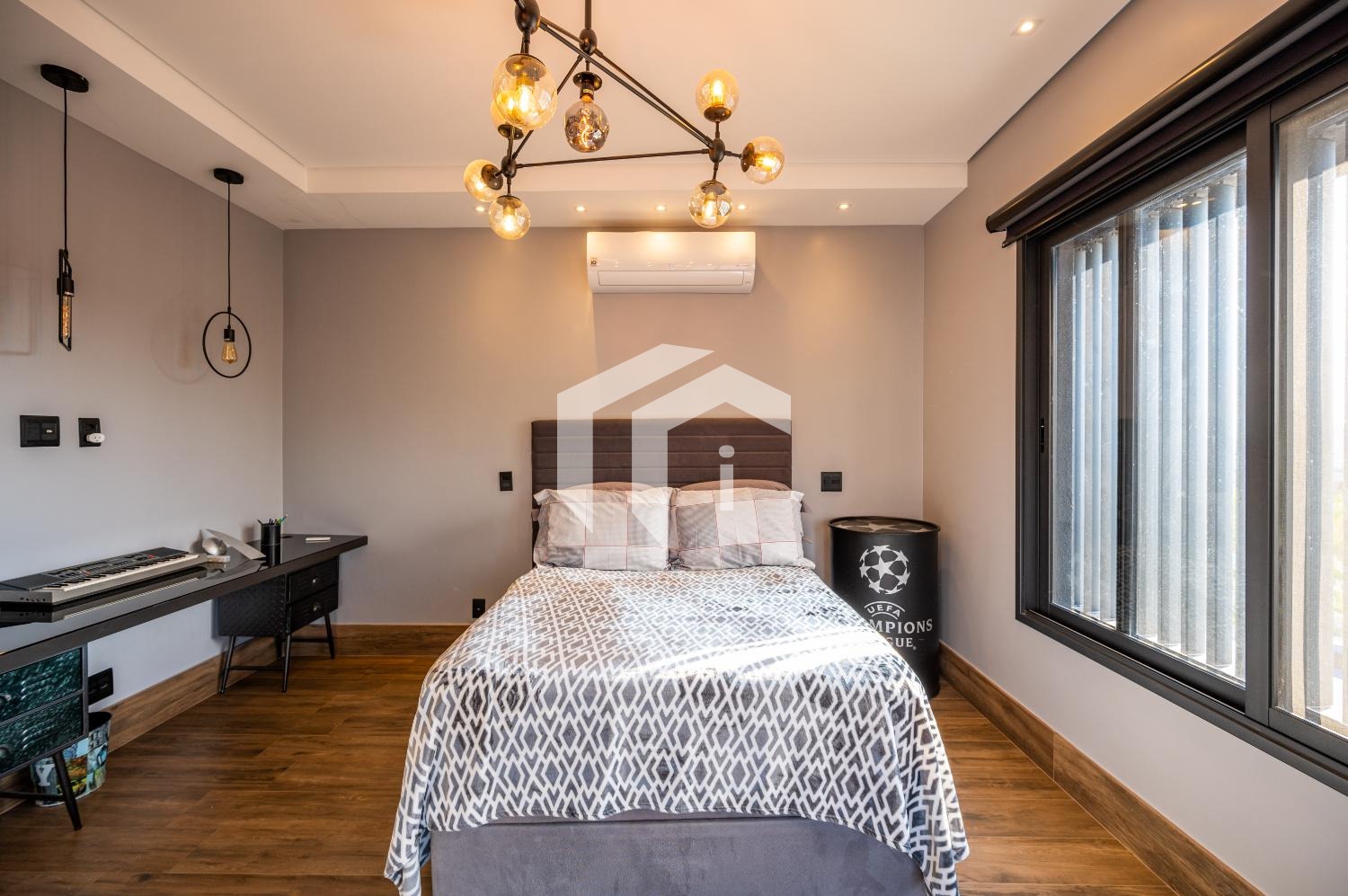 Sâo 4 amplas suítes (1 master) com sala de banho, todas climatizadas e com persianas automatizadas.