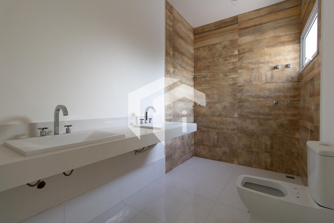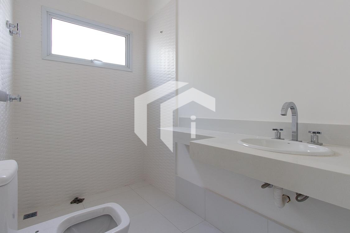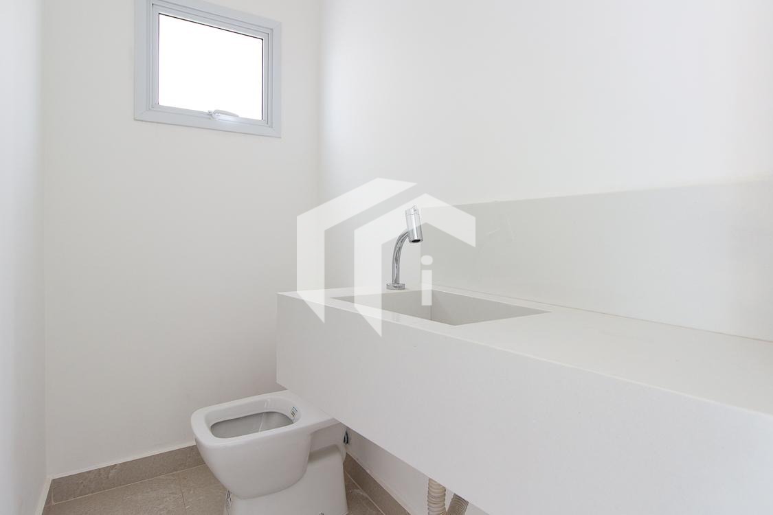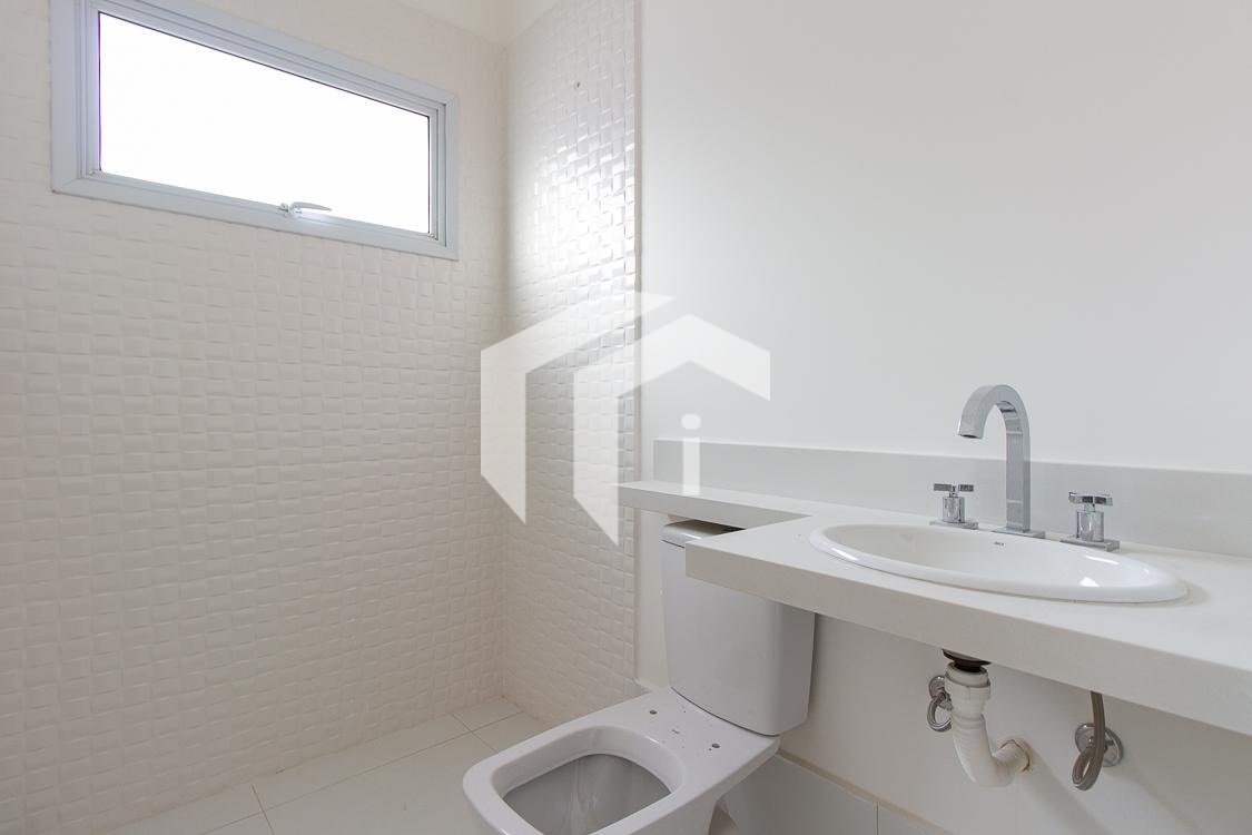 O lavabo, cuidadosamente projetado, oferece comodidade aos moradores e visitantes.