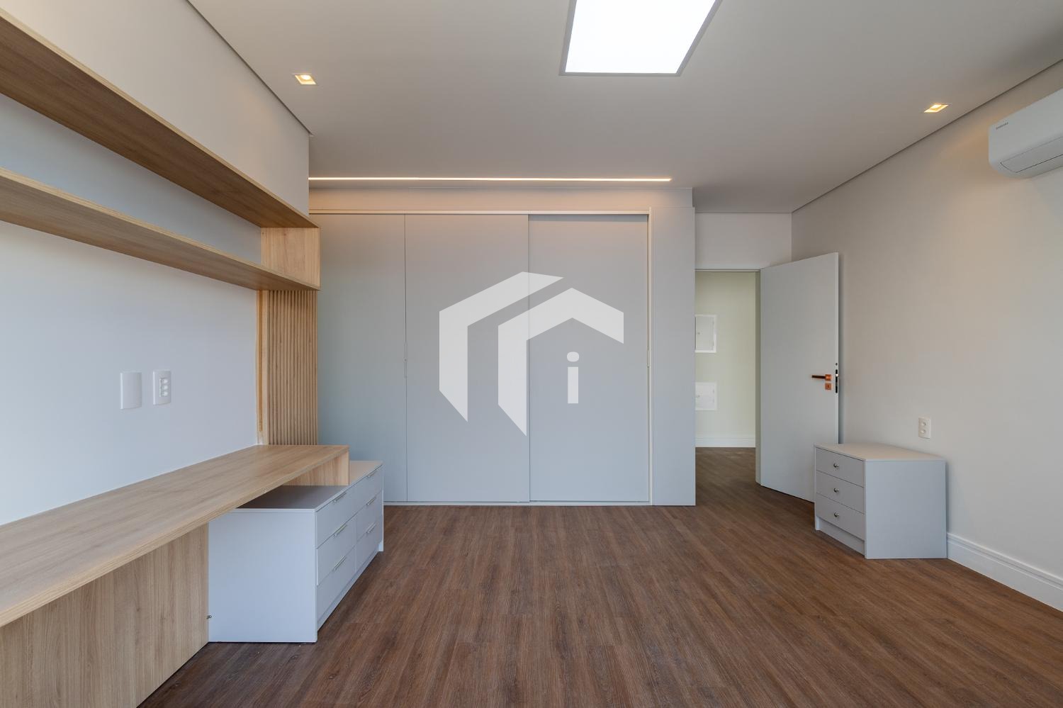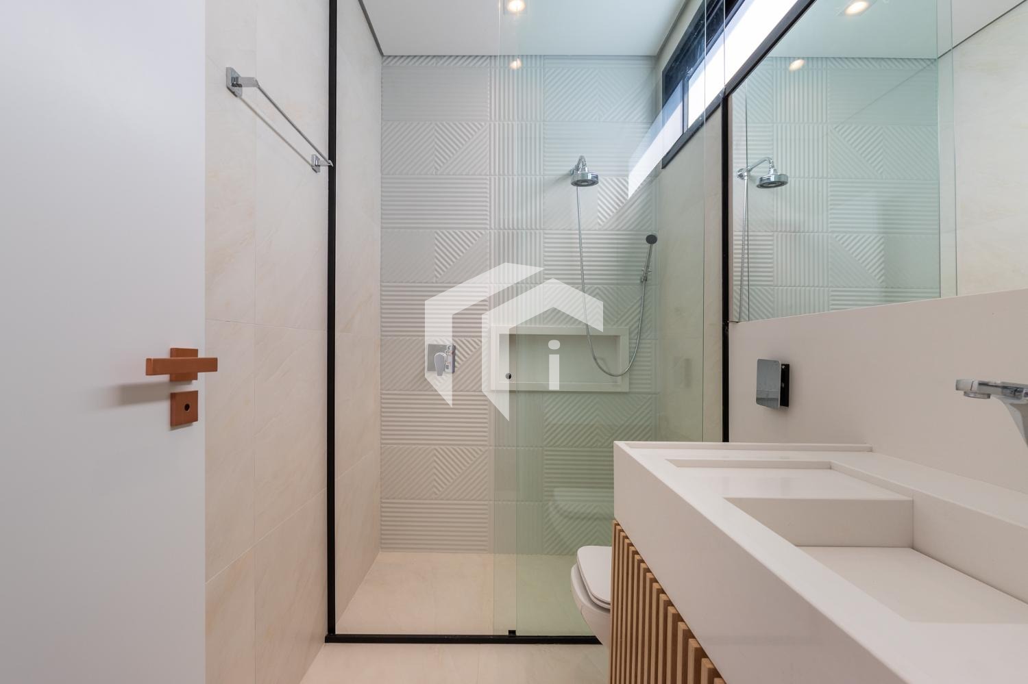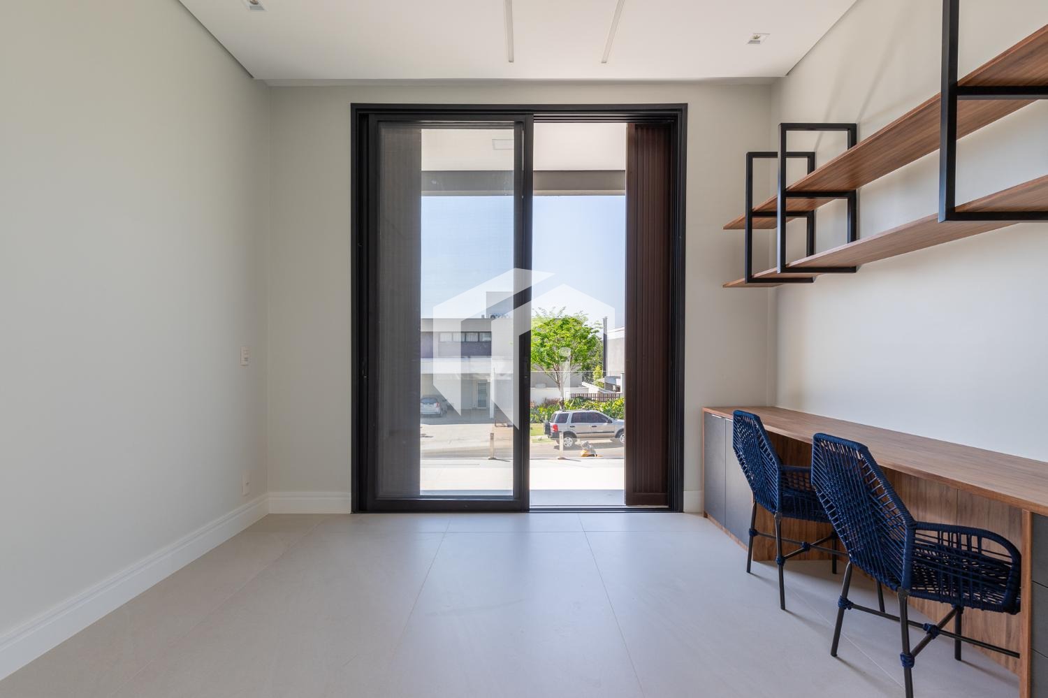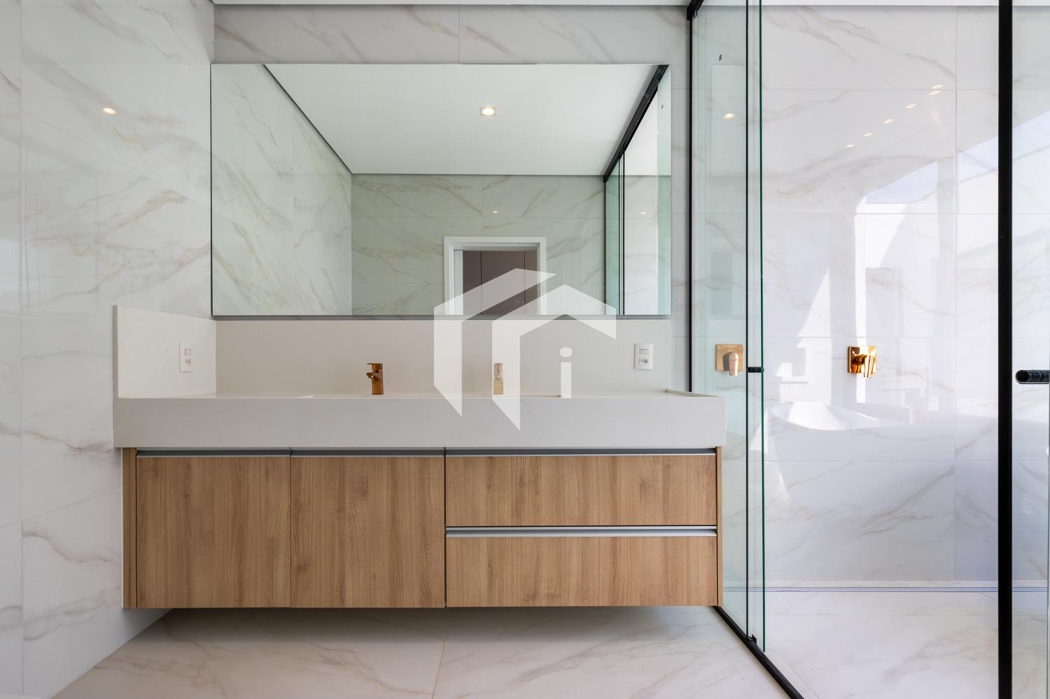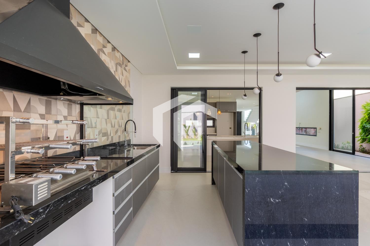 Além disso, há uma suíte térrea, uma espaçosa sala de estar dividida em três ambientes, um elegante lavabo, e uma cozinha ricamente planejada e totalmente equipada.