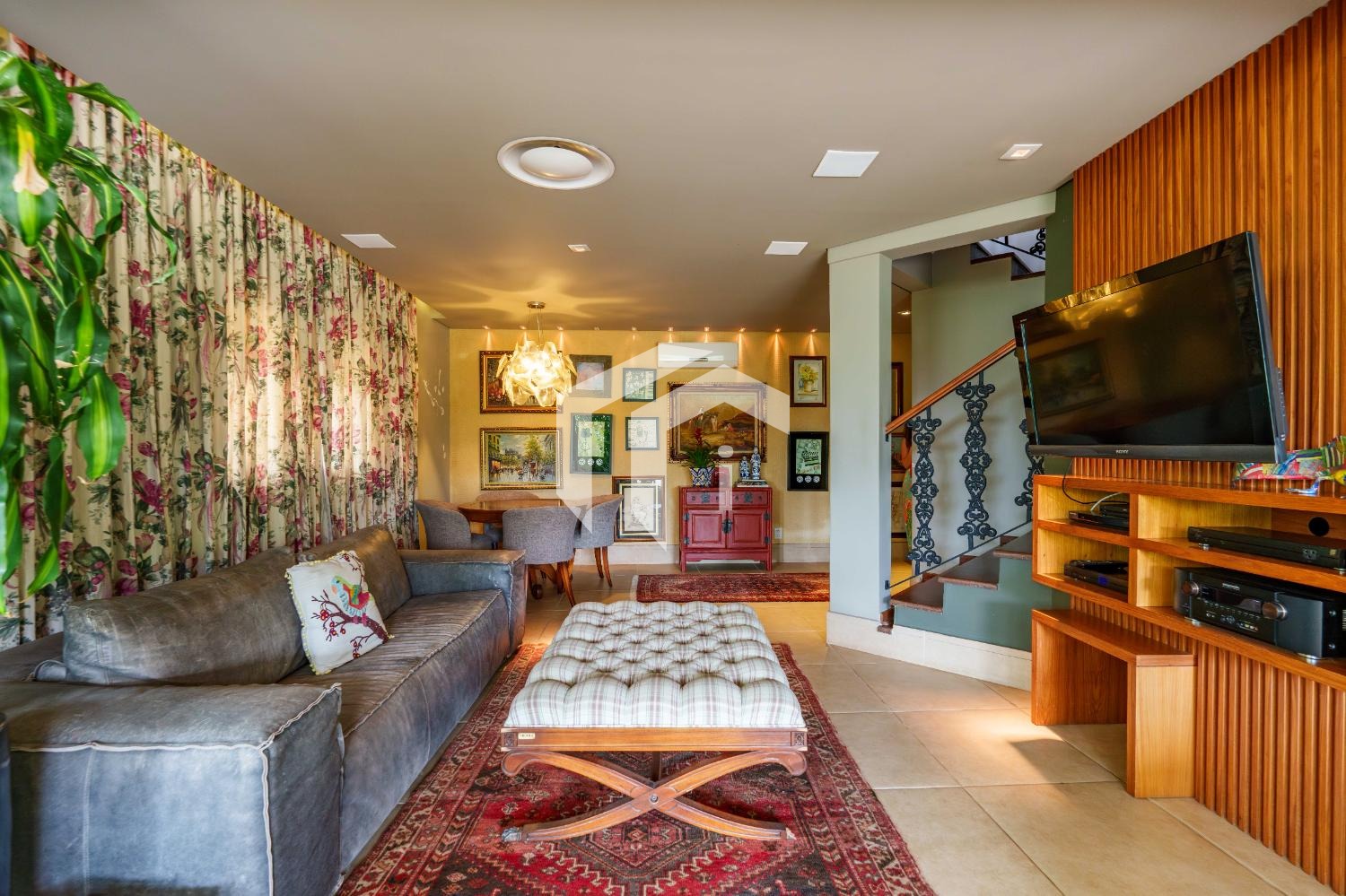 Living para 3 ambientes com lavabo e sala de tv, mais, copa/cozinha planejada e área de serviço com dependência.