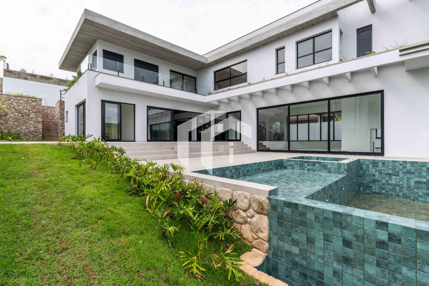Casa com 5 suítes, ampla sala de jantar, varanda gourmet, piscina com cascata e jacuzzi.