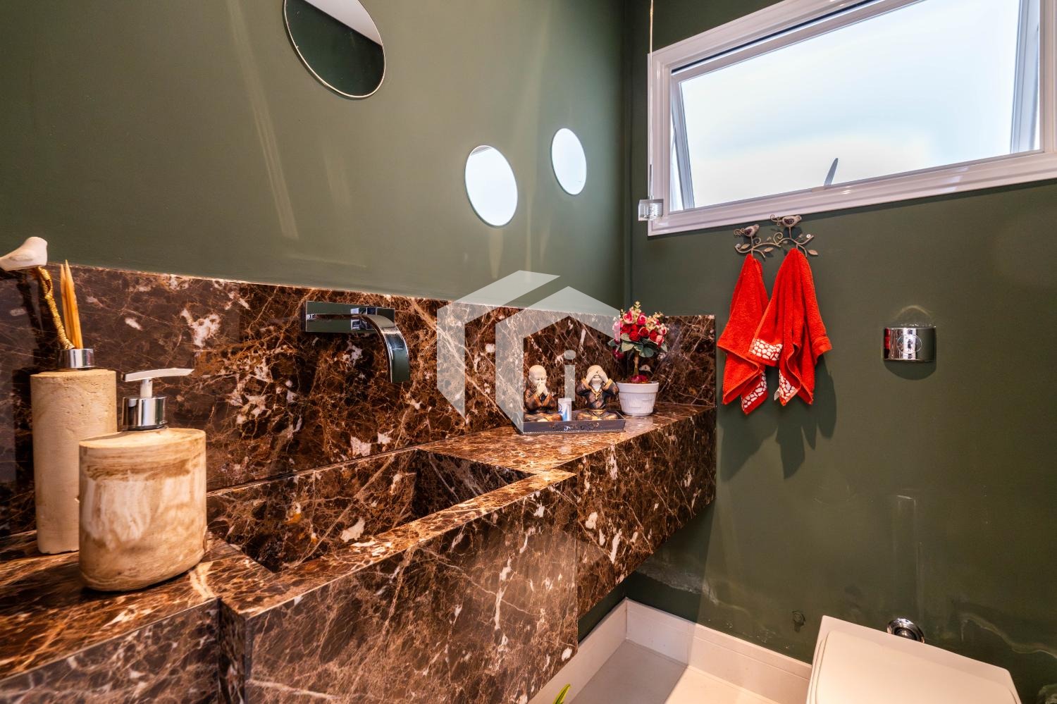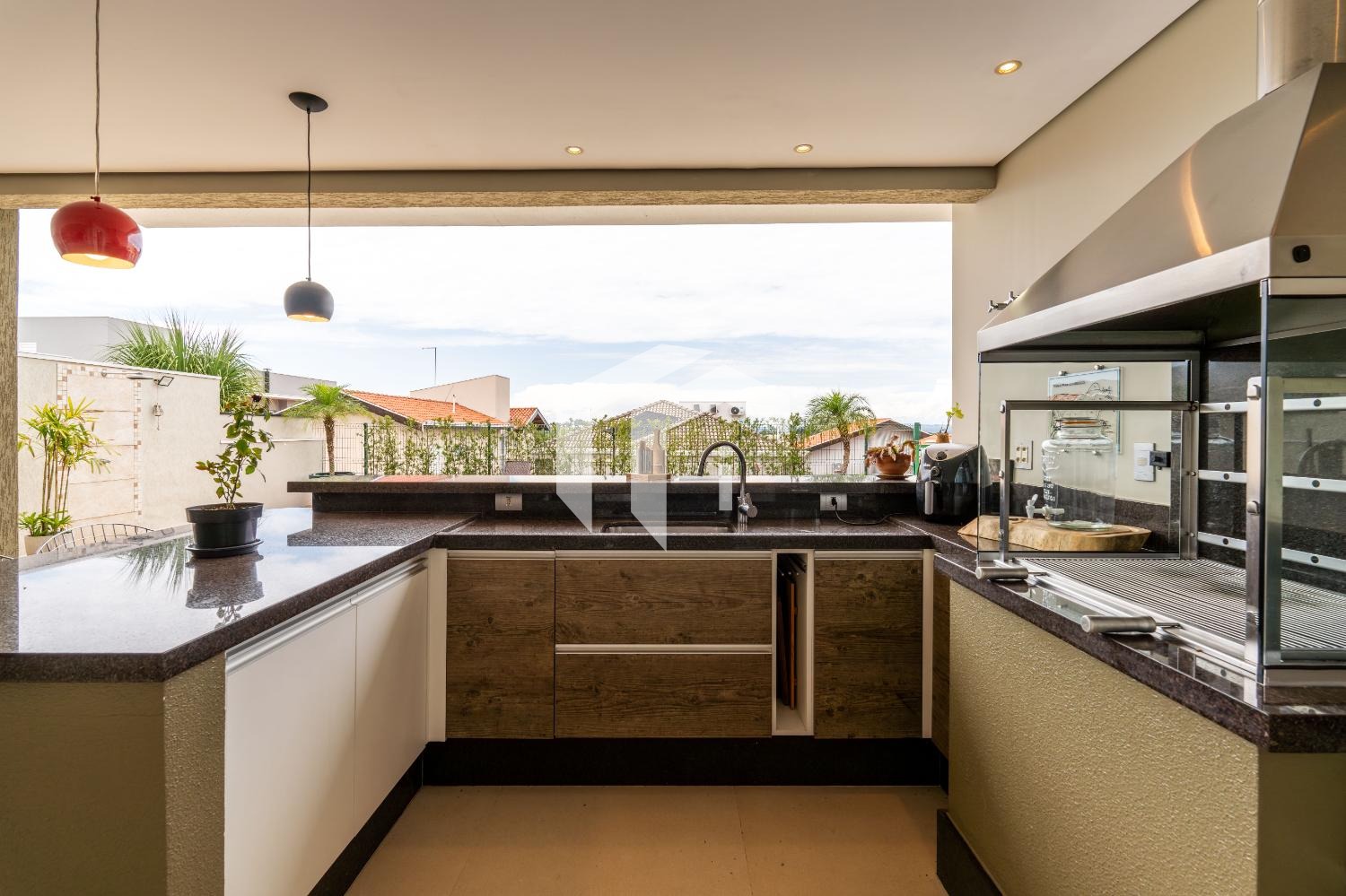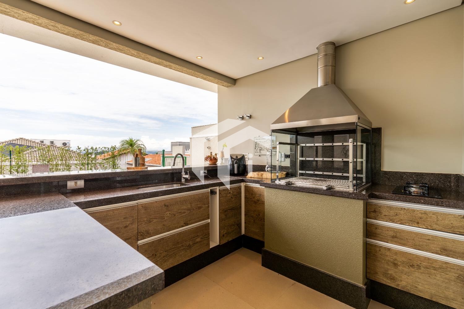A cozinha é bem equipada, com passa pratos com fechamento automático em alumínio, a cozinha se conecta com à sala de almoço, onde as refeições contemplam todo o visual da área externa.