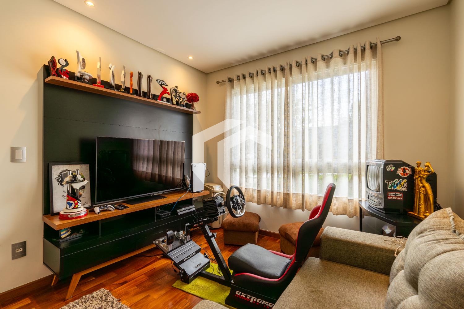 Sala para 2 amplos ambientes com pé direito duplo e sala de TV ou escritório.