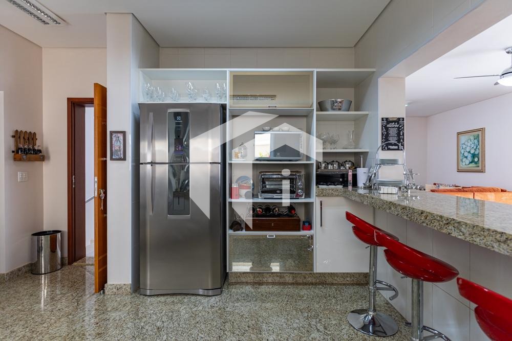 Cozinha americana, totalmente planejada e integrada ao espaço gourmet é um convite para os amantes da gastronomia.