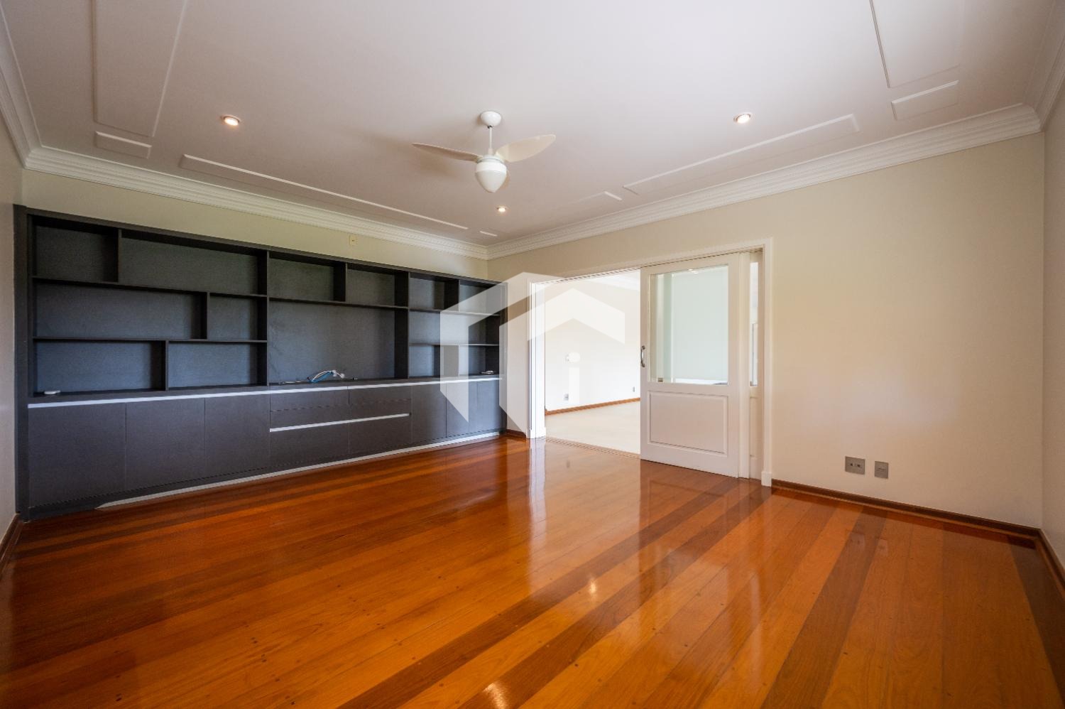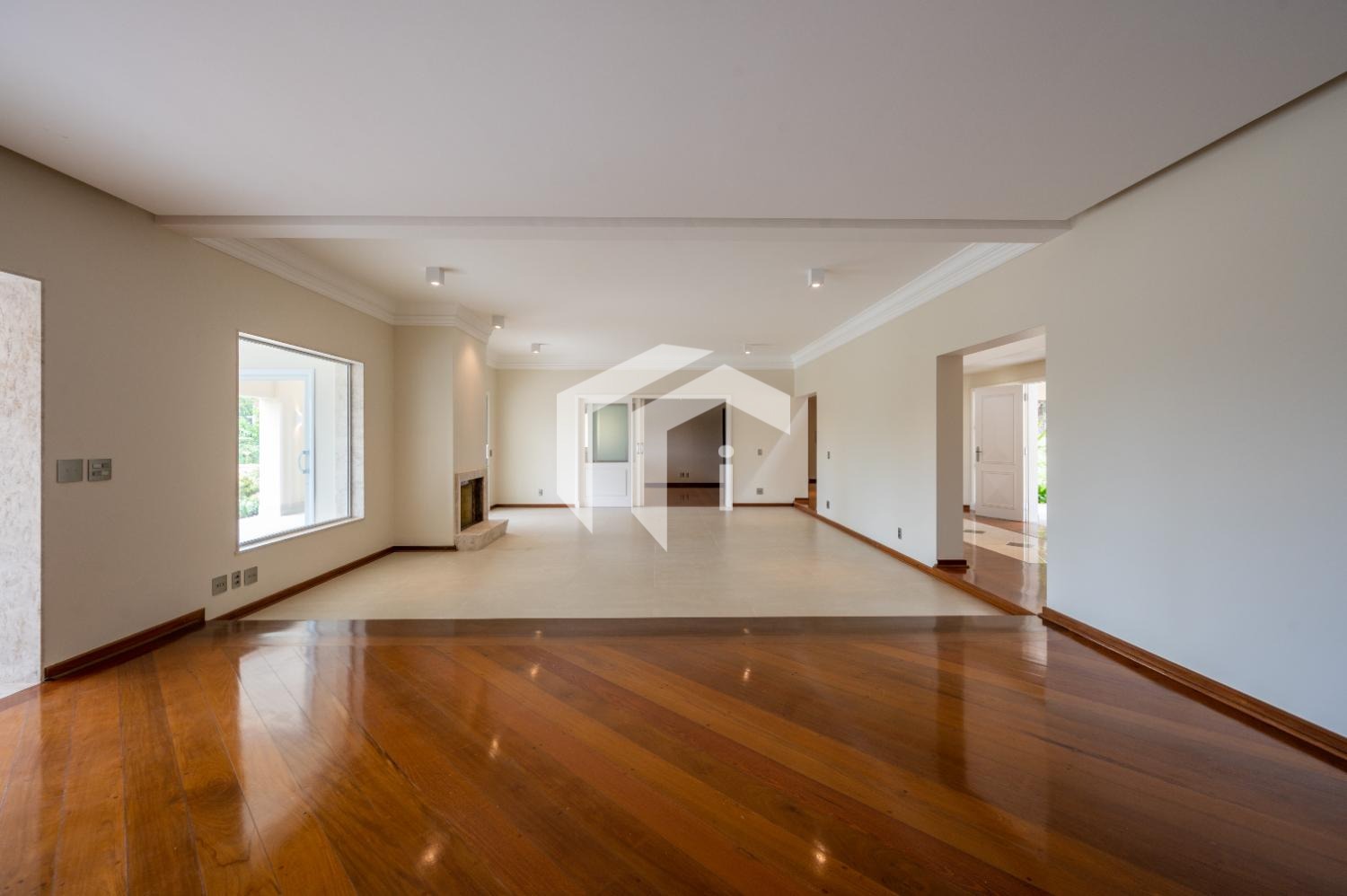 Living para 4 ambientes com lareira e sala de tv, mais, home office e lavabo.