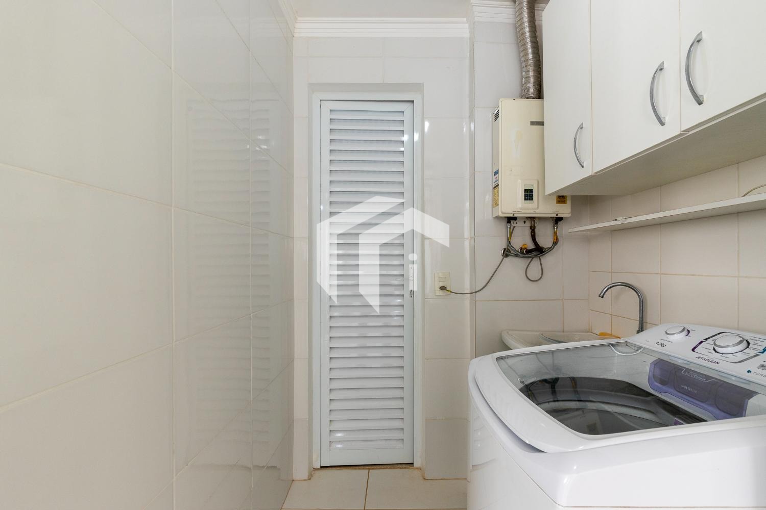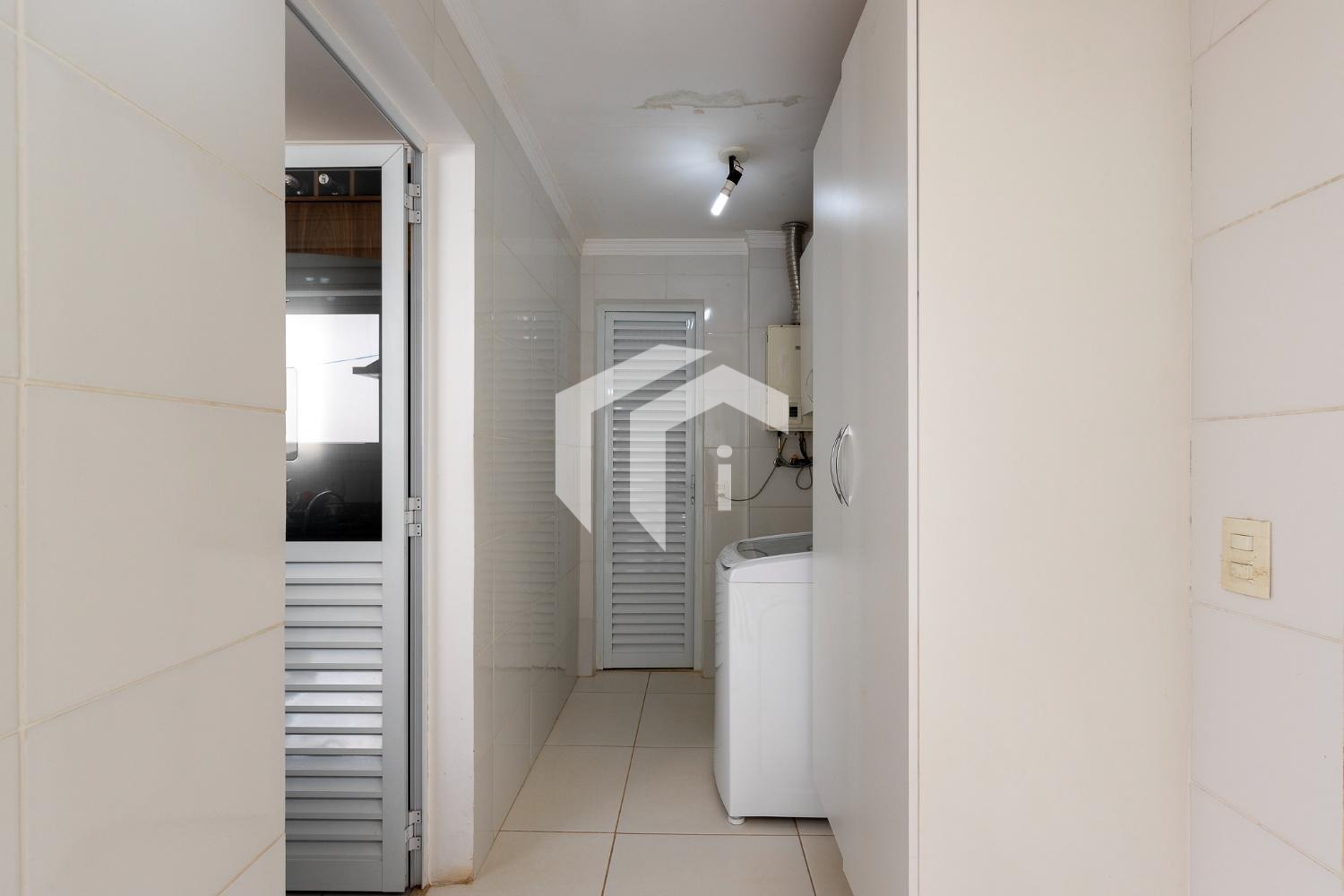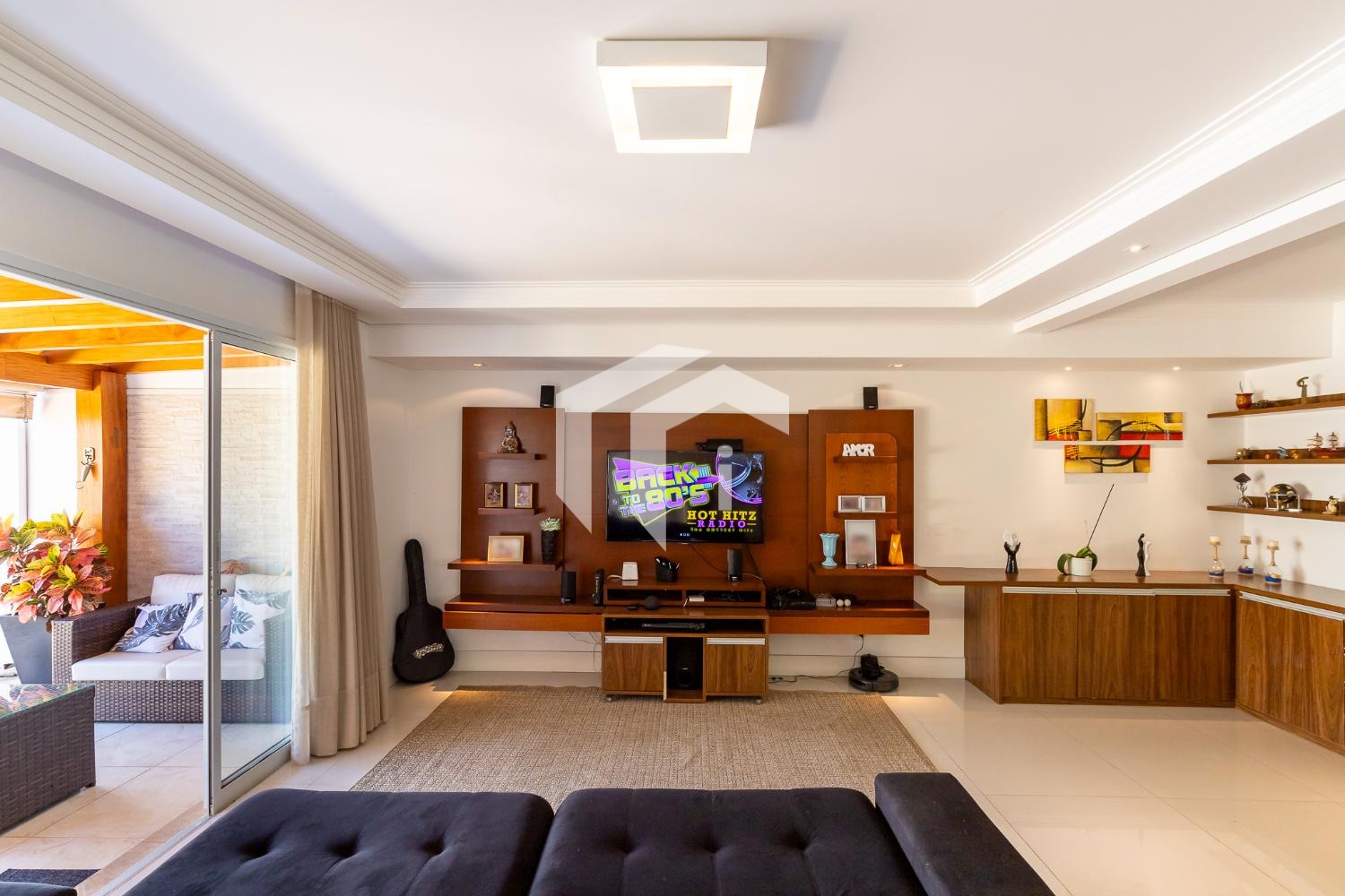 Living para 3 ambientes, escritório, lavabo, cozinha americana, despesa, área e banheiro de serviço.
