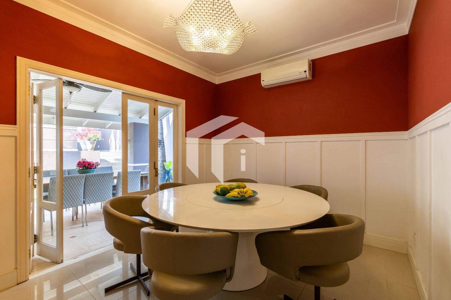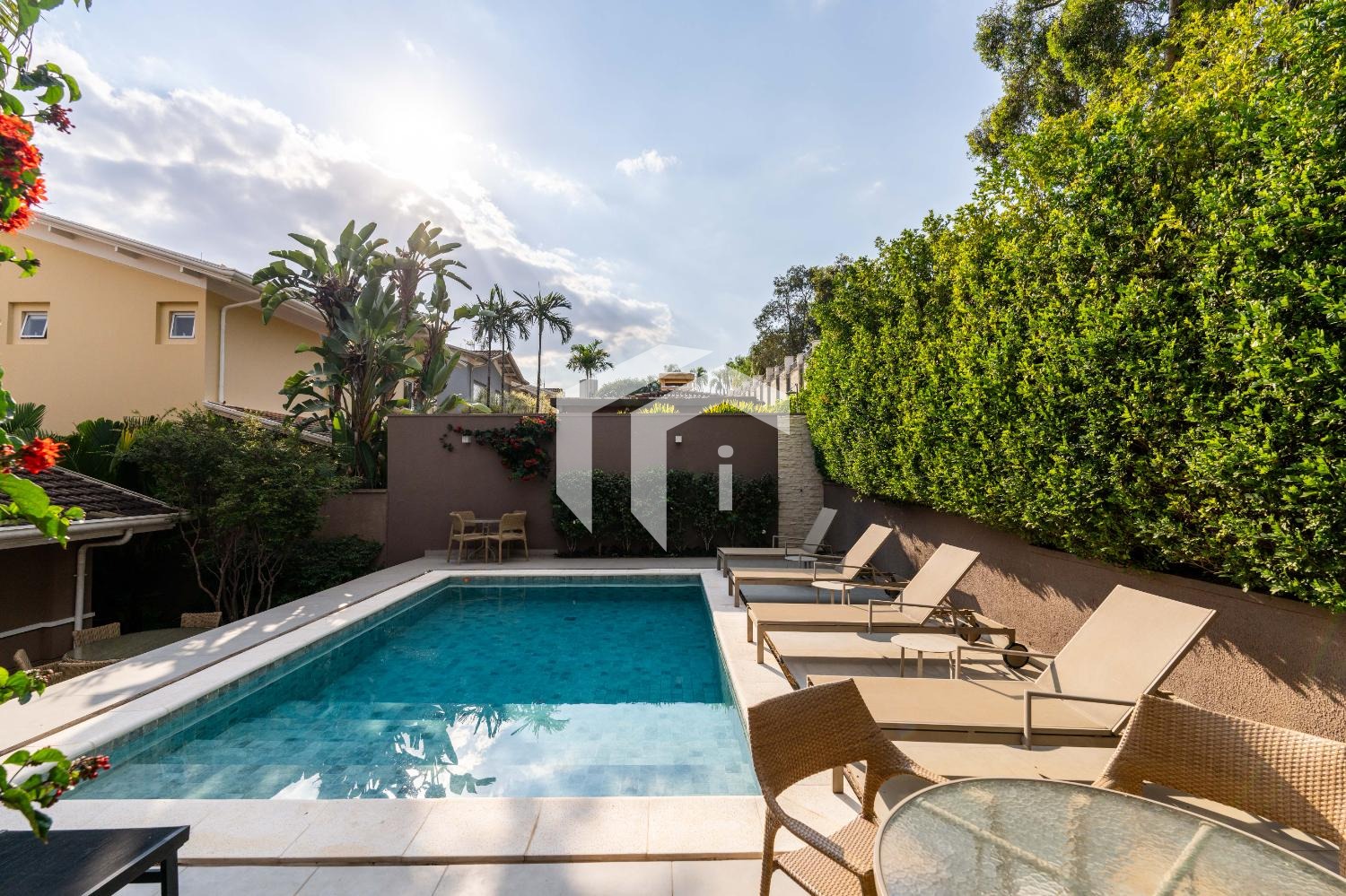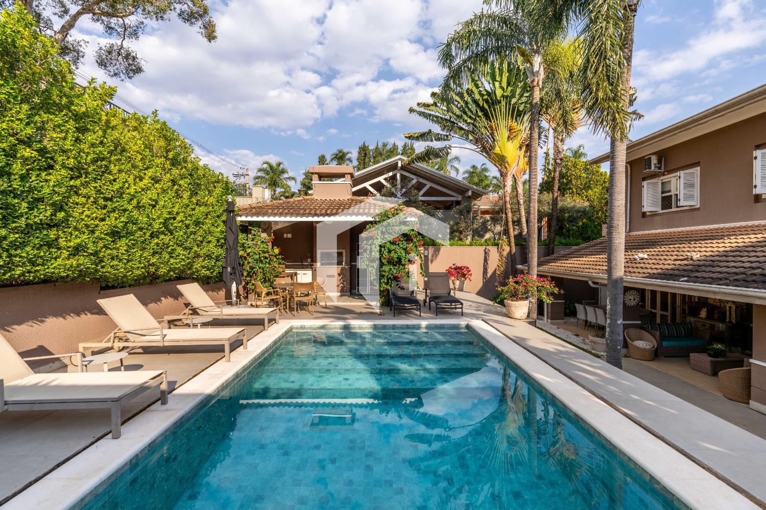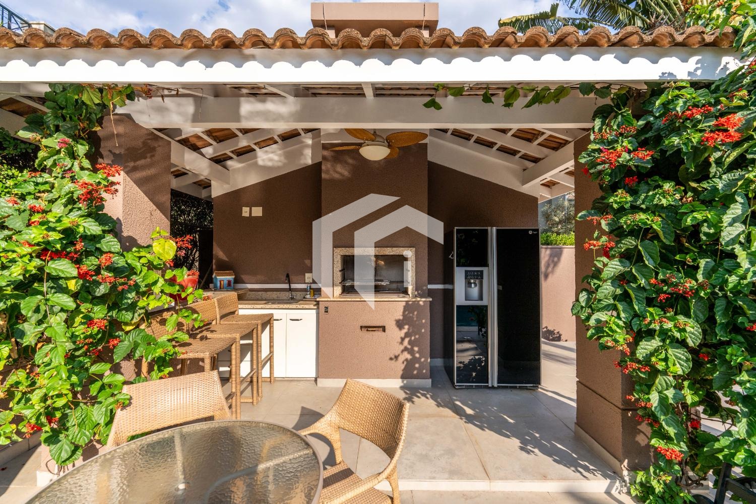 Convidativo espaço gourmet com uma generosa área de lazer toda equipada e com um lindo paisagismo, destaca-se por sua plena privacidade, com piscina, cozinha planejada com despensa e copa e mais dependência de empregada.