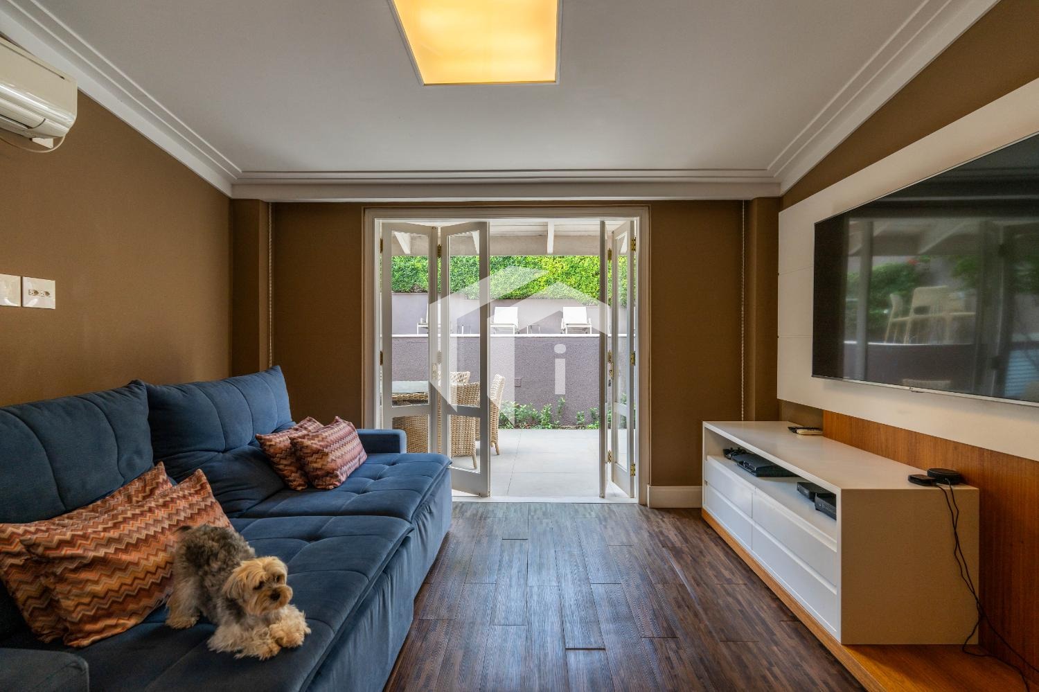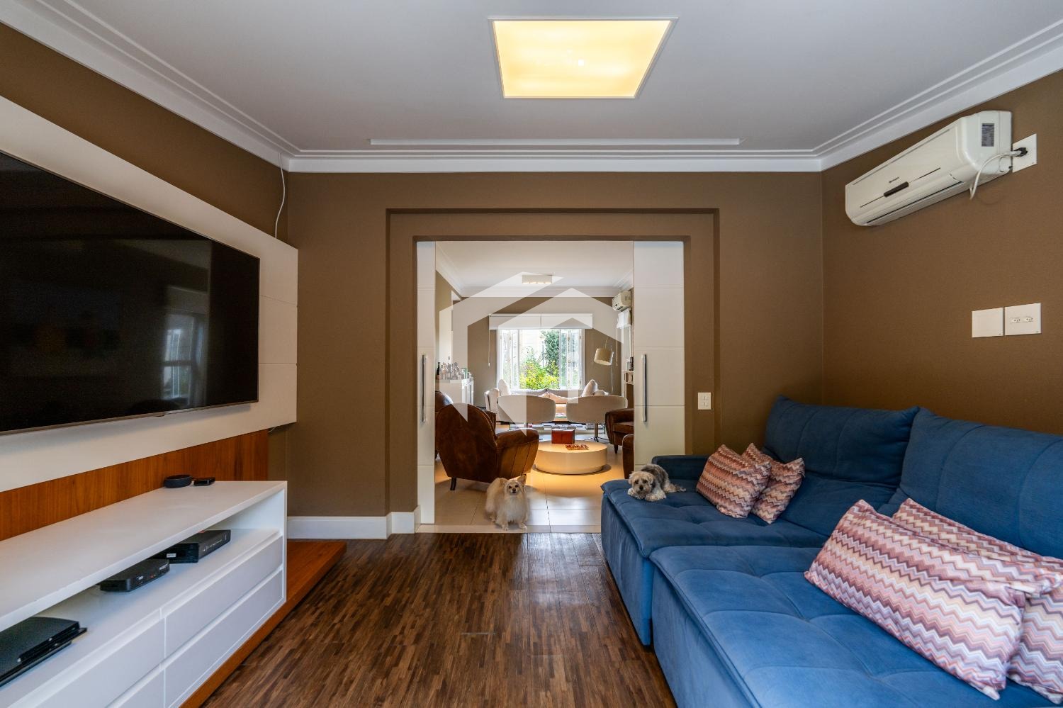 Sala íntima de tv, living com lareira para 3 ambientes mais sala de TV / Home office, lavabo e ampla varanda.