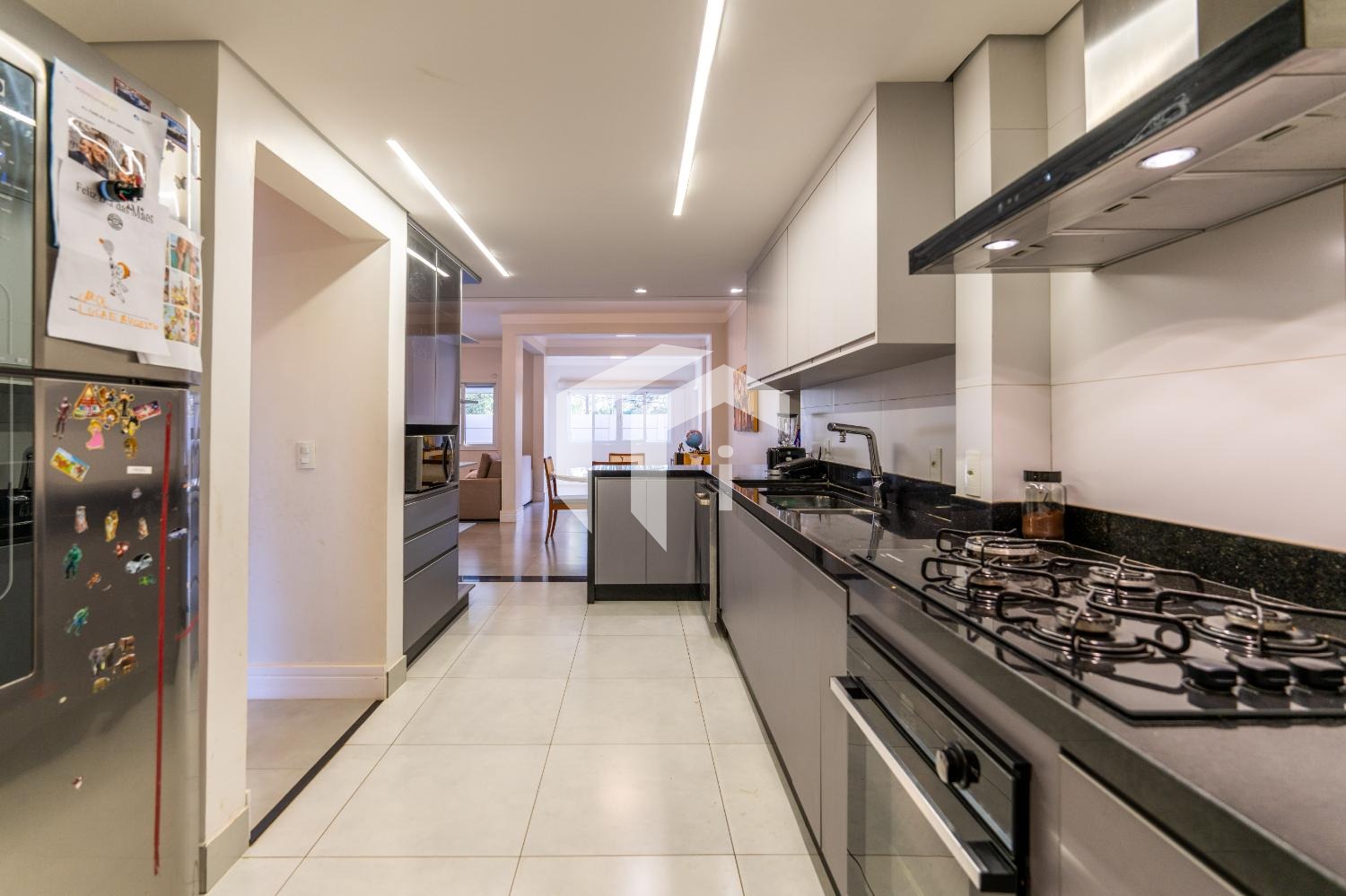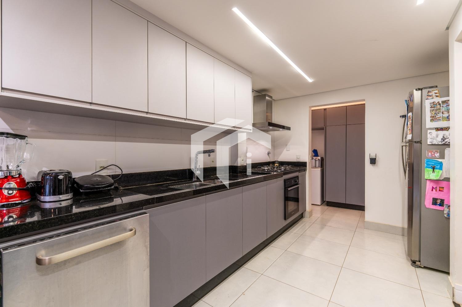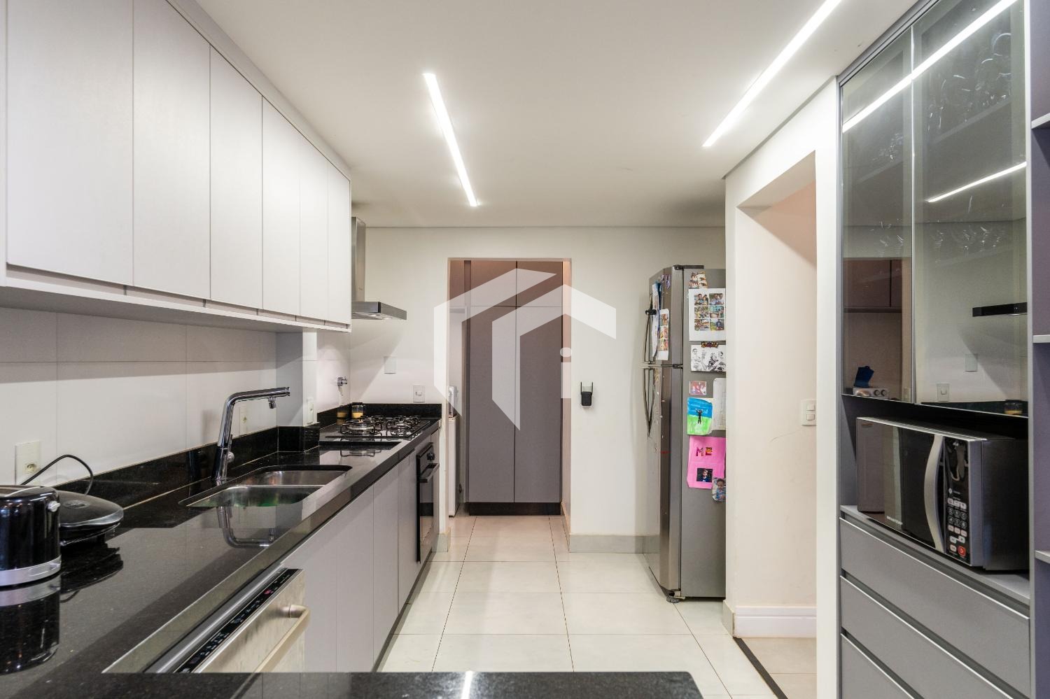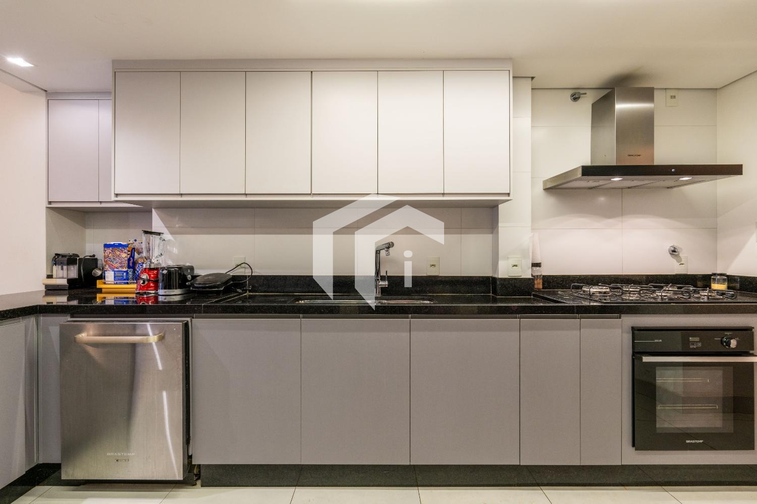 A cozinha americana, meticulosamente planejada, une funcionalidade e estilo de forma harmoniosa.
