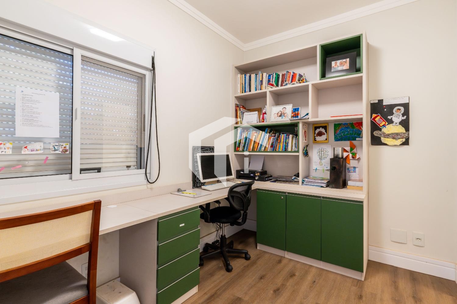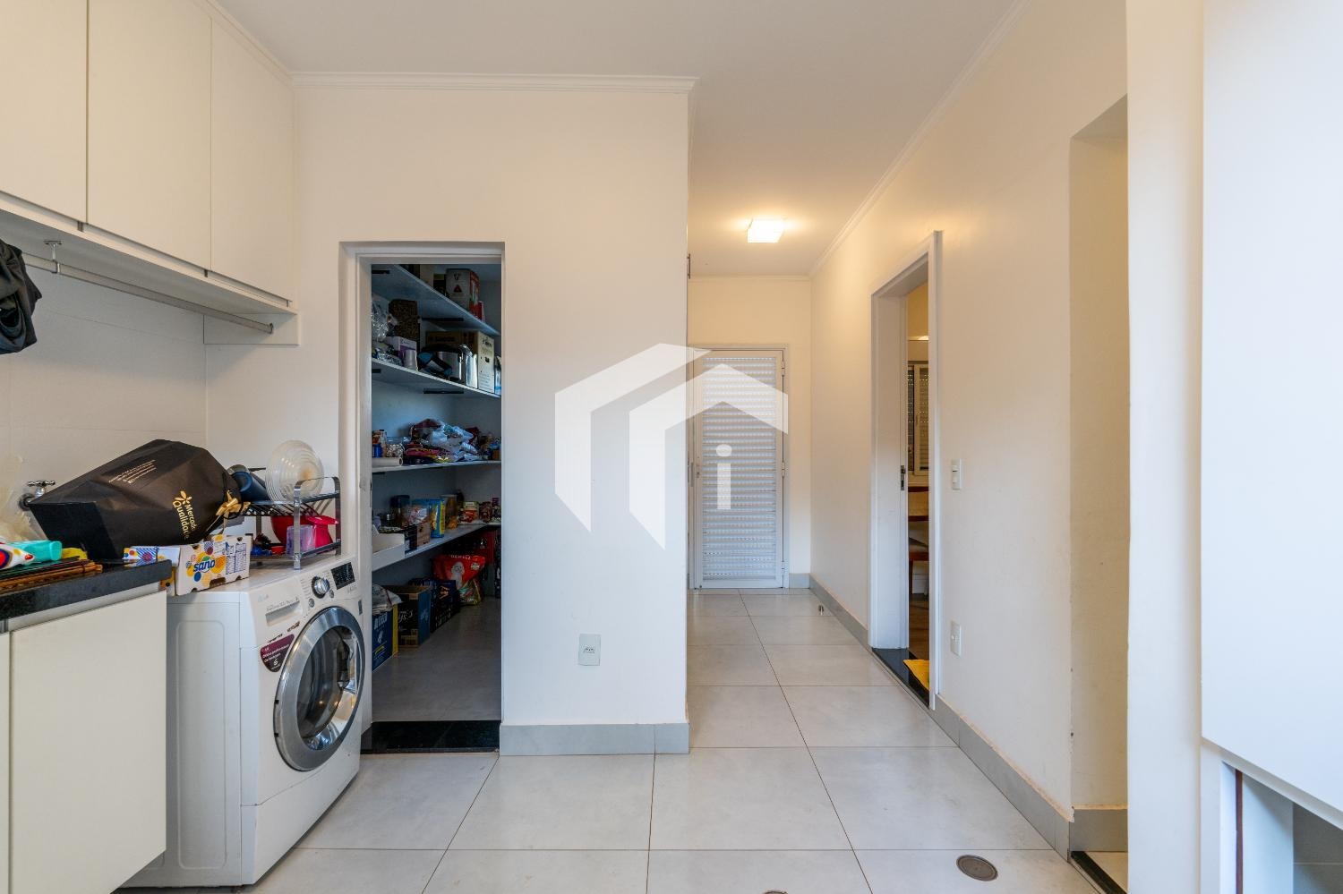 Na área de serviço, um ambiente de espaço aberto acrescenta praticidade ao cotidiano, além de um espaço projetado para um escritório.
