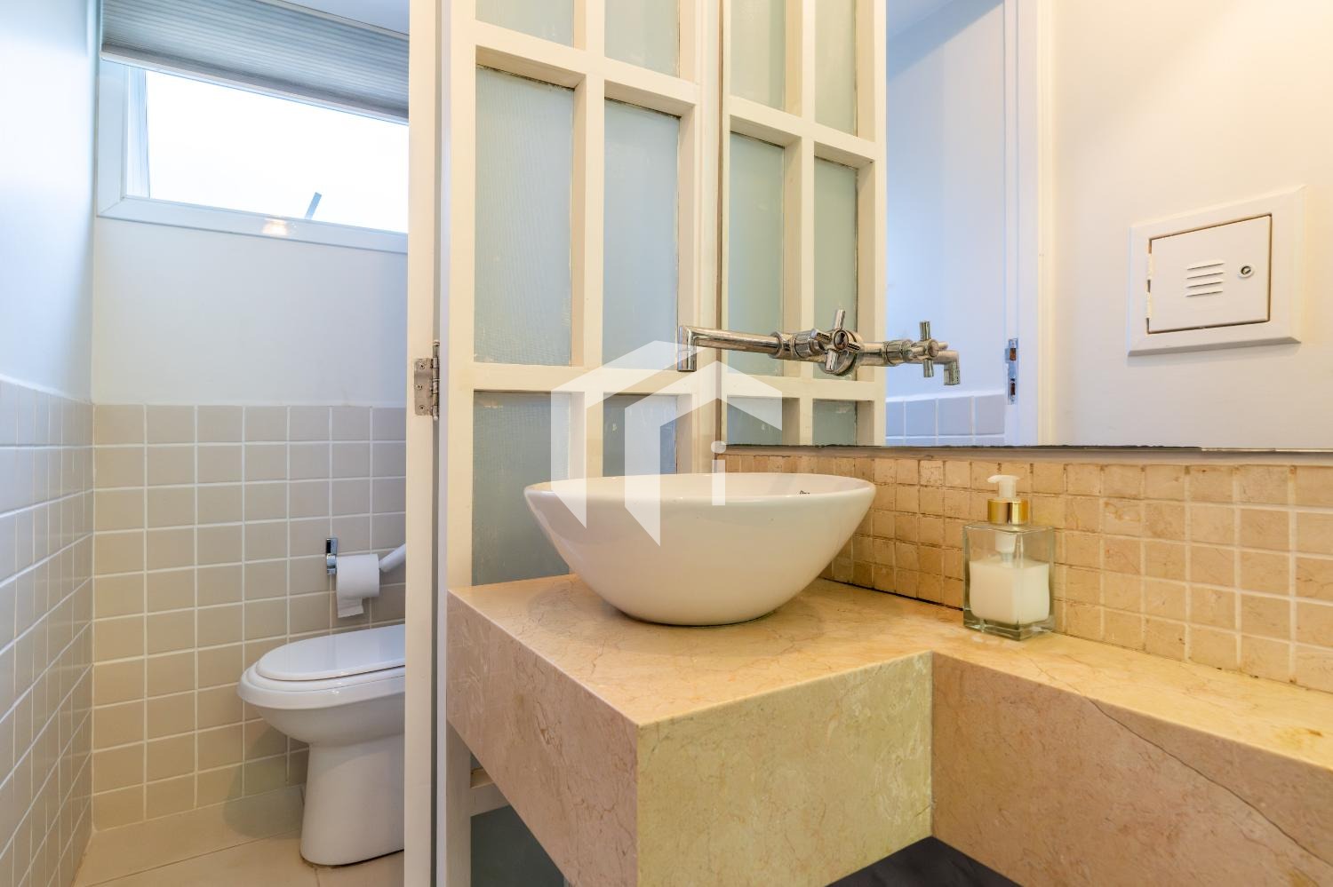 O espaço de convivência, cuidadosamente projetado, compreende dois ambientes distintos e um lavabo, criando um local perfeito para receber visitantes.