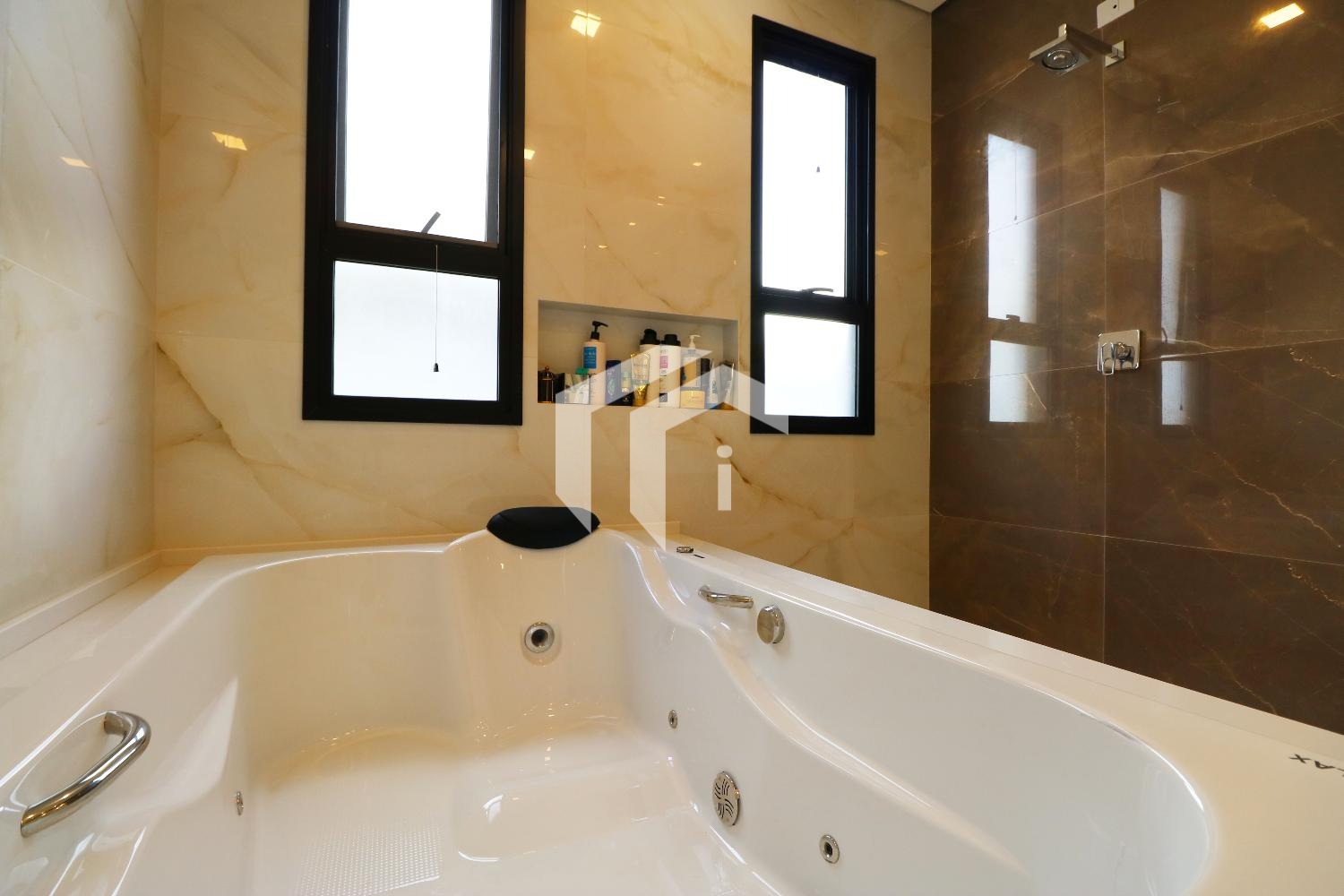 São 4 dormitórios sendo 4 suítes 1 master), living para 3 ambientes com pé direito duplo, lavabo e sala de tv, tudo integrado ao convidativo espaço gourmet e à piscina aquecida.
