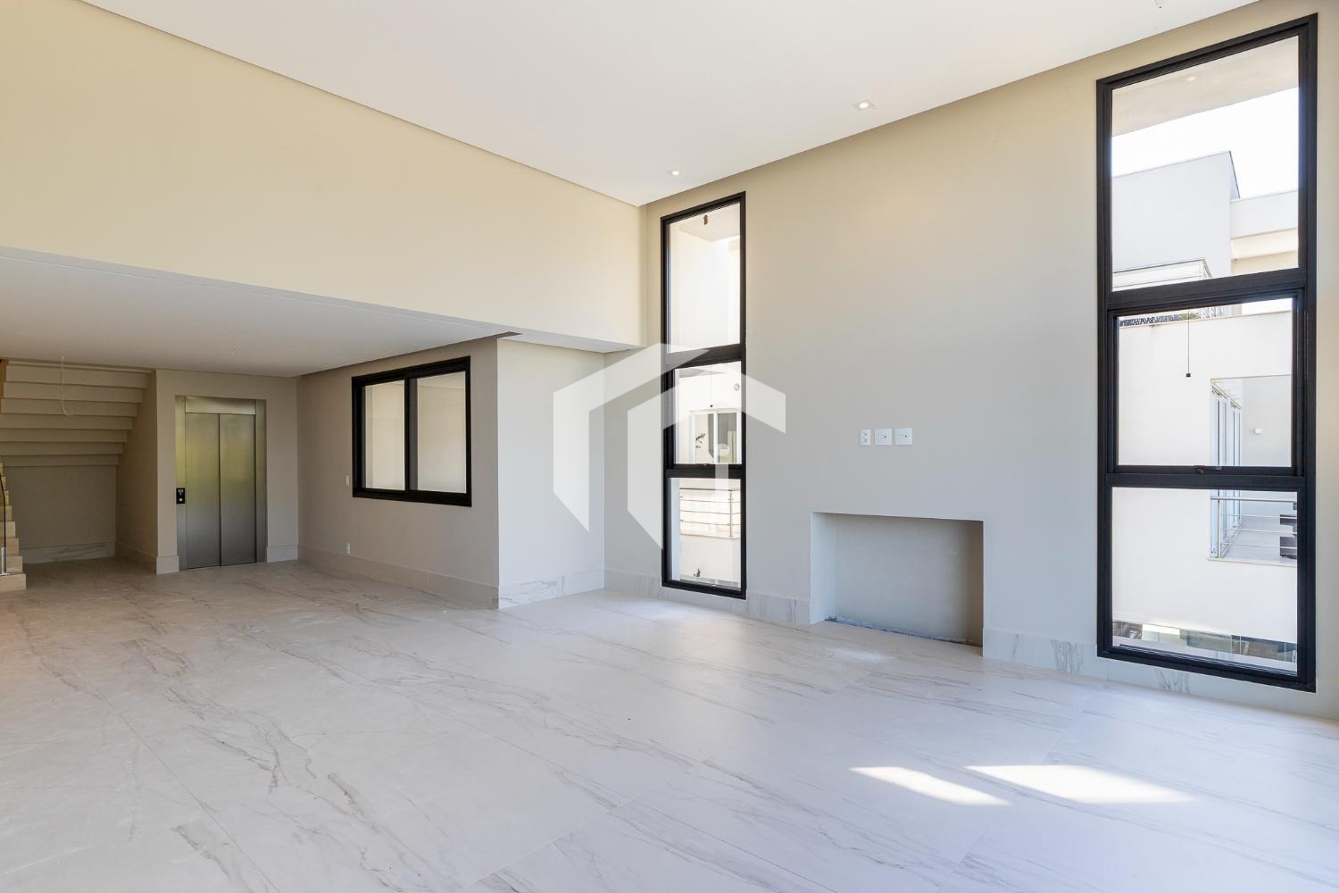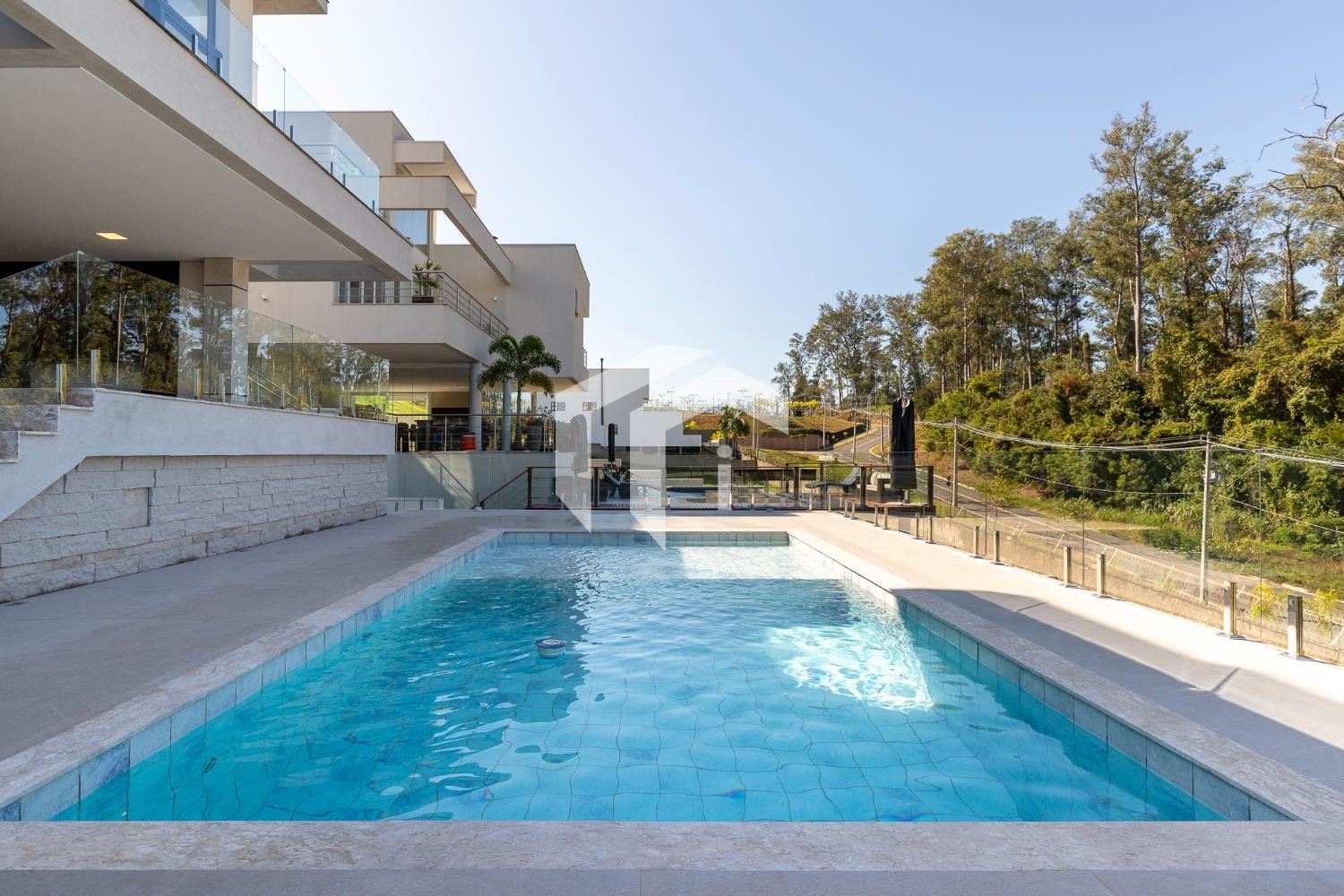 Living com lareira, com pé direito de 7 metros e vista privilegiada são os espaços ideais para relaxar e aproveitar momentos especiais, área gourmet com piscina complementam o lazer.