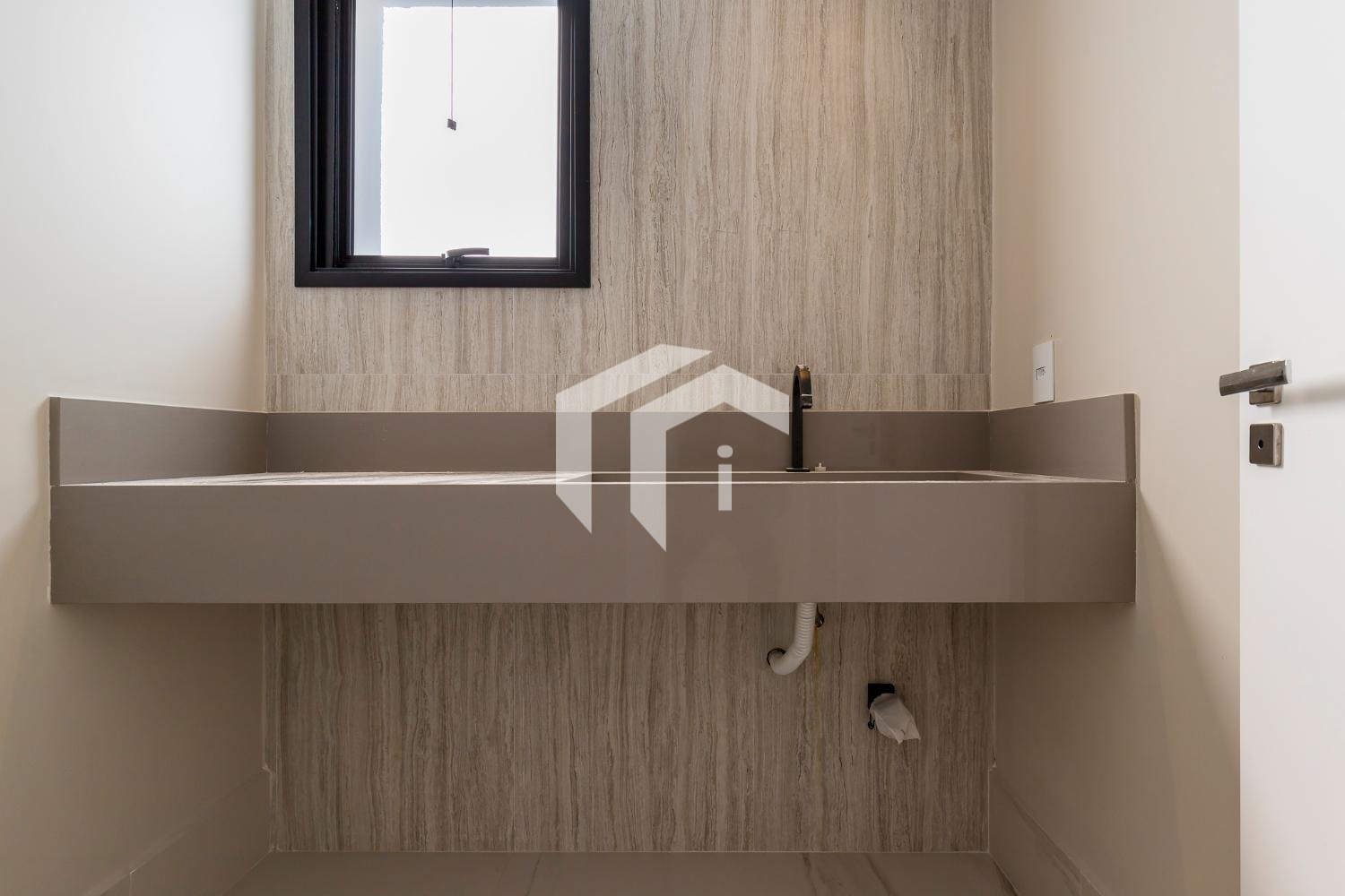 Os acabamentos em mármore, revestimentos da Castelatto e Portobello garantem sofisticação, enquanto as escadas em travertino adicionam um toque elegante.