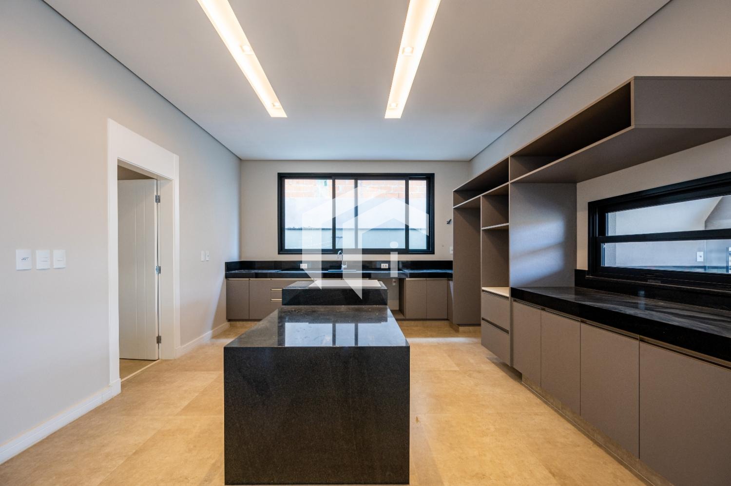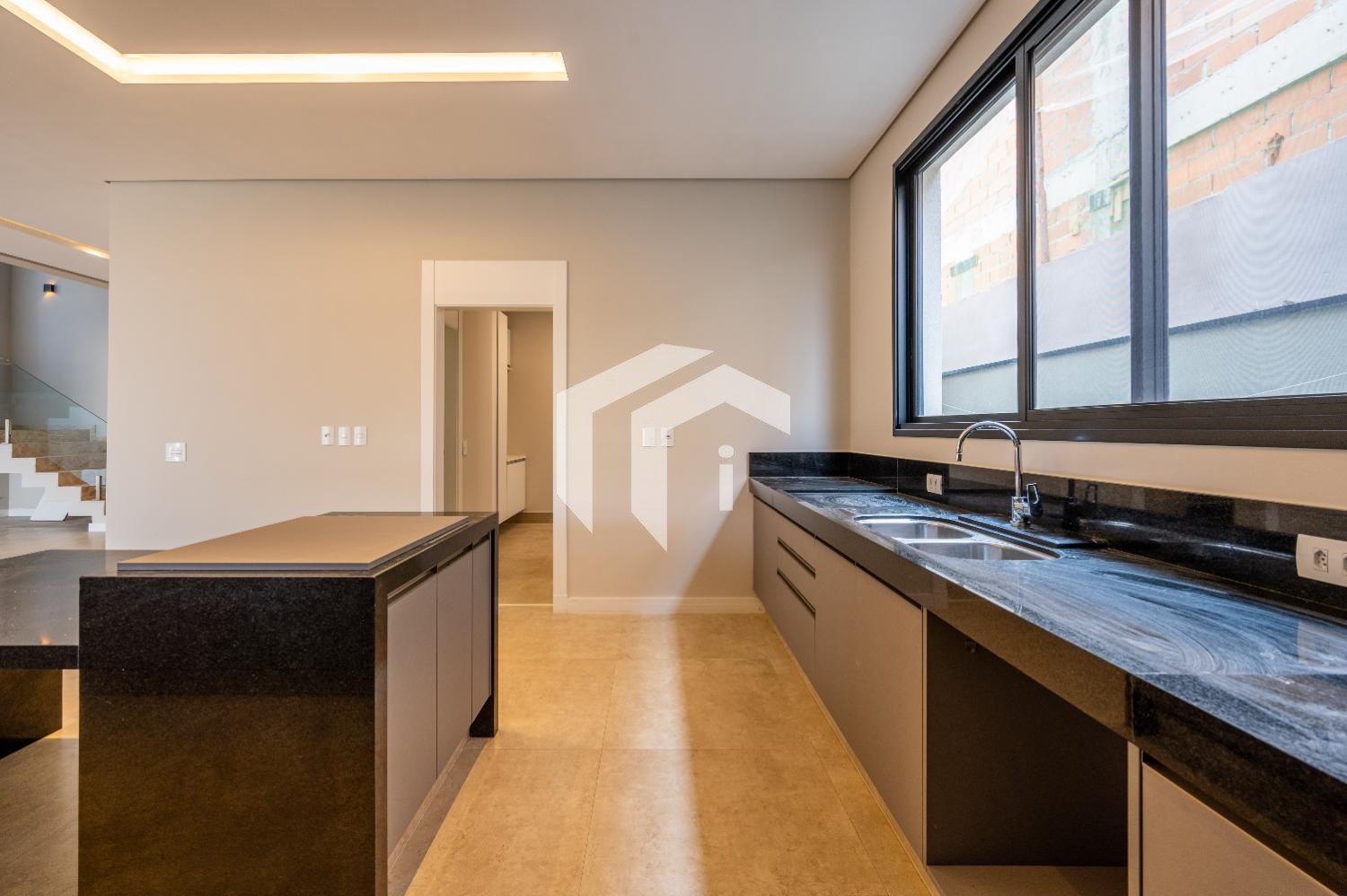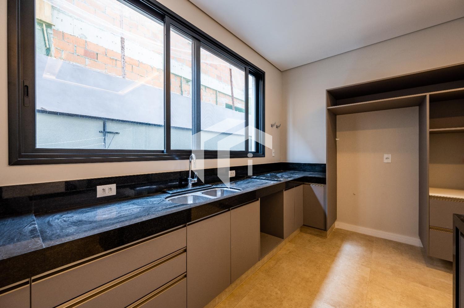 Cozinha americana completa em armários e torre quente, mais, área de serviço com wc.