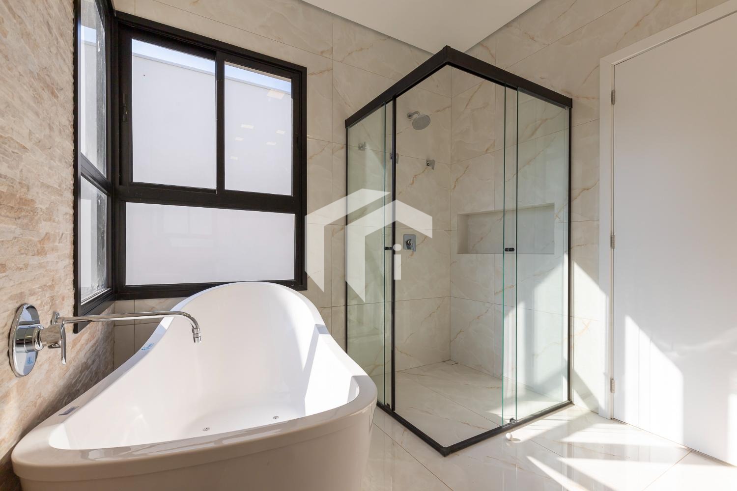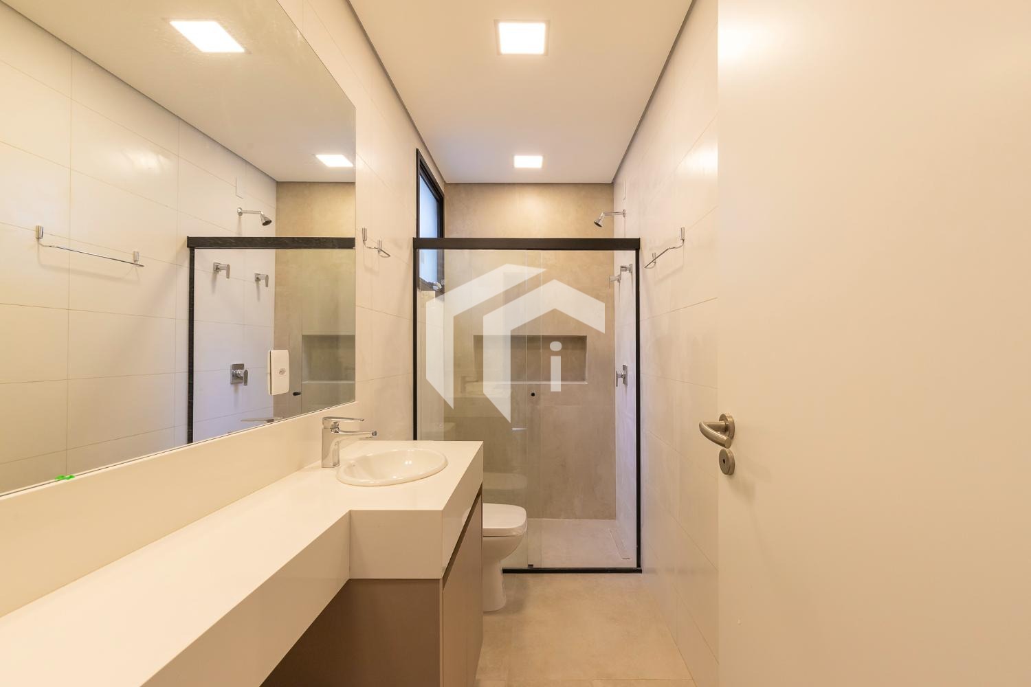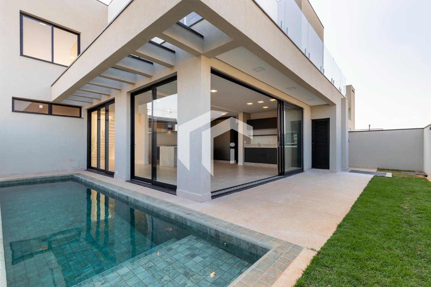 Sobrado novo na região do Alphaville, com 4 suítes sendo 1 master com closet e banheira e 1 térrea, todas com ar condicionado. Sala de jantar e estar com pé direito alto, cozinha com ilha toda integrada com espaço gourmet, churrasqueira, piscina aquecida, lavanderia, despensa, garagem para 4 carros sendo 2 cobertos, aquecimento solar e energia fotovoltaica. Condominio com segurança e lazer completo.