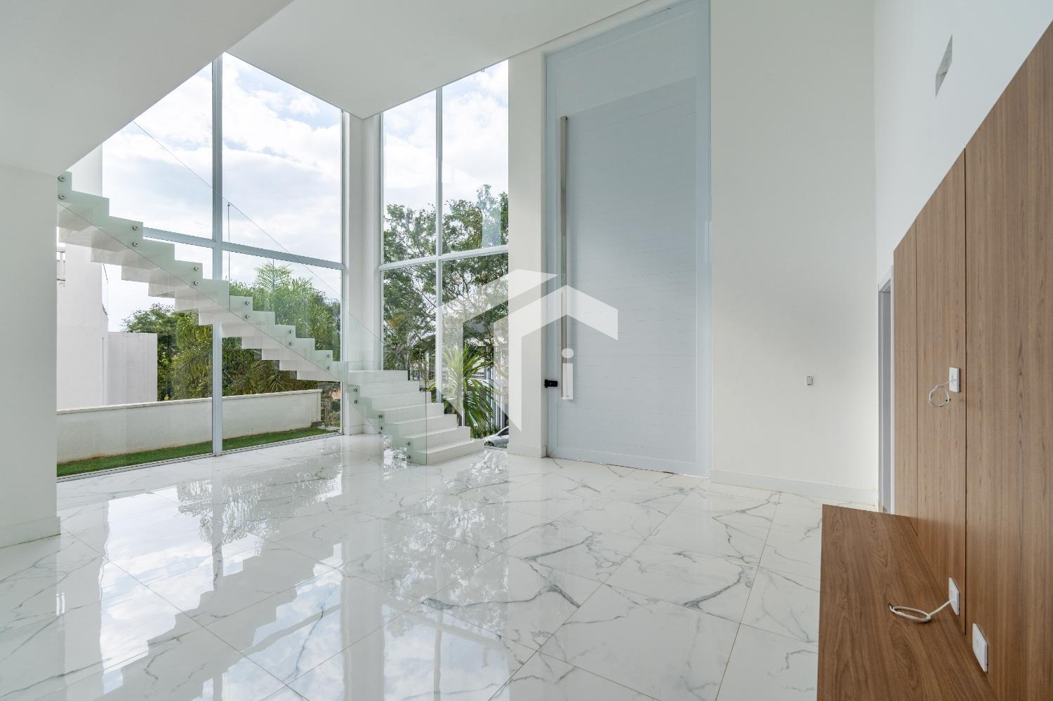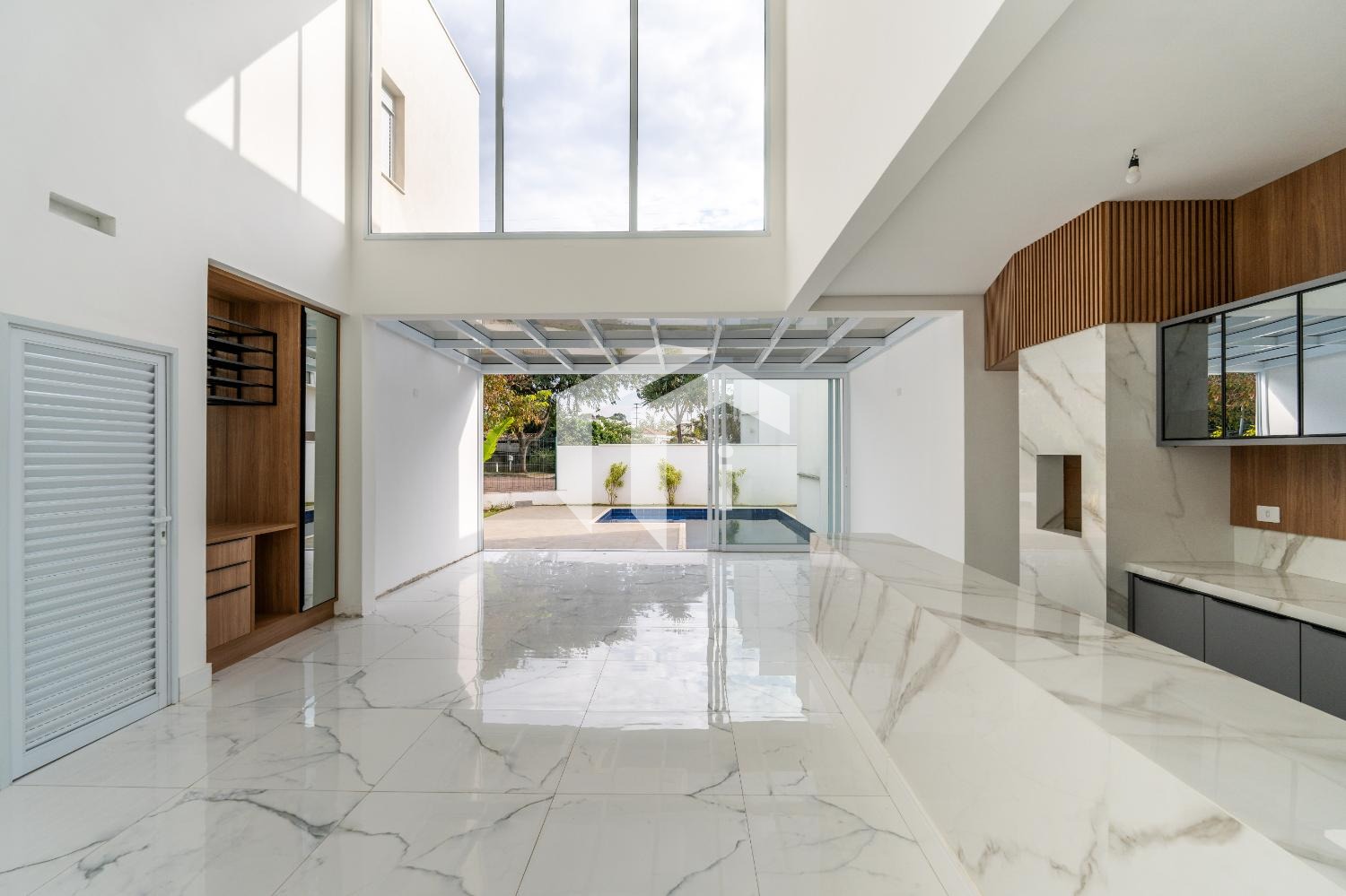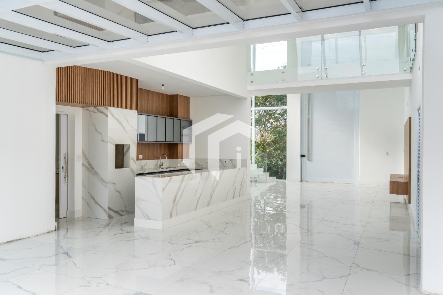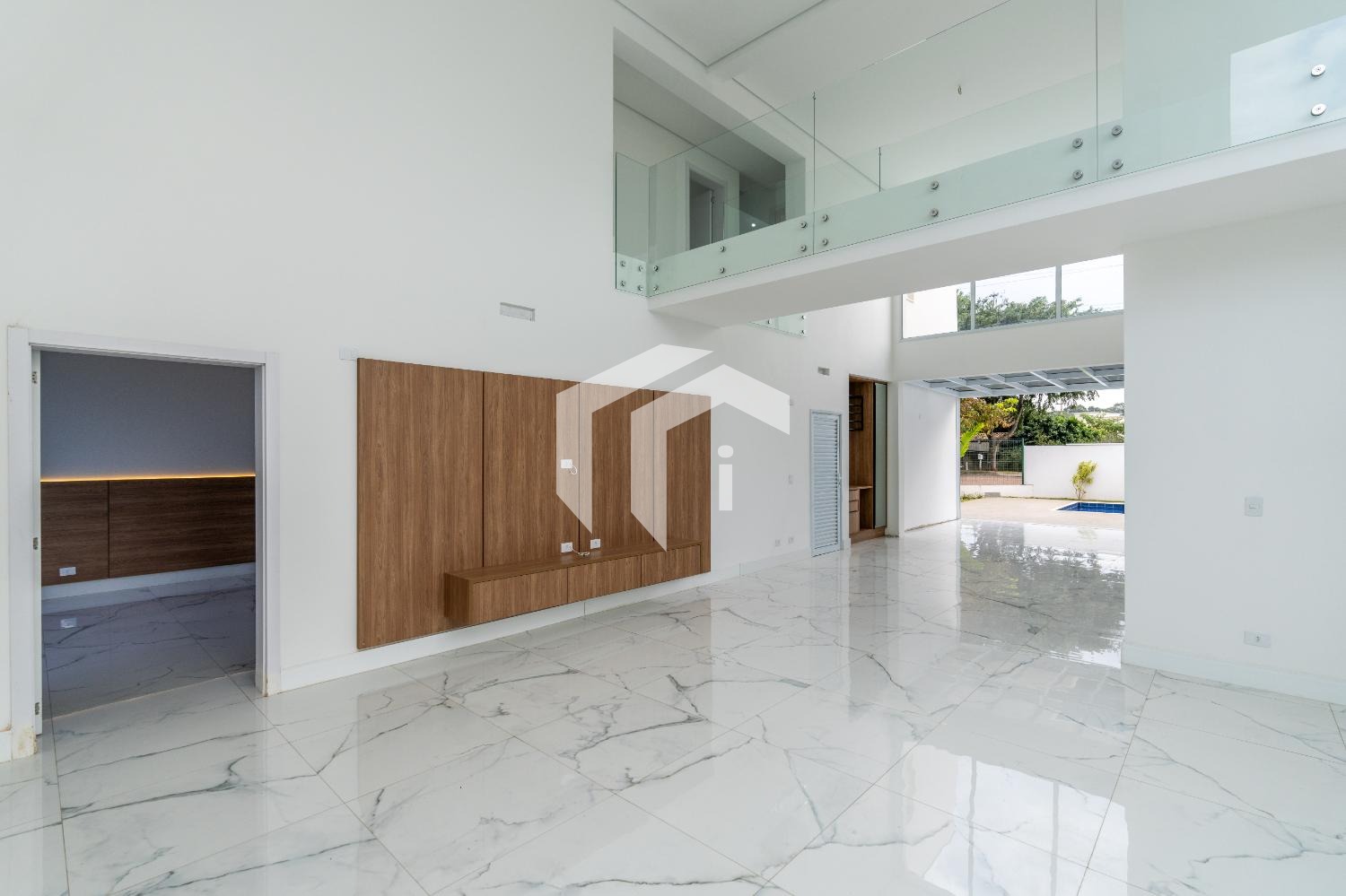 Living para 3 ambientes com pé direito duplo, um espaço ideal para receber amigos e familiares, combinando sofisticação e aconchego.