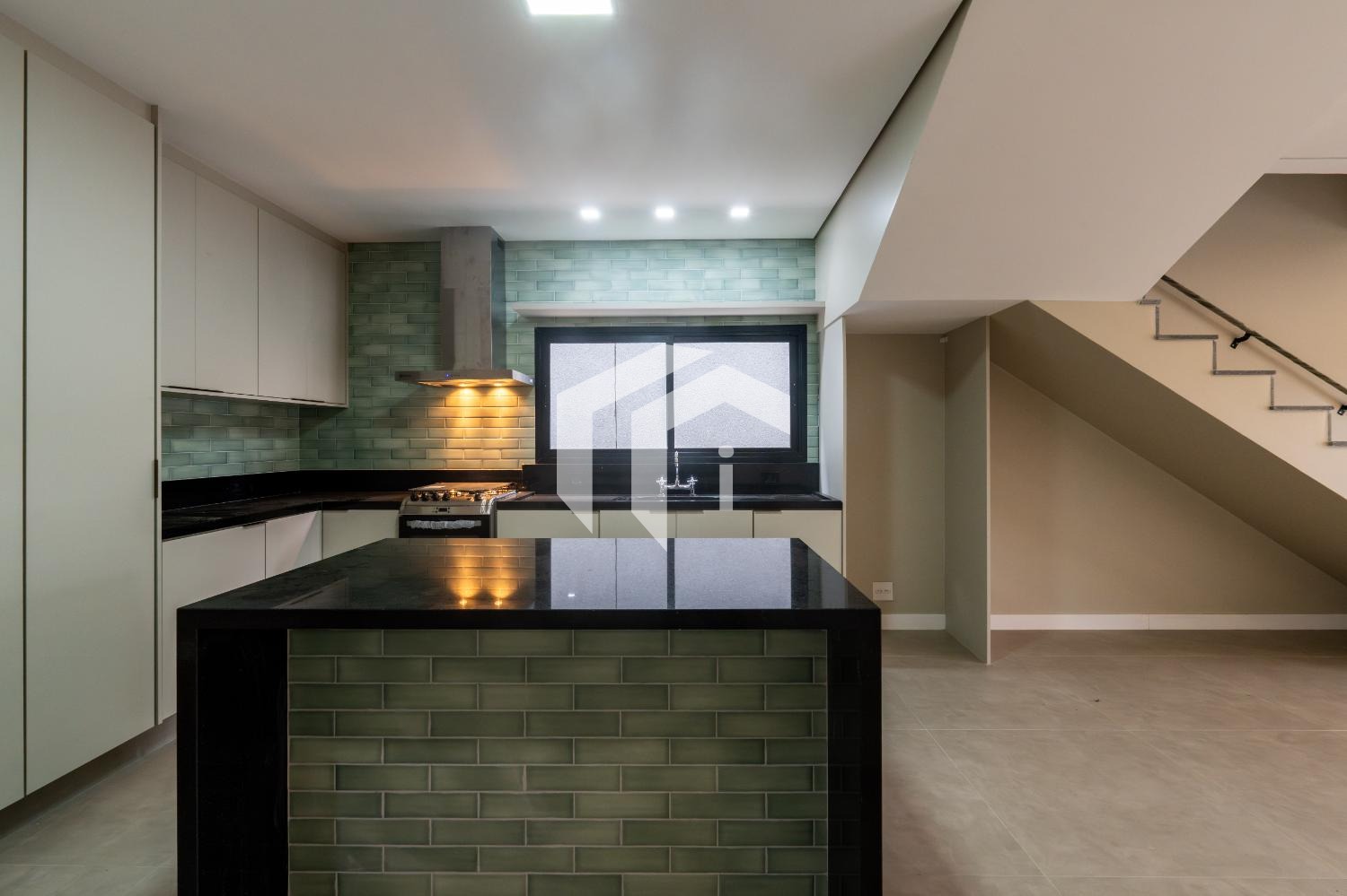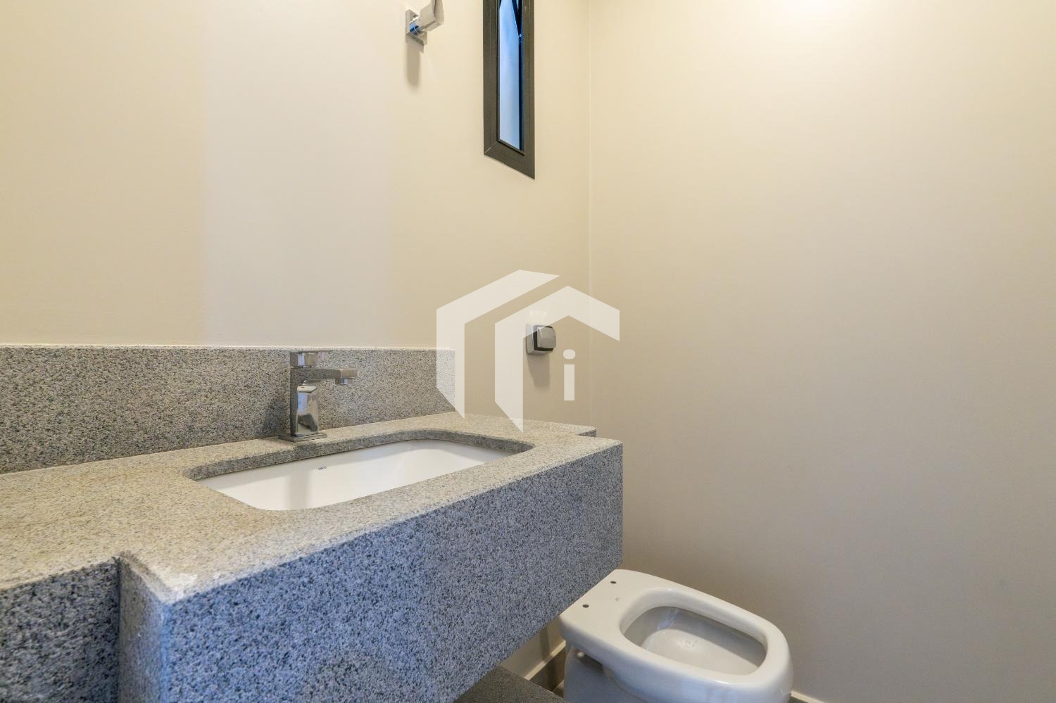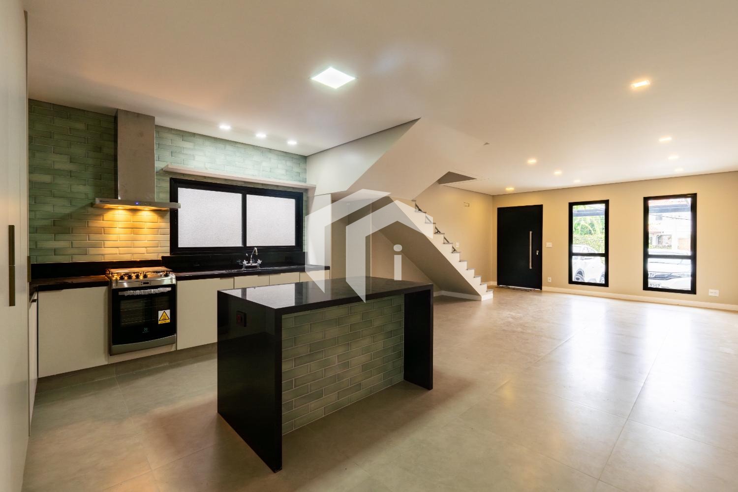 Ampa sala para em 3 distintos ambientes, com lavabo, e conectada à uma convidativa cozinha america completa com armários.