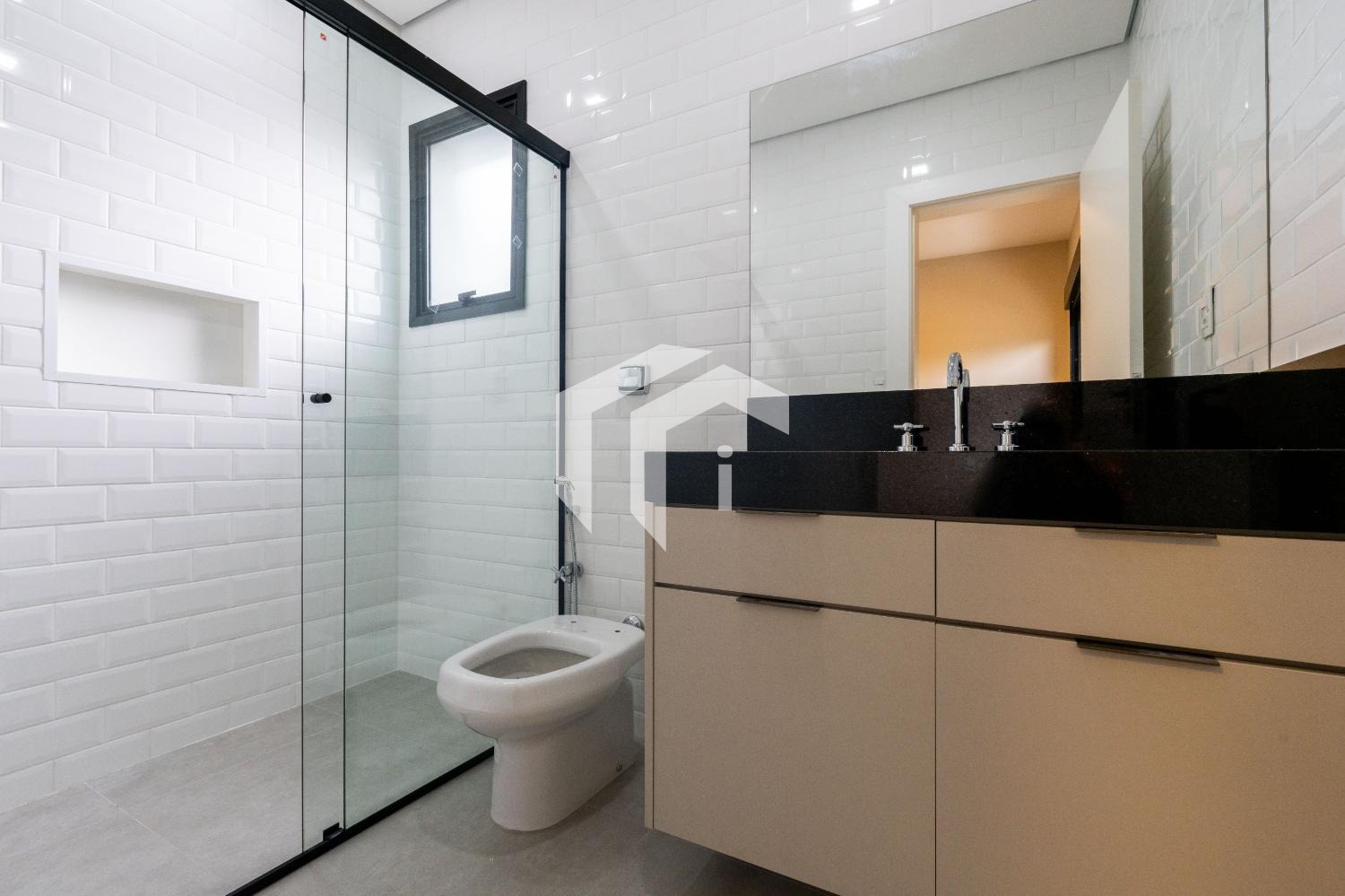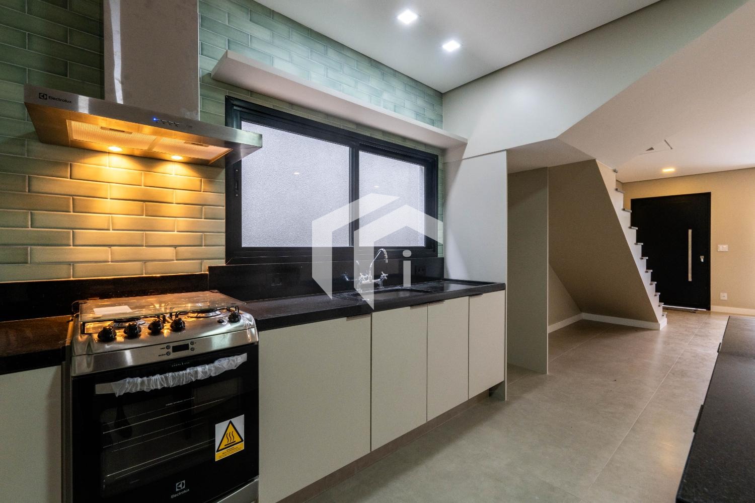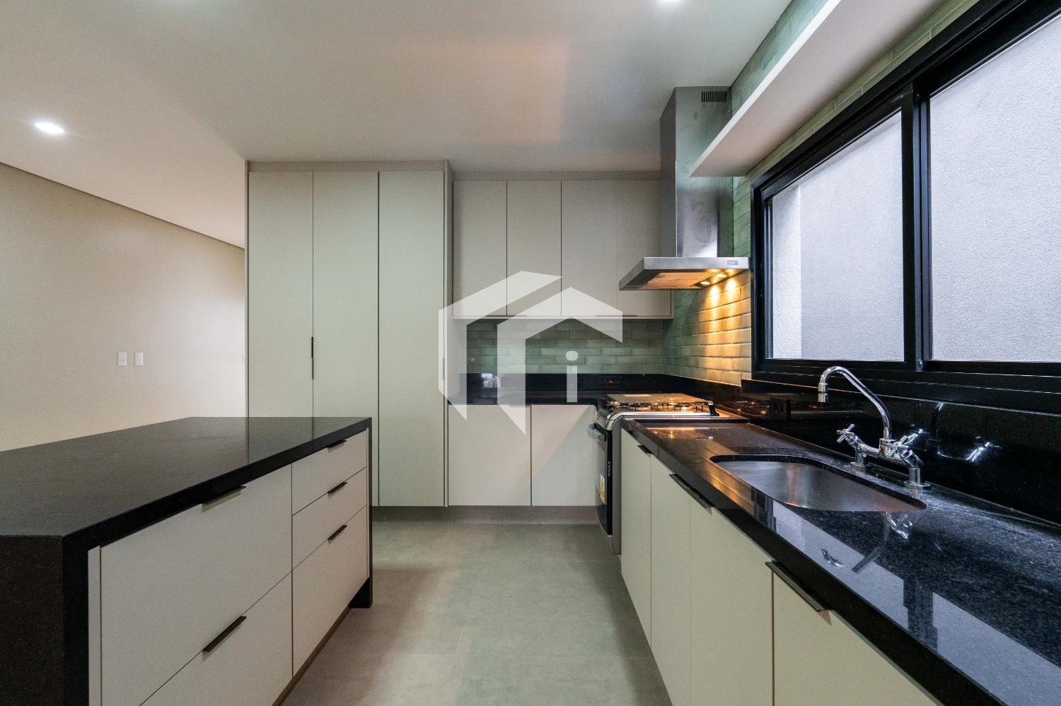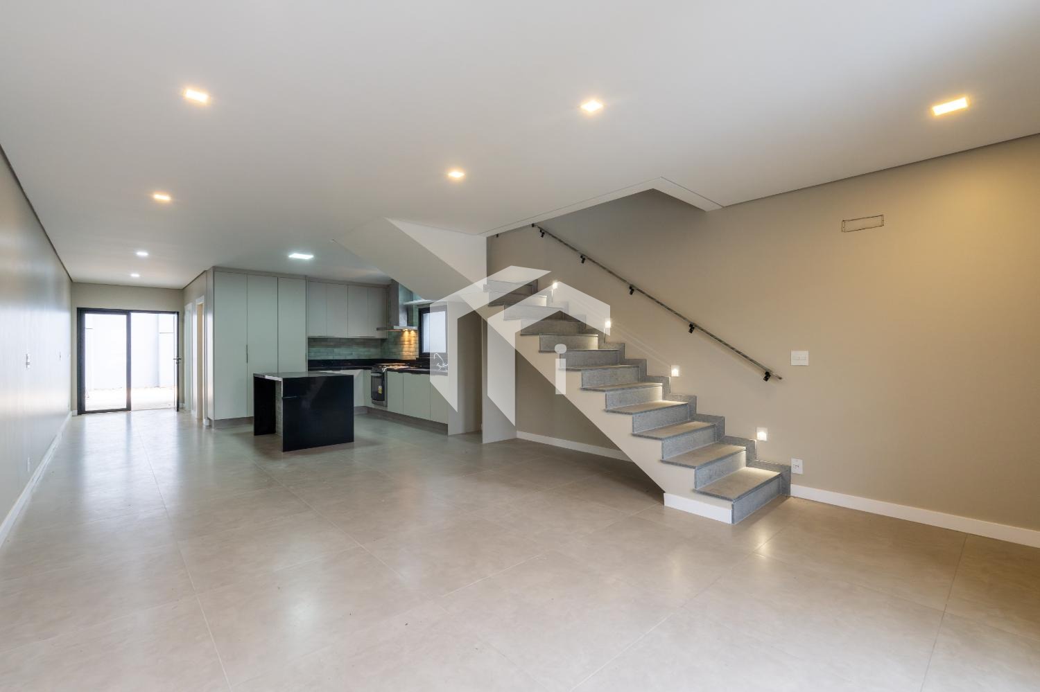 Ampa sala para em 3 distintos ambientes, com lavabo, e conectada à uma convidativa cozinha america completa com armários.