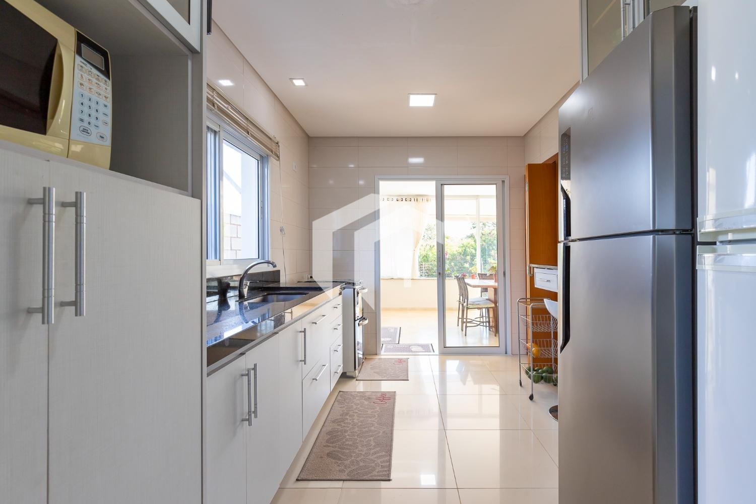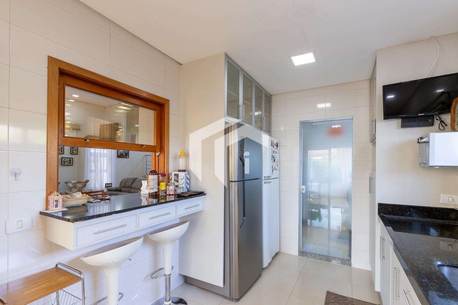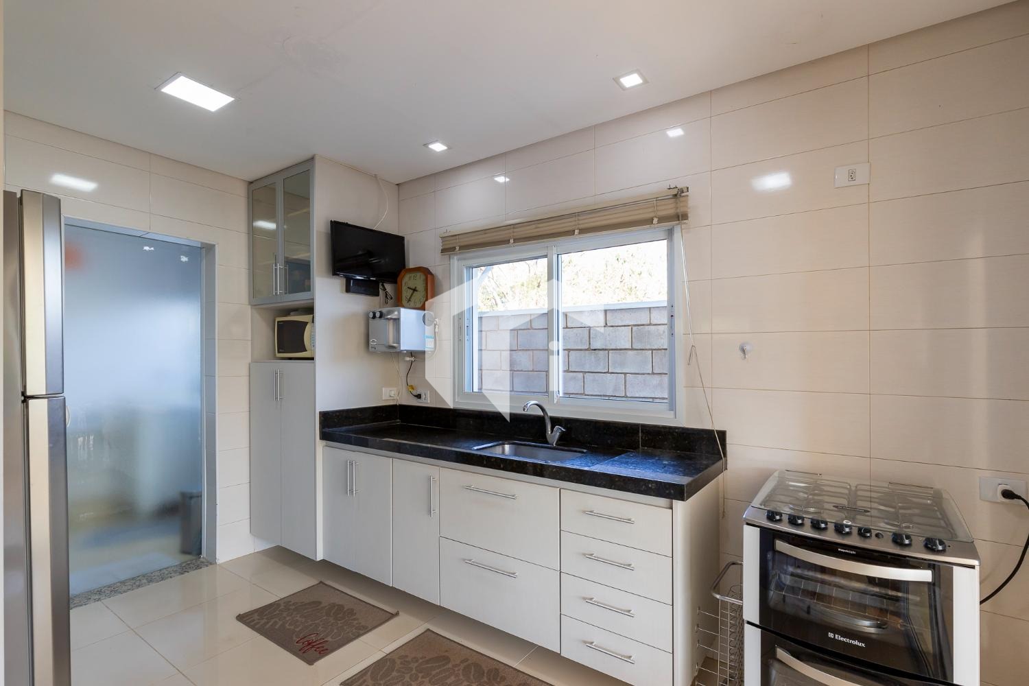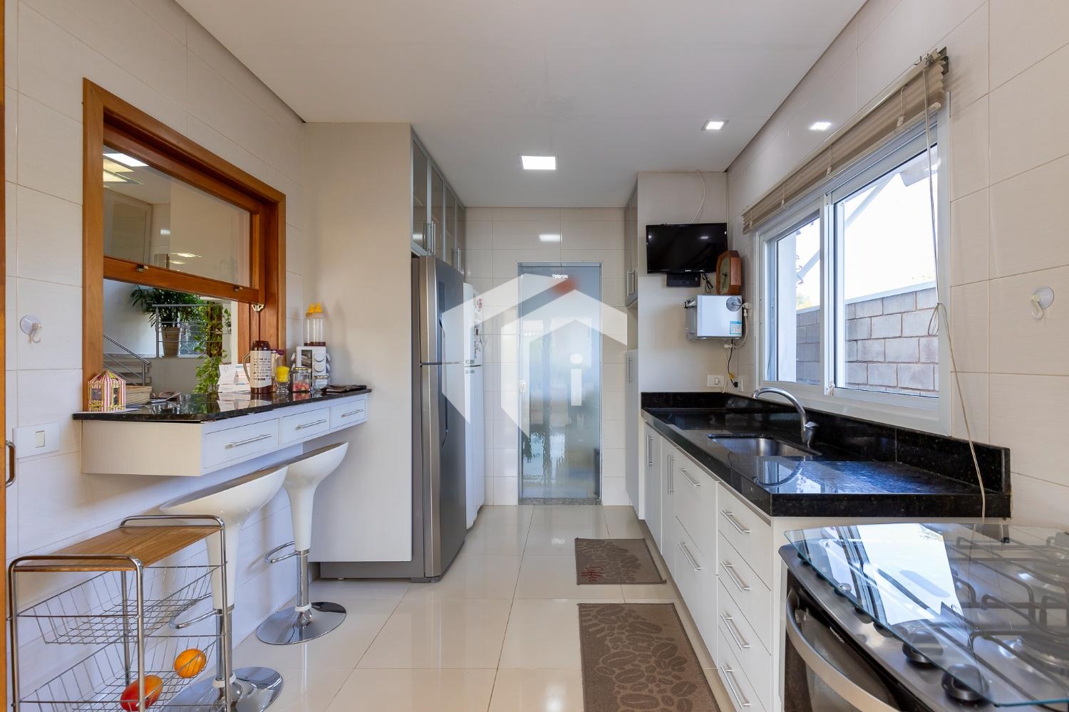 A cozinha, completamente planejada, é funcional e moderna, contando com uma despensa prática e uma área de serviços bem equipada.