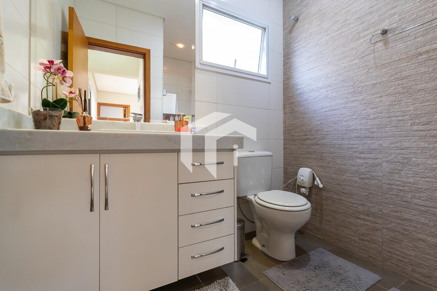 O sobrado dispõe de um escritório bem posicionado e um lavabo, atendendo tanto às necessidades do dia a dia quanto às visitas.