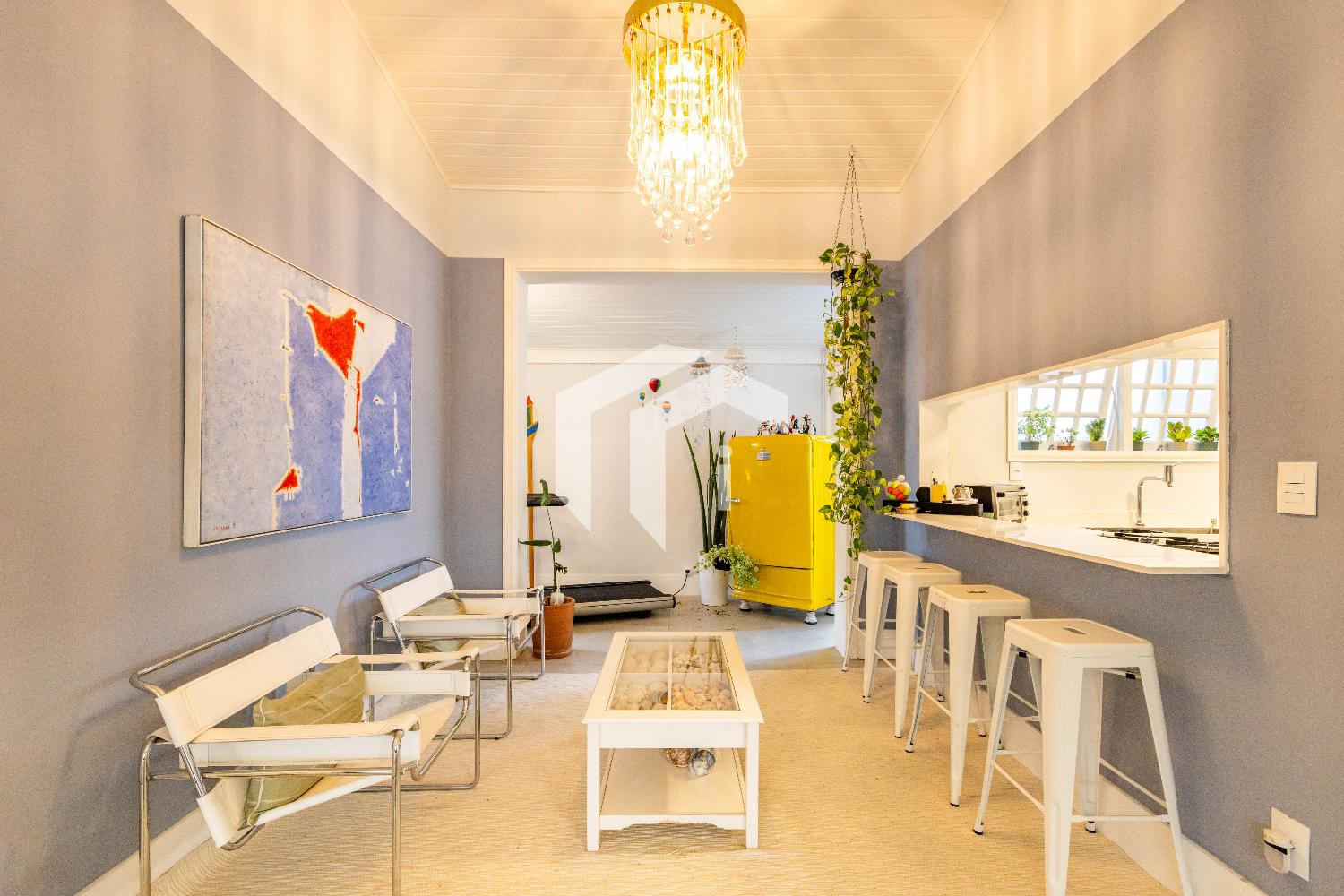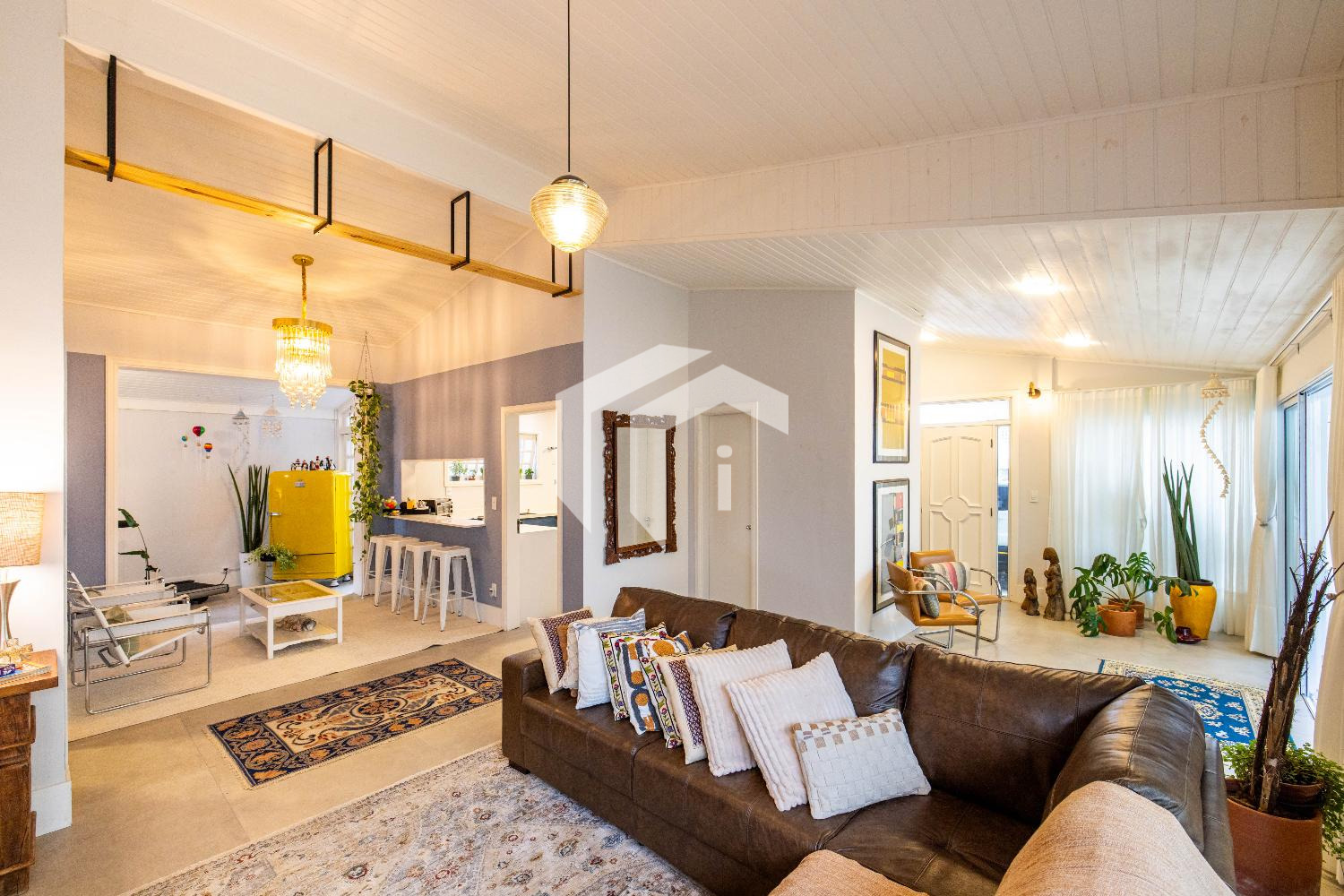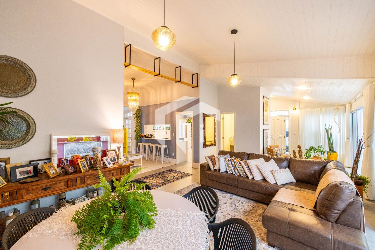 Confortável living para 3 ambientes com pé direito elevado, mais, lavabo.
