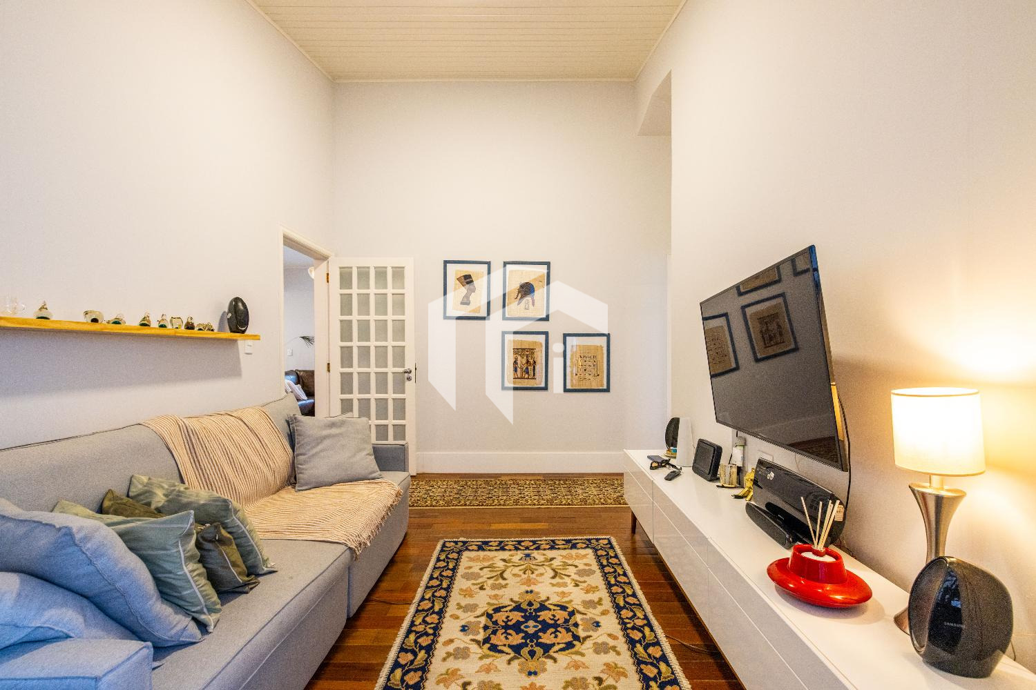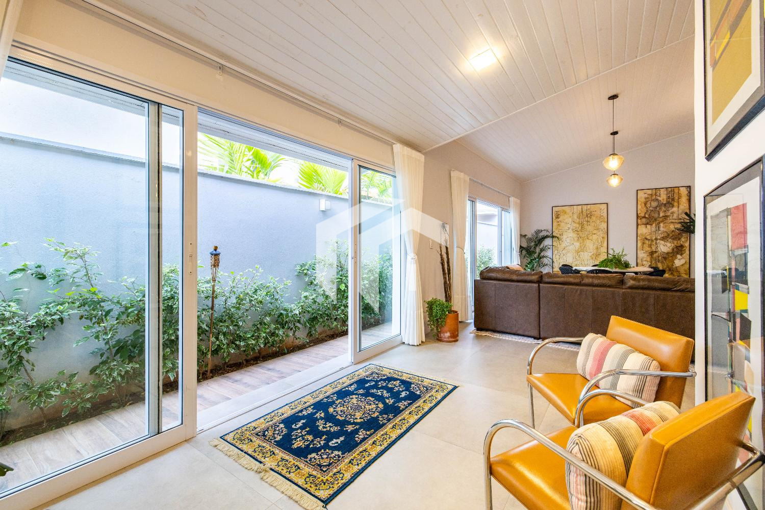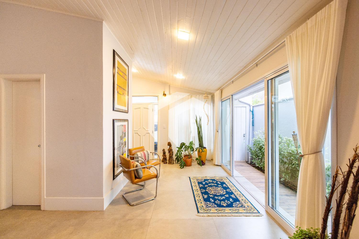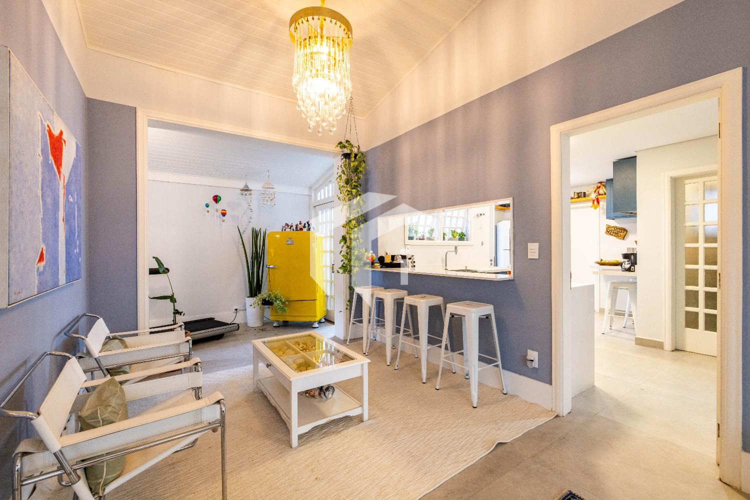 Confortável living para 3 ambientes com pé direito elevado, mais, lavabo.
