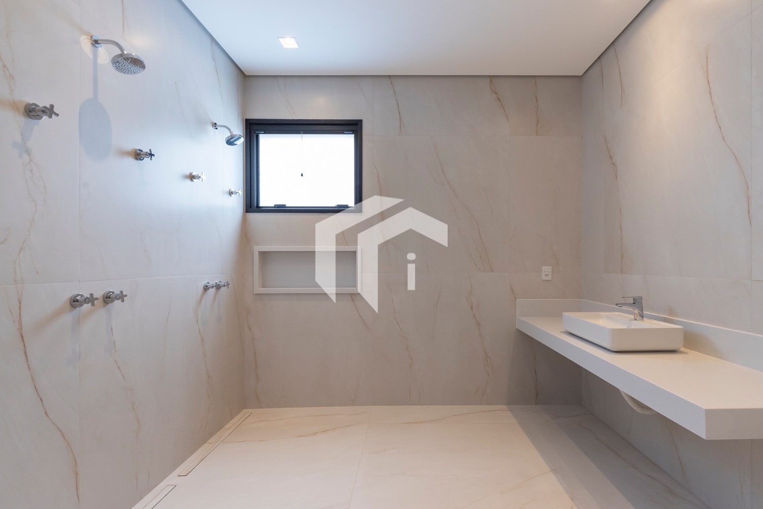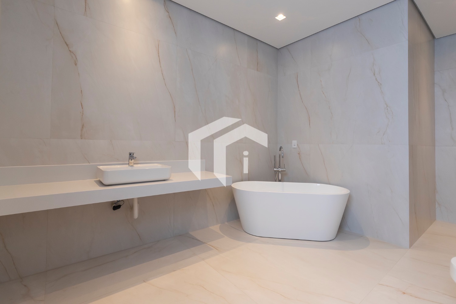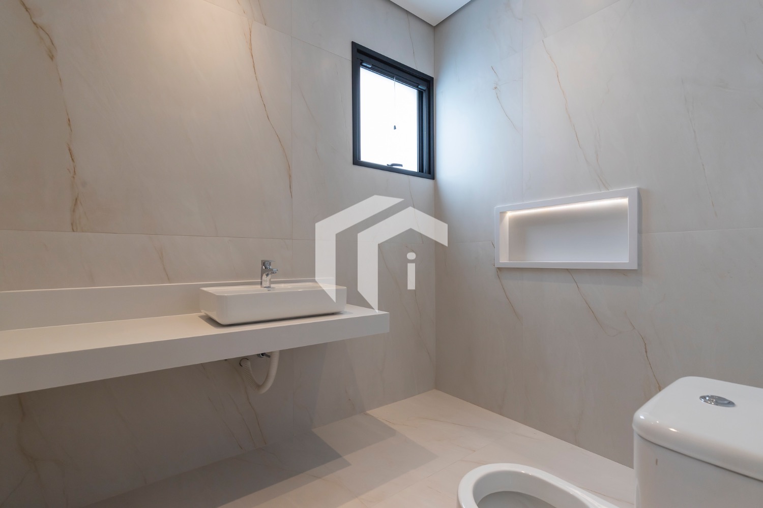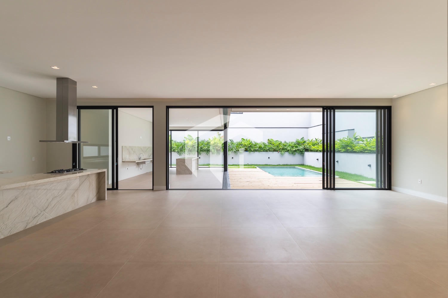 Sobrado de alto padrão com acabamento diferenciado, planta integrada com ambientes amplos. Piso superior com copa de apoio e 4 amplas suítes, todas elas com closet, master com closet e banheiro Sr. e Sra. Piso. No inferior possui escritório (ou suíte térrea), home theater, lavabo, living para 3 ambientes com cozinha integrada, despensa e lavanderia. Varanda gourmet com banheiro de apoio e jardim com piscina. 3 vagas de garagem cobertas.