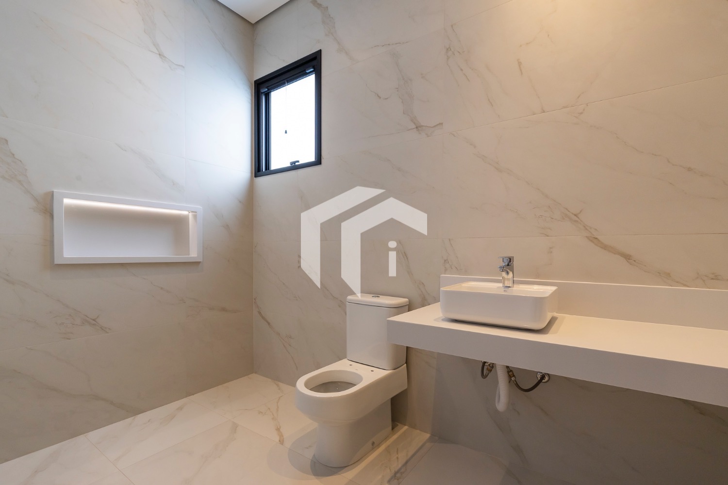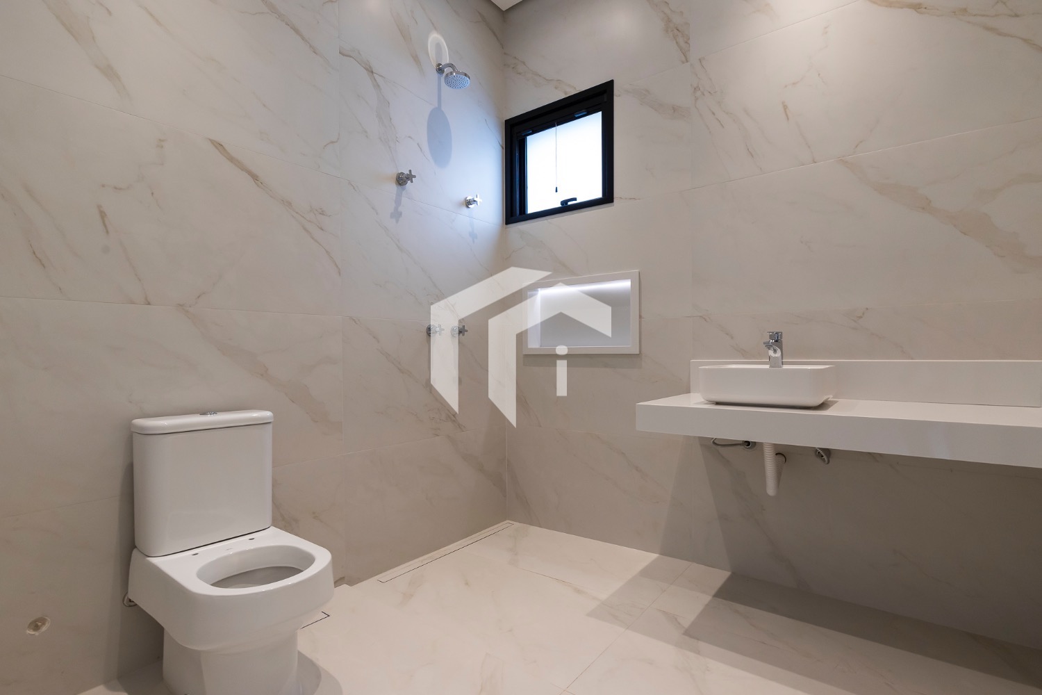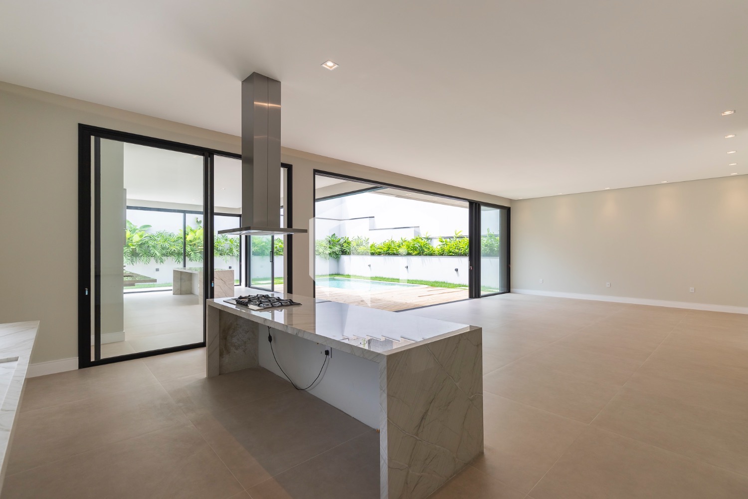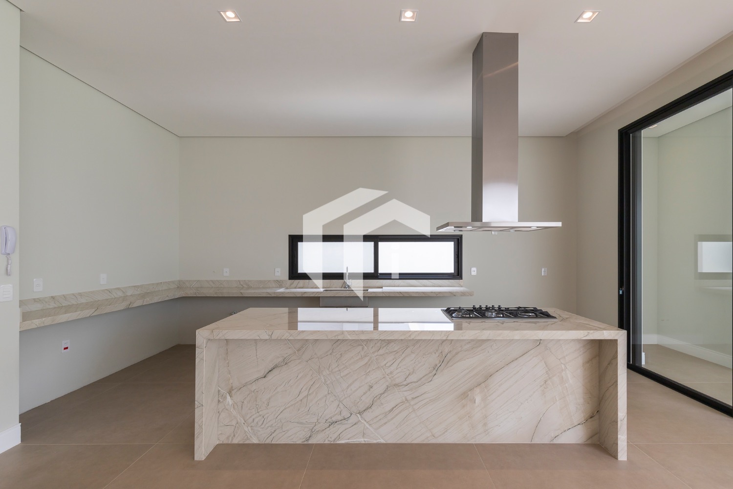 Sobrado de alto padrão com acabamento diferenciado, planta integrada com ambientes amplos. Piso superior com copa de apoio e 4 amplas suítes, todas elas com closet, master com closet e banheiro Sr. e Sra. Piso. No inferior possui escritório (ou suíte térrea), home theater, lavabo, living para 3 ambientes com cozinha integrada, despensa e lavanderia. Varanda gourmet com banheiro de apoio e jardim com piscina. 3 vagas de garagem cobertas.
