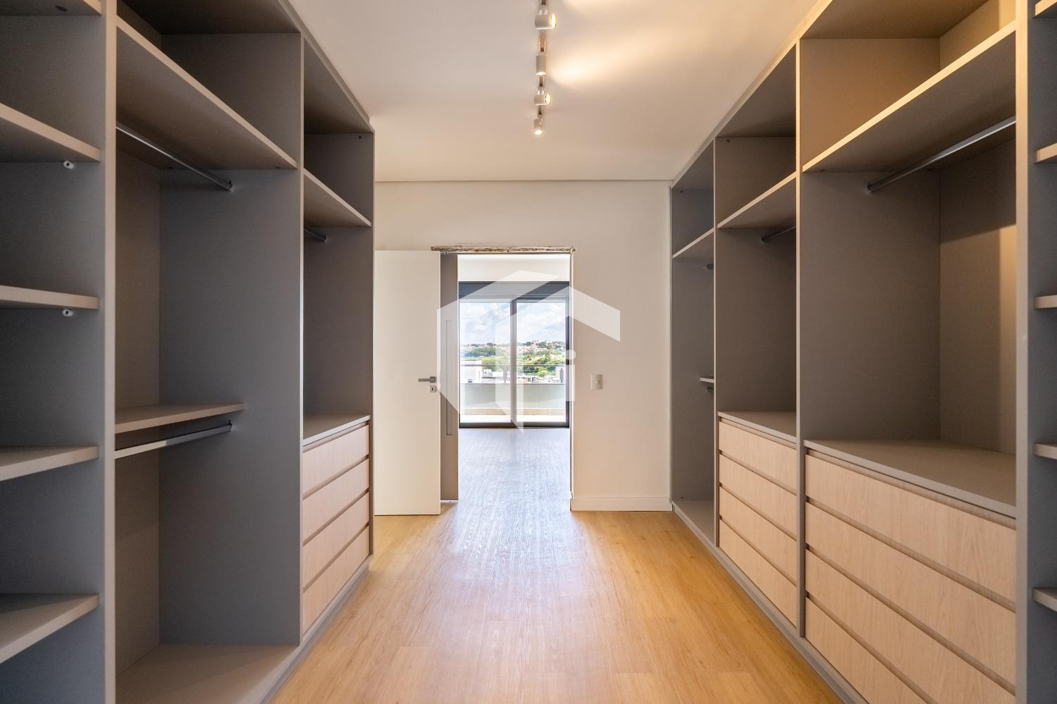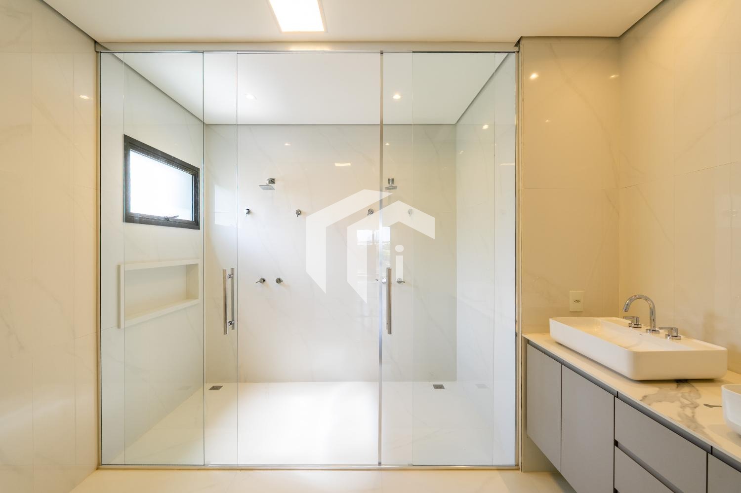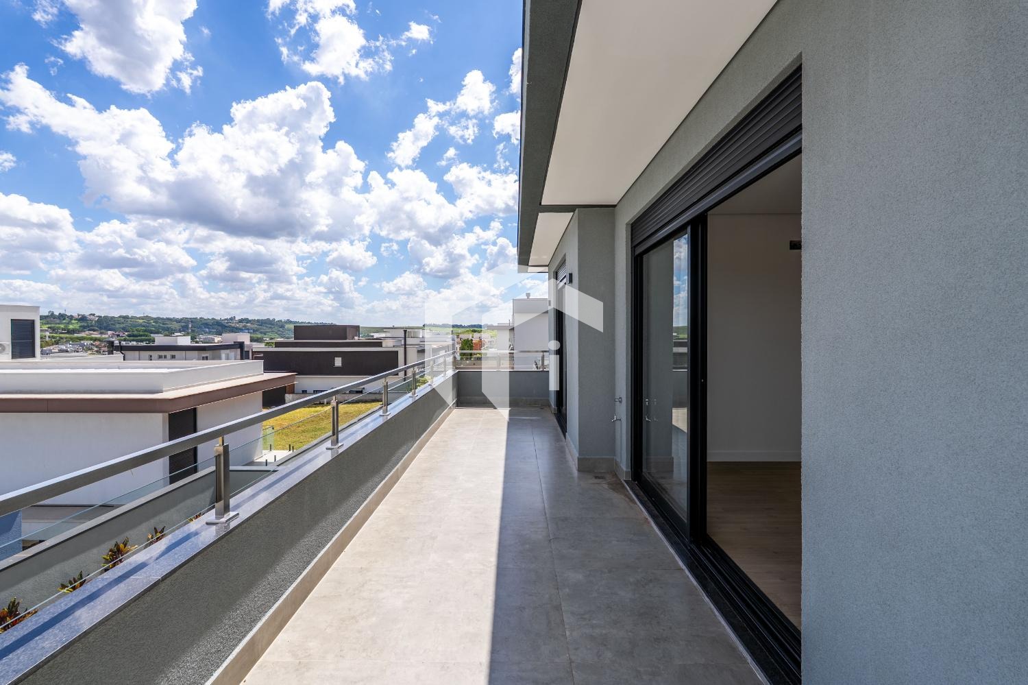 No piso superior, encontram-se três suítes, todas com varanda privativa. Uma delas destaca-se por um amplo closet e um banheiro equipado com cuba dupla e chuveiros independentes, oferecendo um toque de sofisticação.