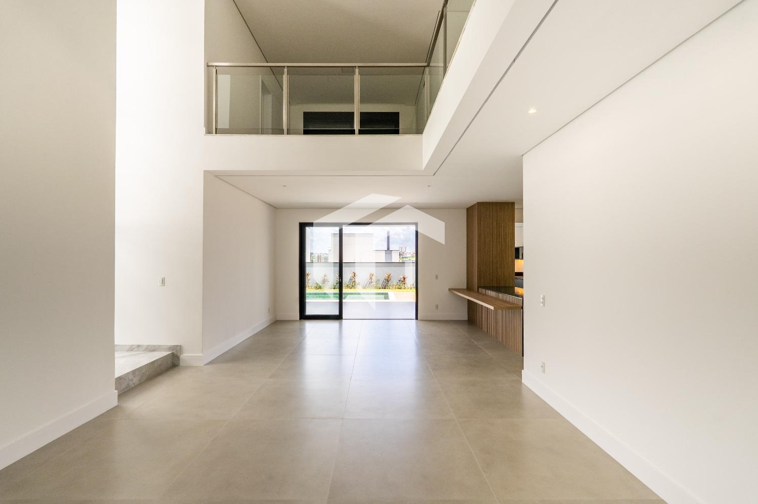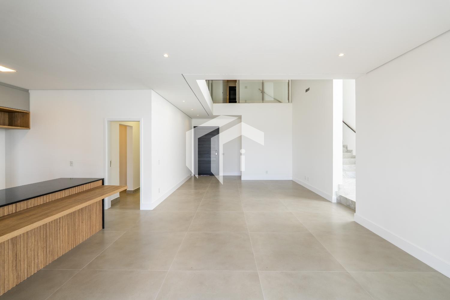 Ao entrar na casa, você é recebido por um acolhedor living com pé-direito duplo, perfeito para criar uma sensação de amplitude e elegância.