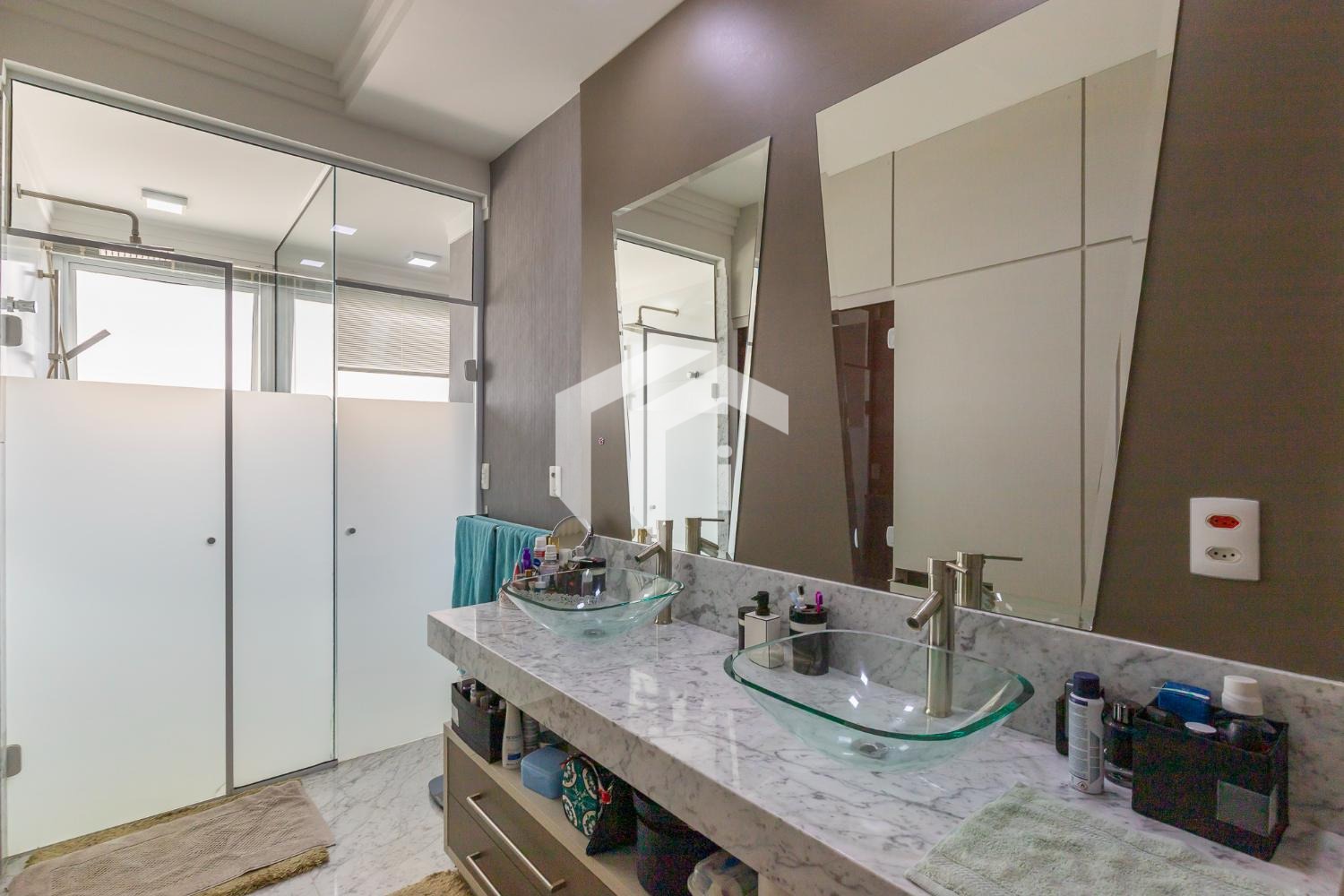 Os detalhes de acabamento, como o mármore italiano em placas de 1 x 1 em toda a casa, e os armários da Kitchens, mostram um cuidado especial com a estética e a funcionalidade.