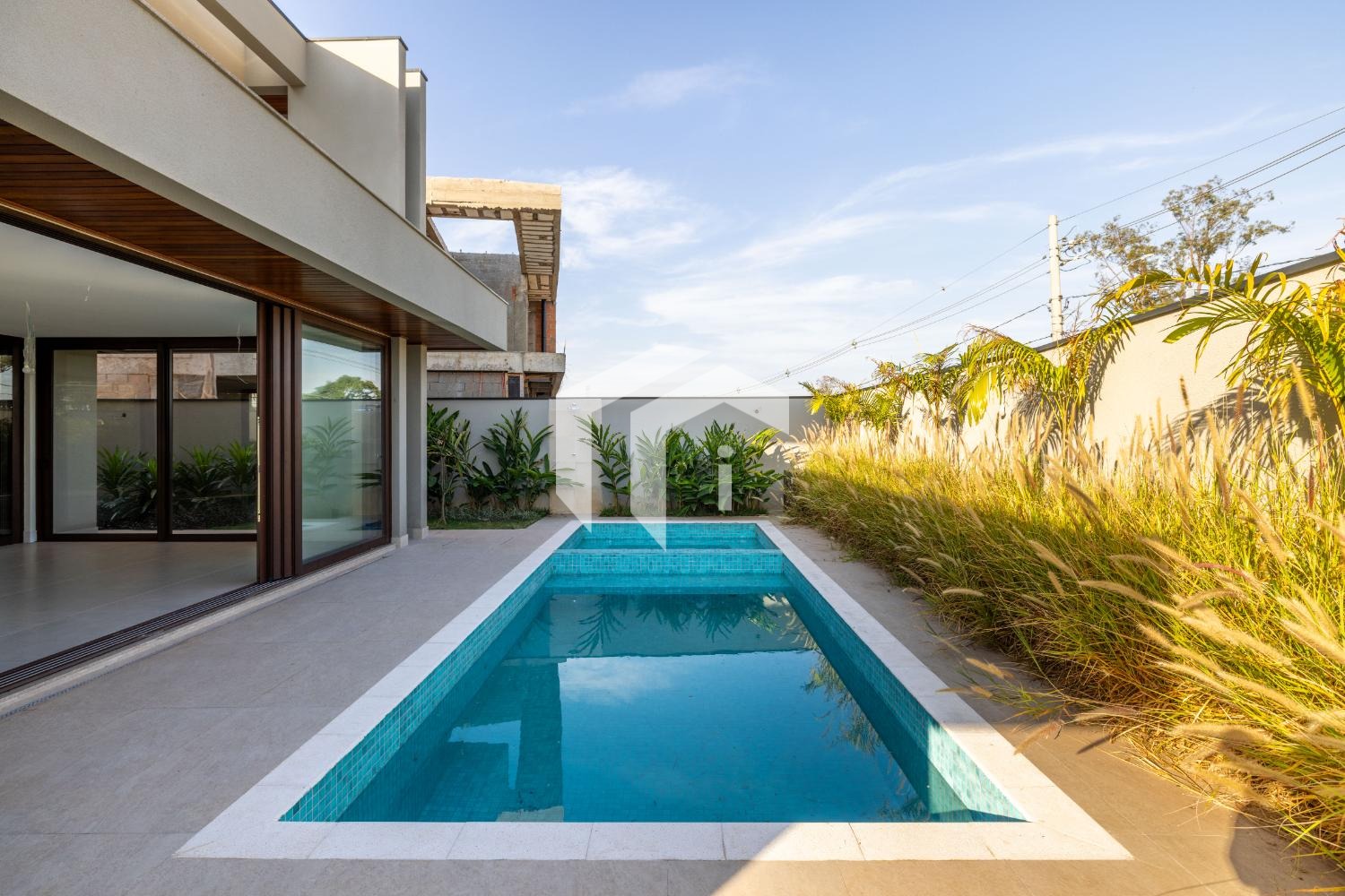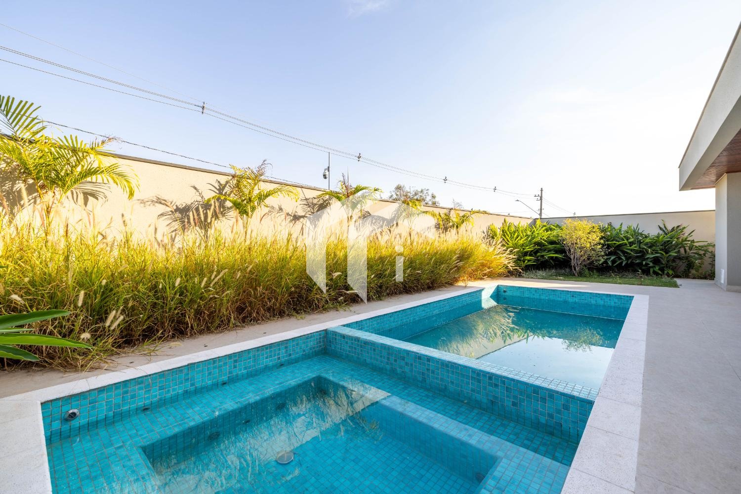 Piscina privativa com paisagismo envolvente, criando um ambiente de tranquilidade e sofisticação;