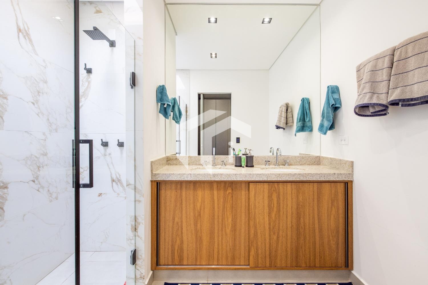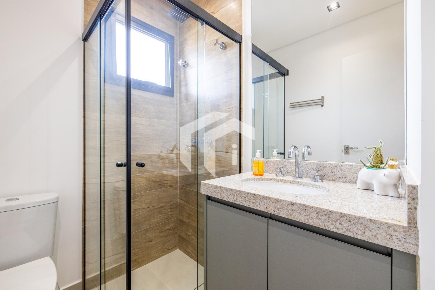 No piso superior, são 2 dormitórios, sendo 1 suíte com closet, sacada, pia e chuveiro duplos.