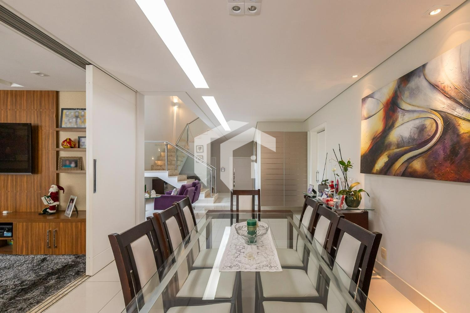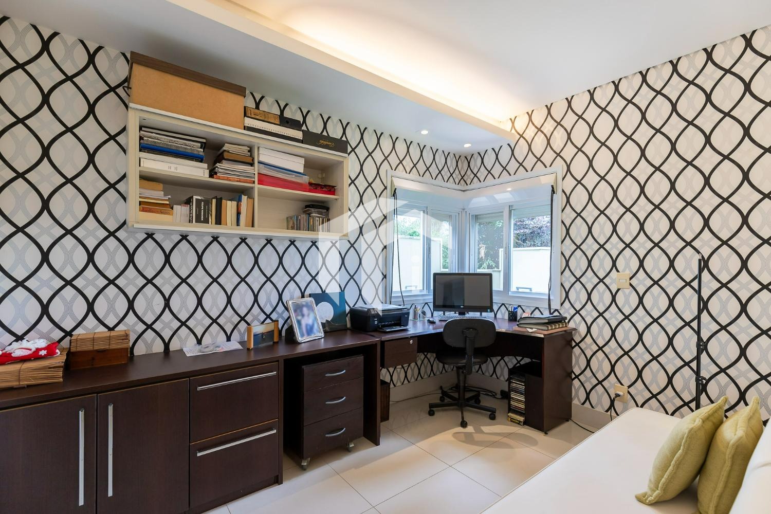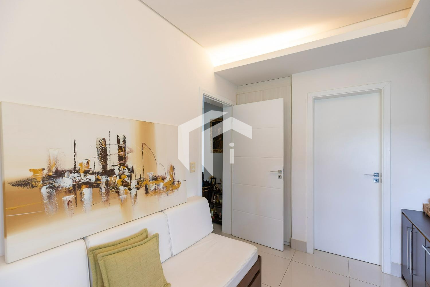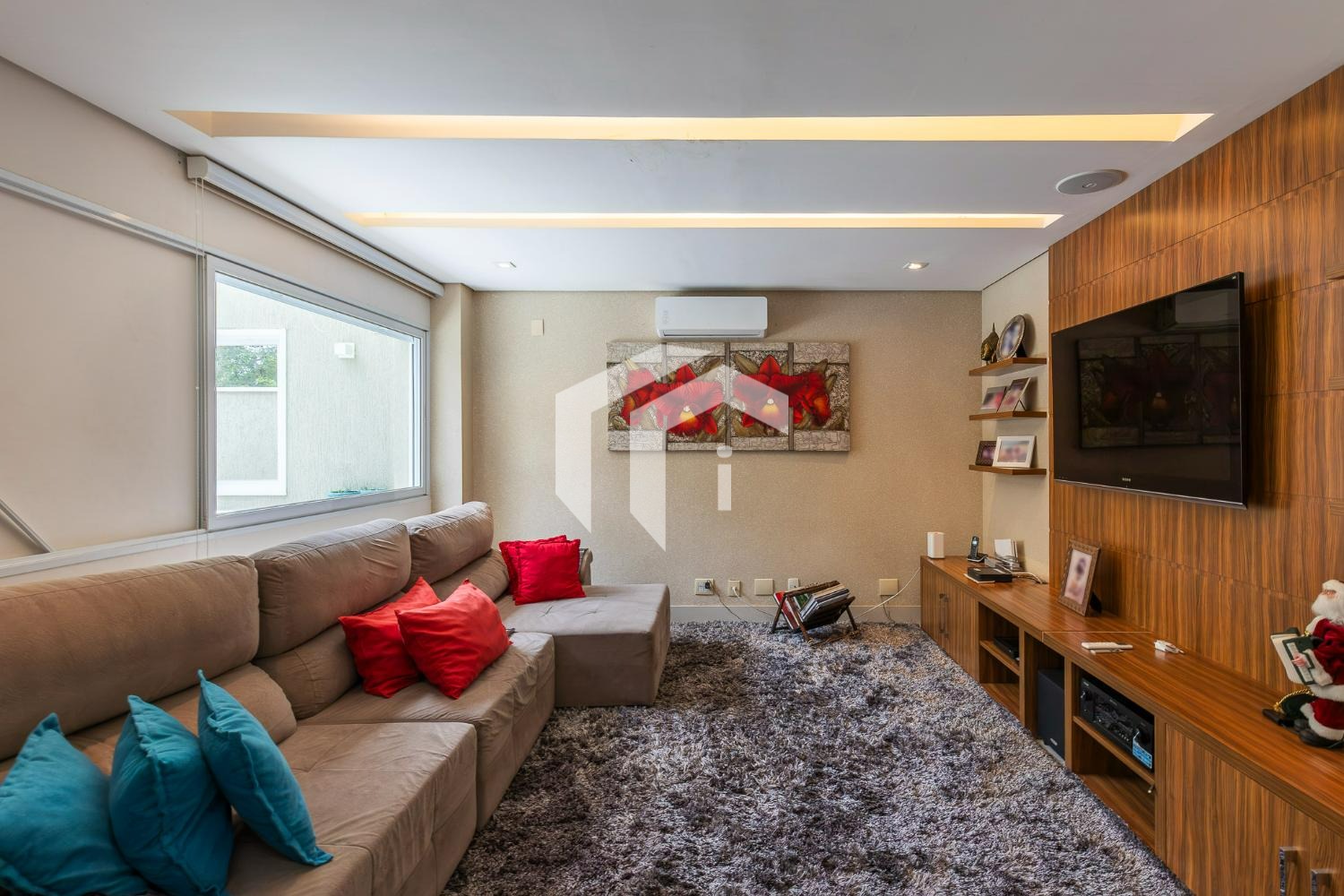 Living climatizado para 3 ambientes com lavabo, home theater e o conforto dde uma suítes completa no piso térreo, ora, utilizadda como home office,
