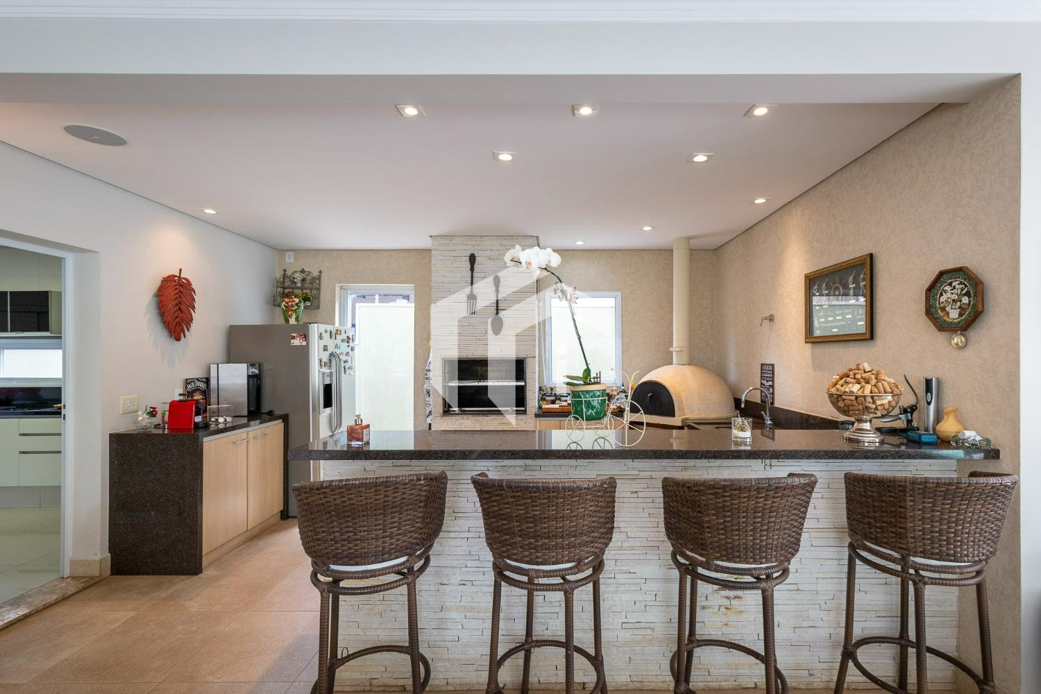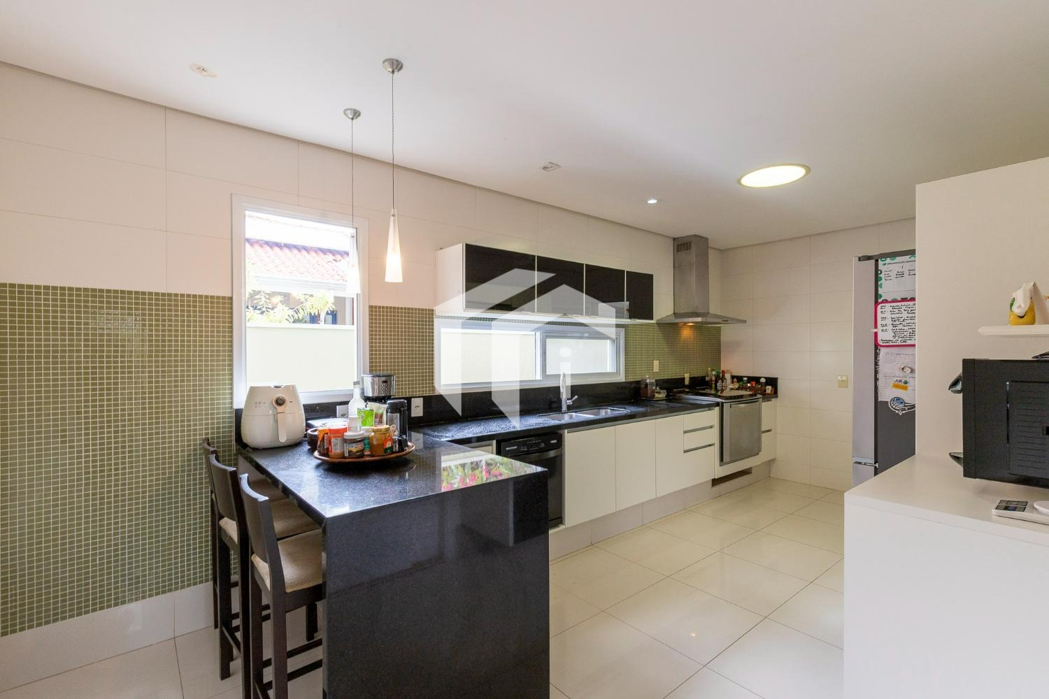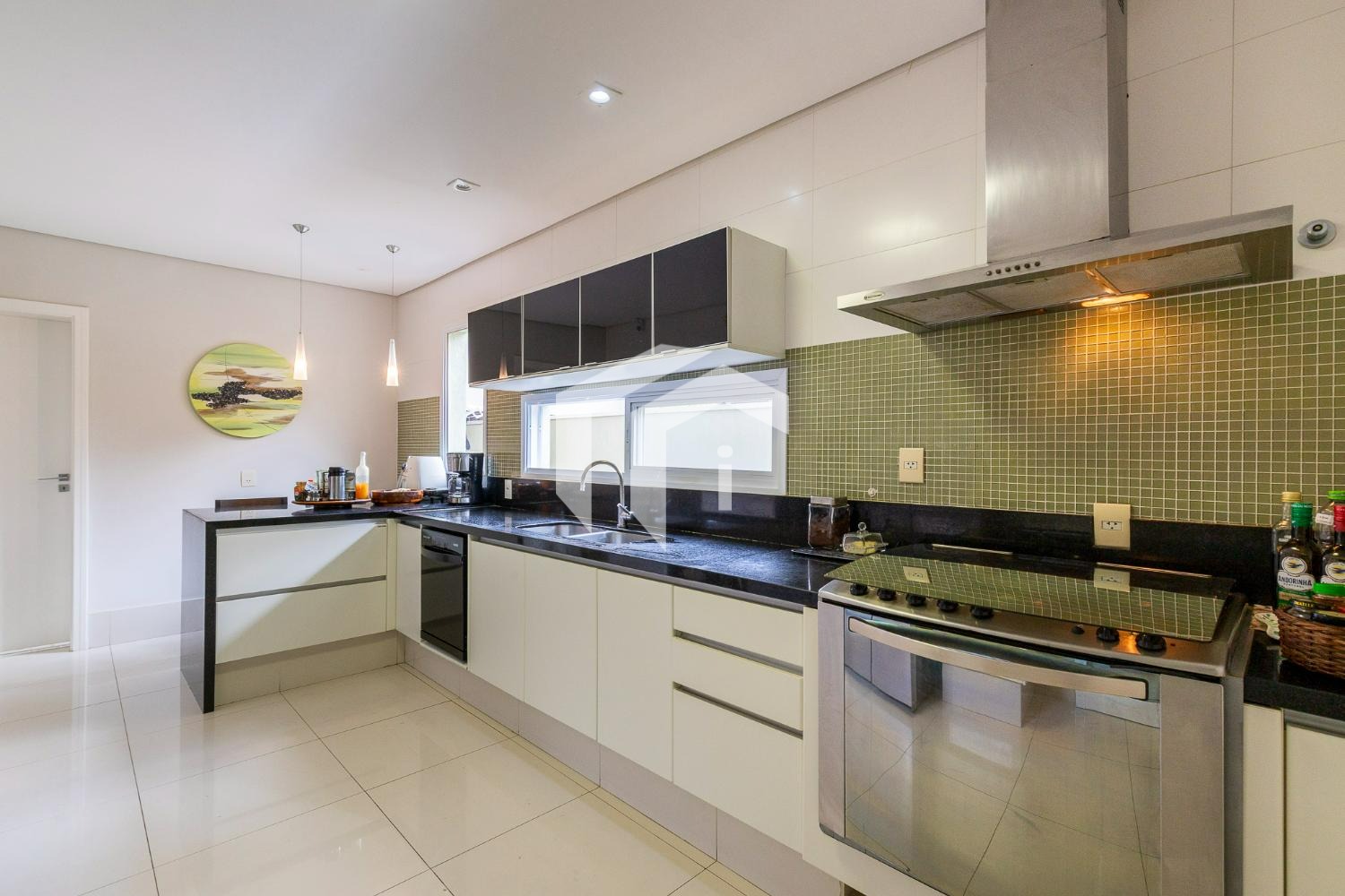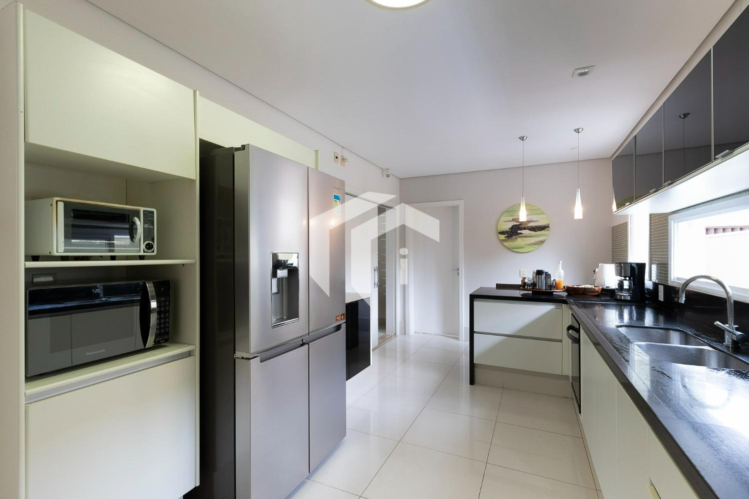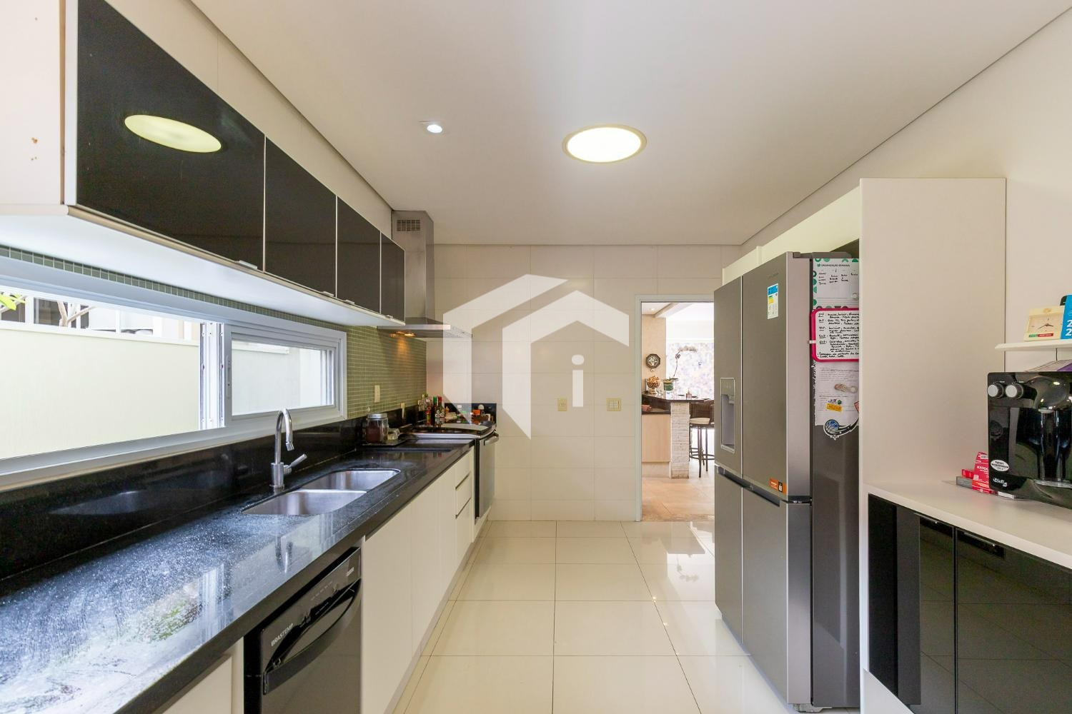 Ampla cozinha planejada com bancadas de apoio e despensa, mais, dependência completa de serviço.