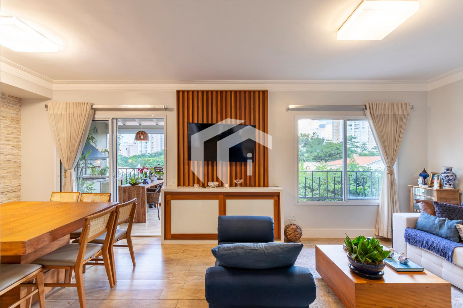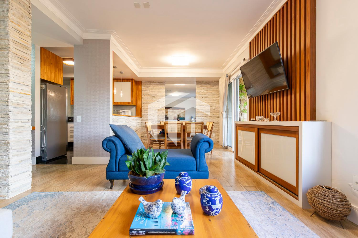 Living para 2 confortáveis ambientes e integrados à convidativa varanda gourmet, mais, o conforto do lavabo.