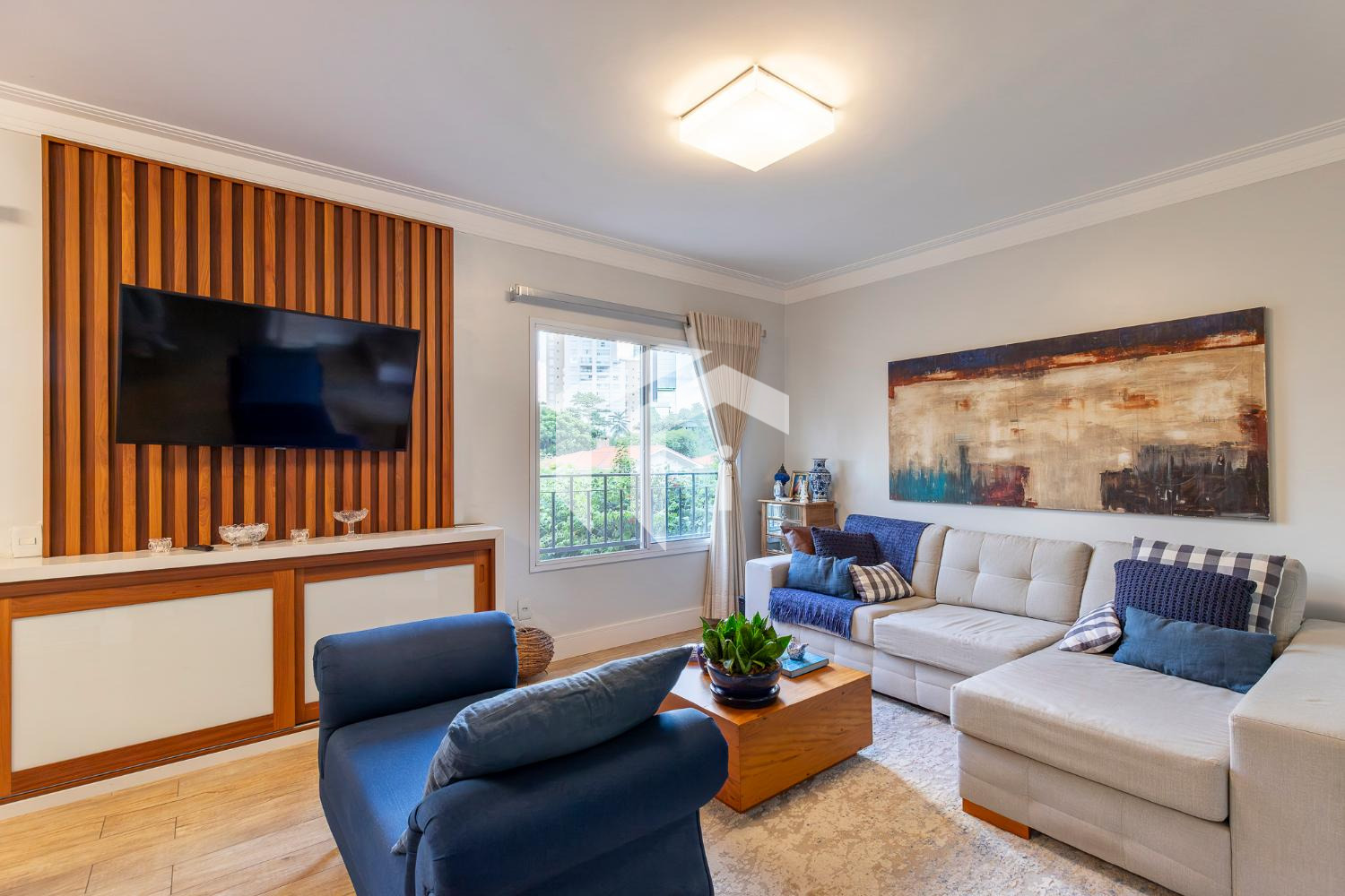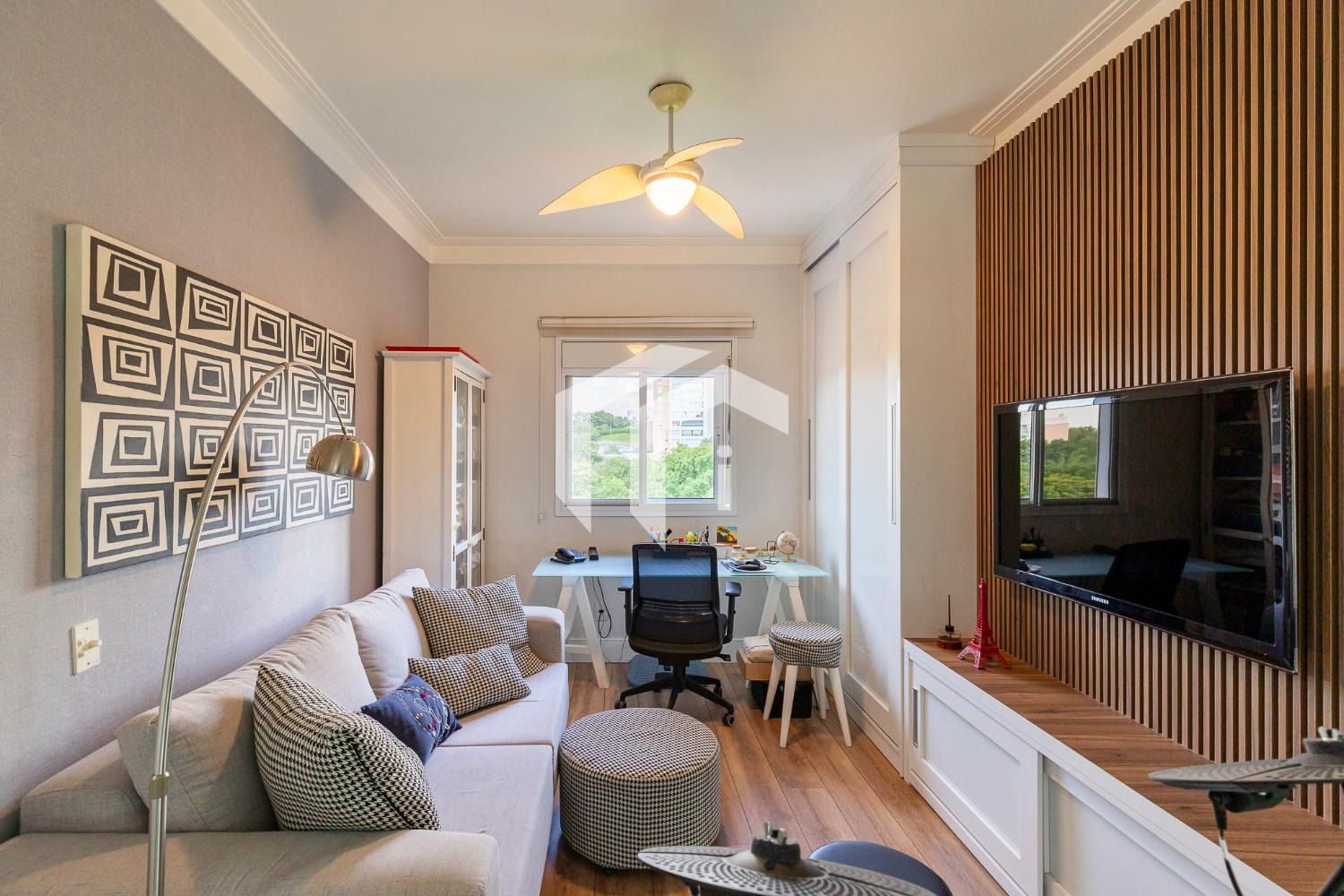 Sala íntima de tv/office de apoio.