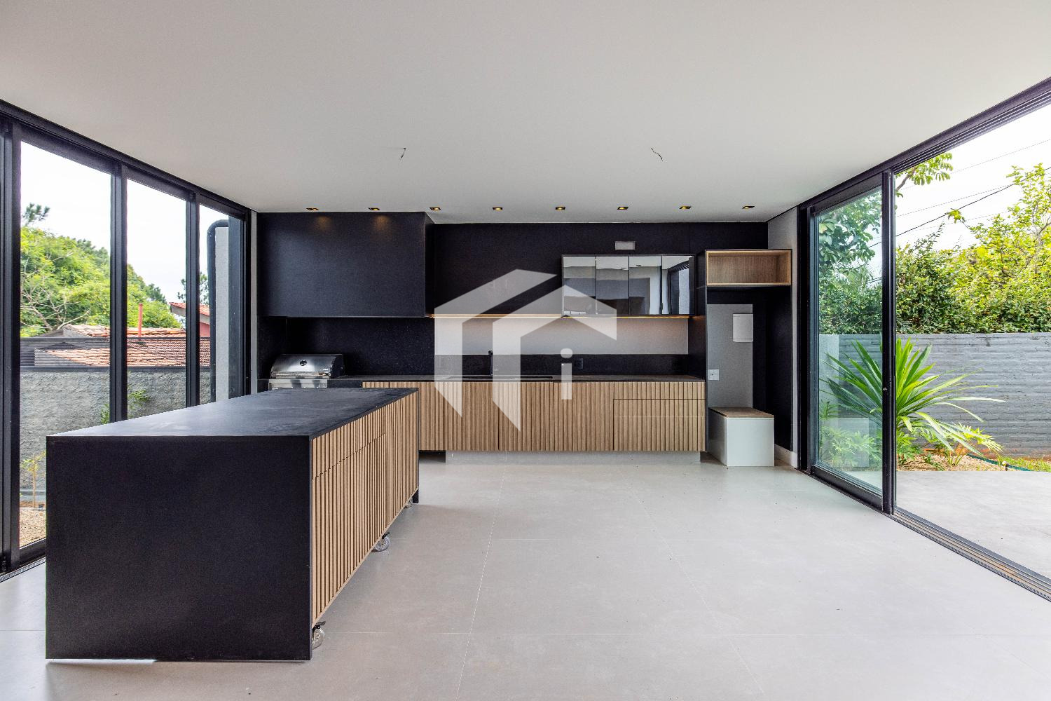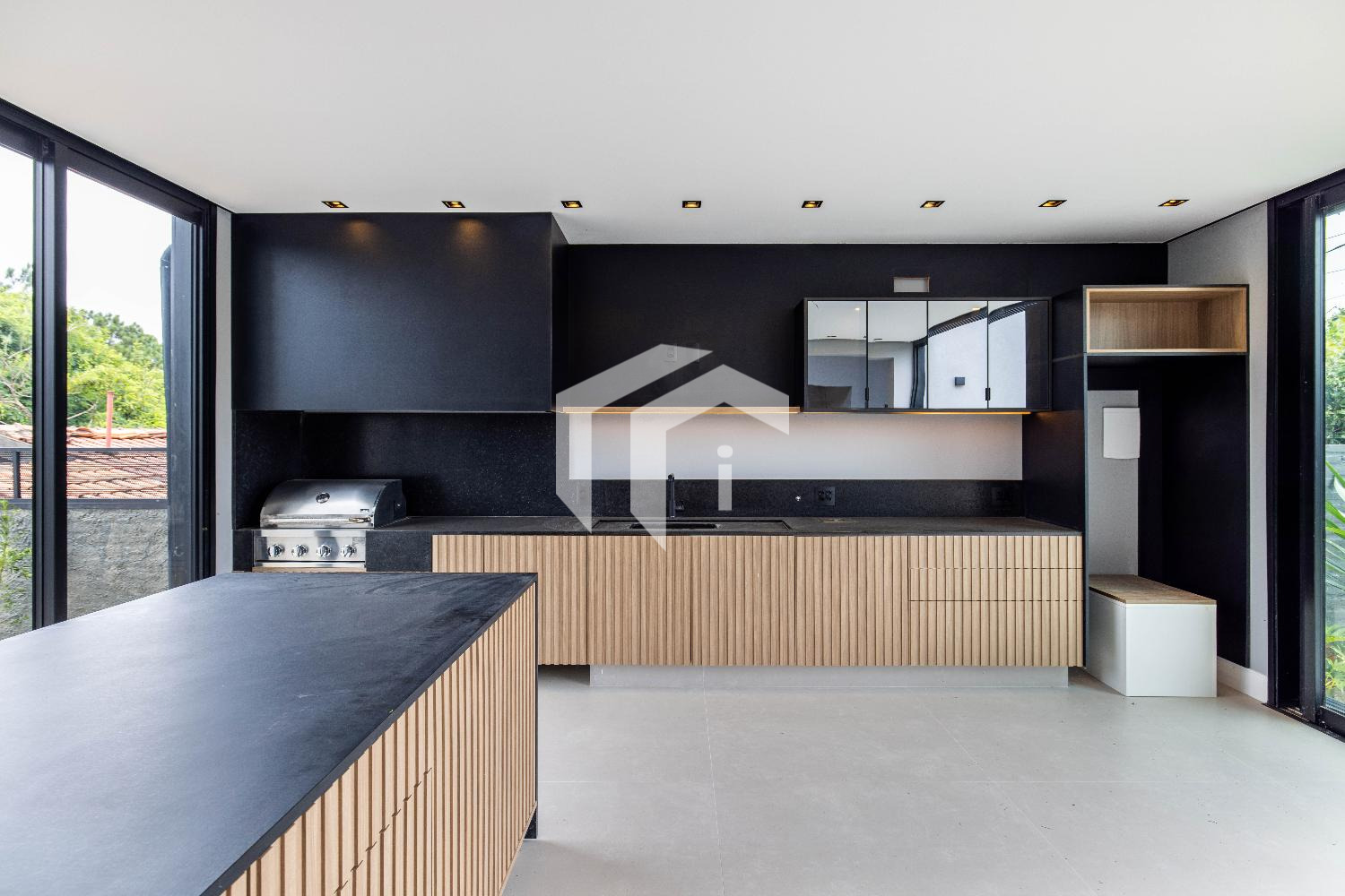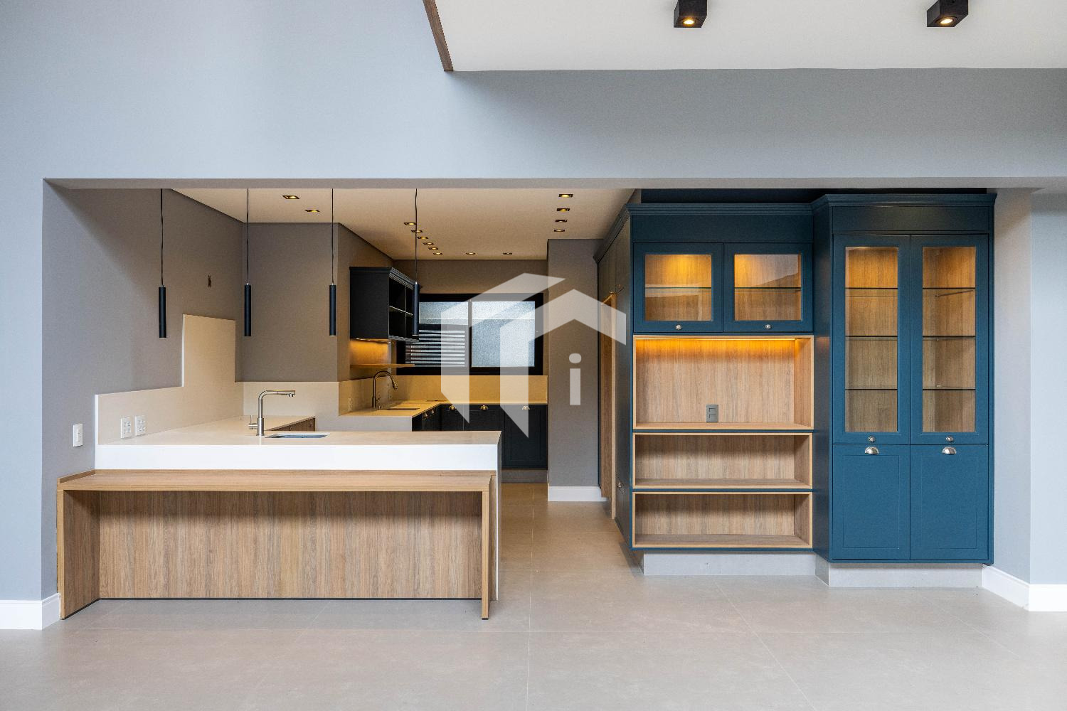Living climatizado para 3 ambientes com pé direito duplo, mais, home office e home theater, e totalmente integrado ao convidativo espaço gourmet do imóvel.