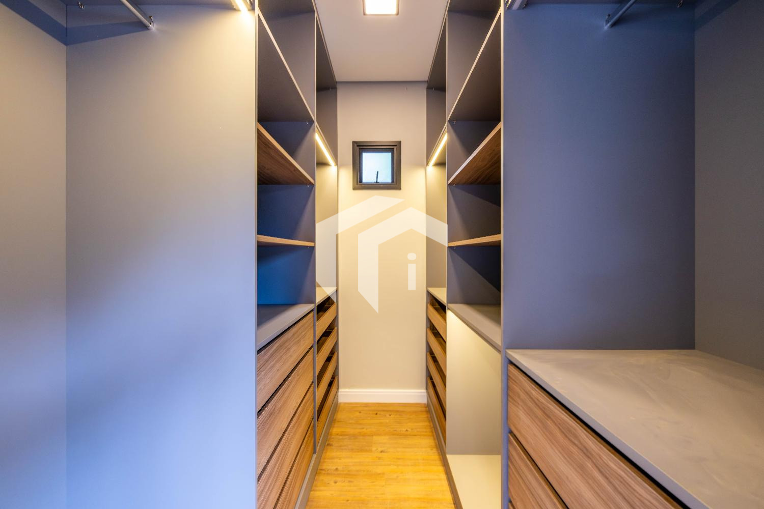 São 4 dormitórios planejados e climatizados sendo 4 suítes (1 no piso térreo).